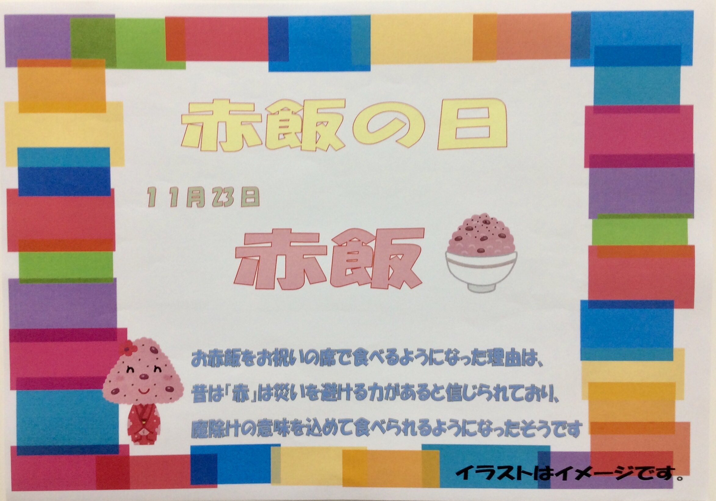 23日の昼食は『お赤飯』です。