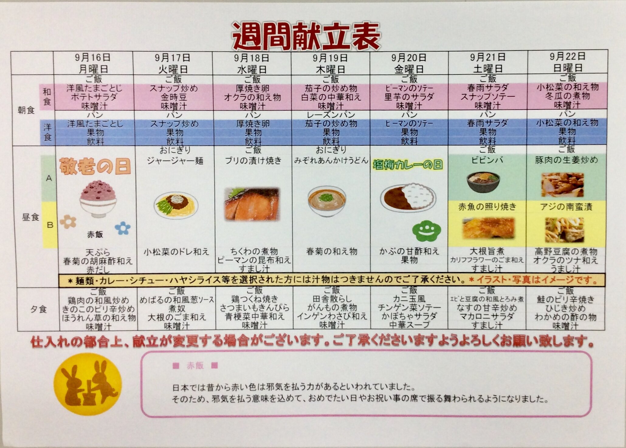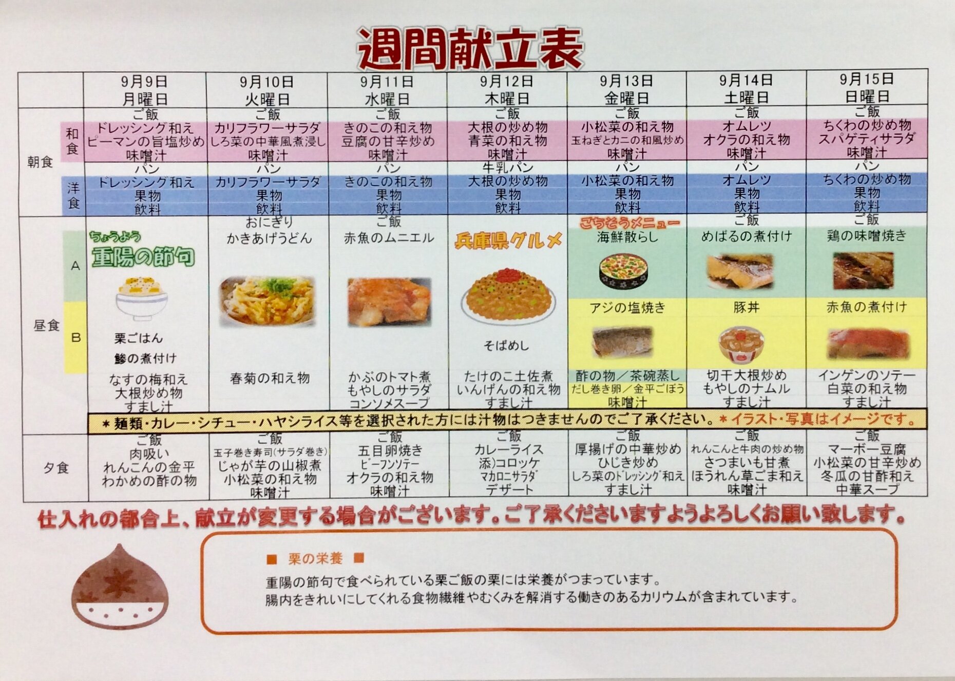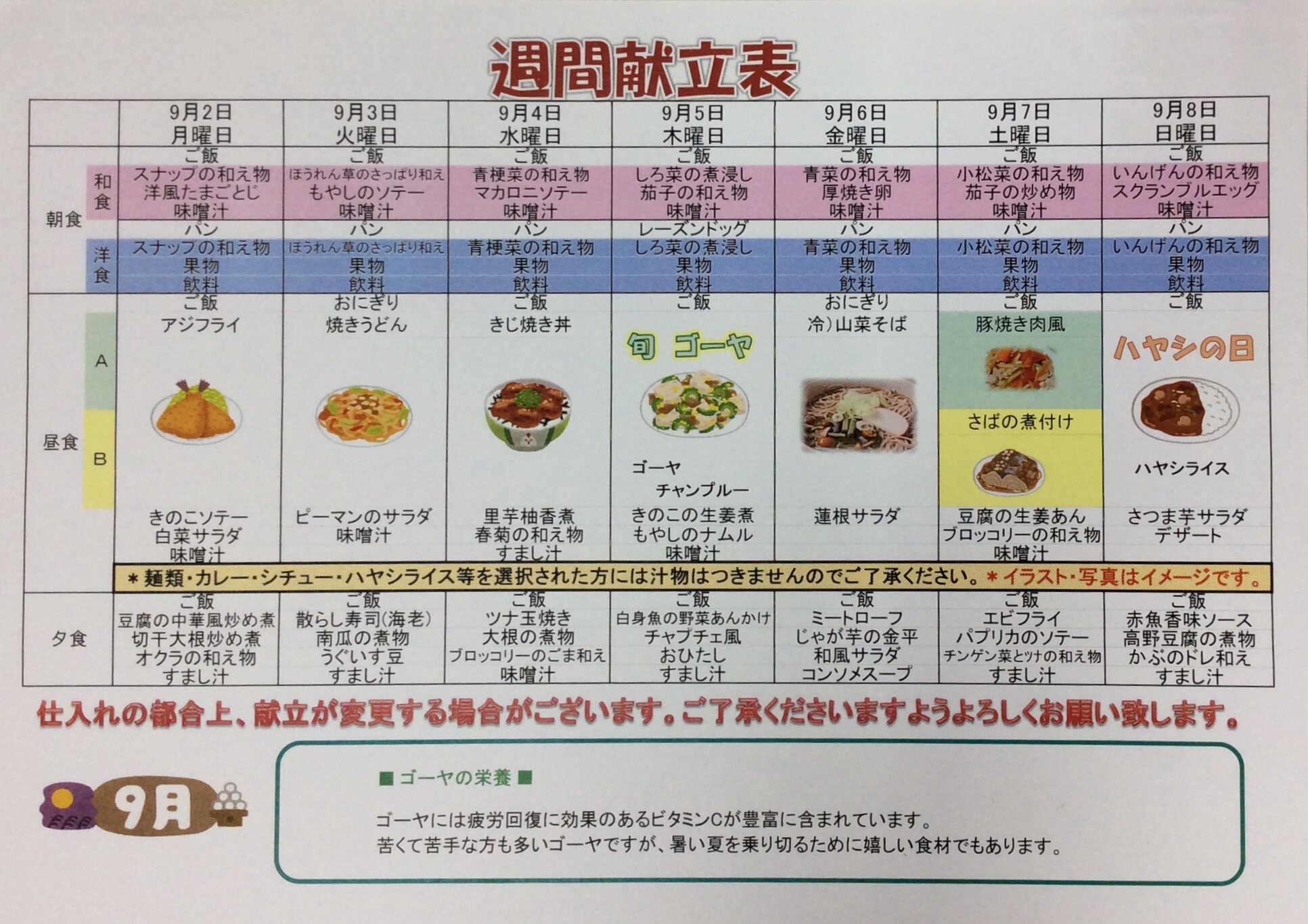 今回は、9/2~9/8の献立表をご紹介いたします。