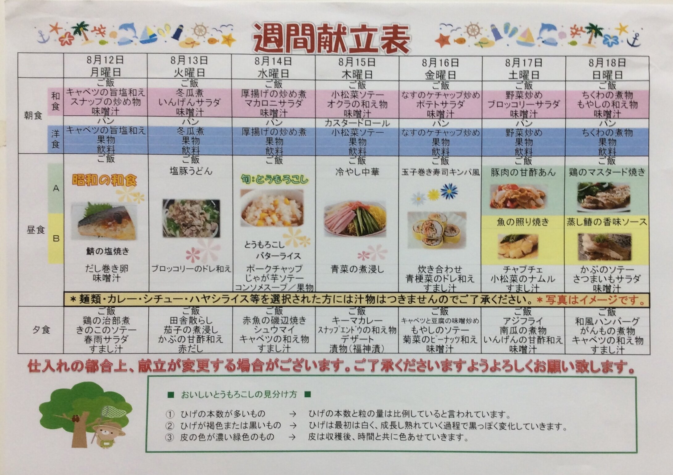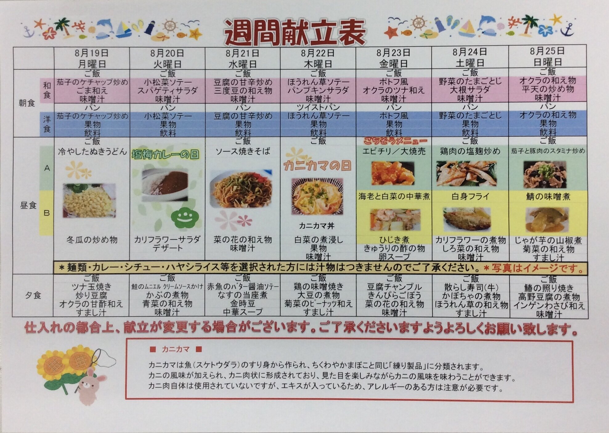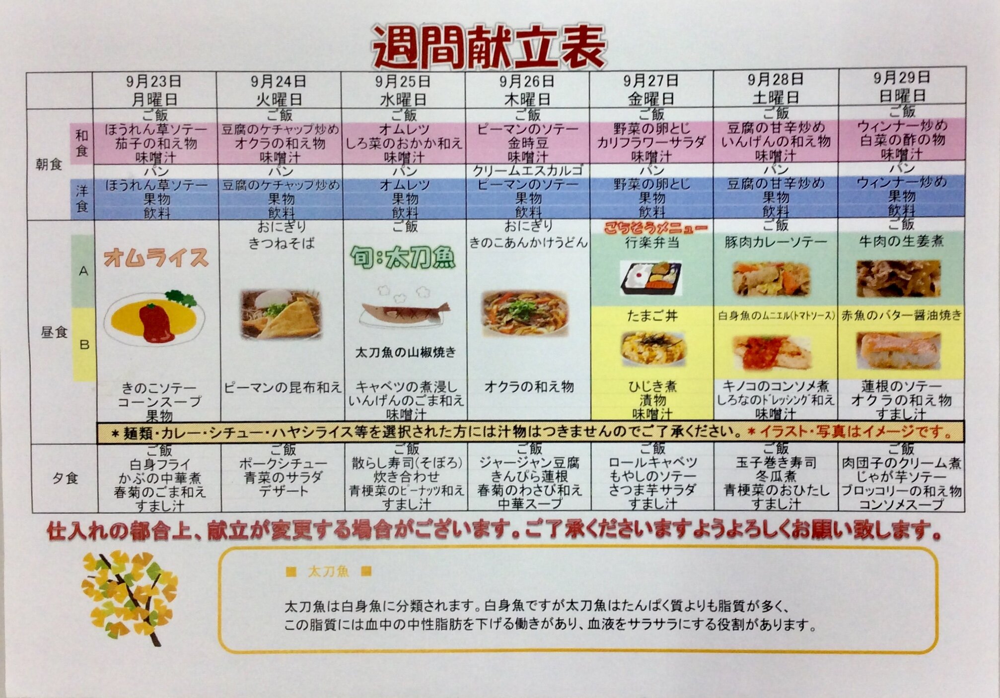 今回は、9/2~9/8の献立表をご紹介いたします。