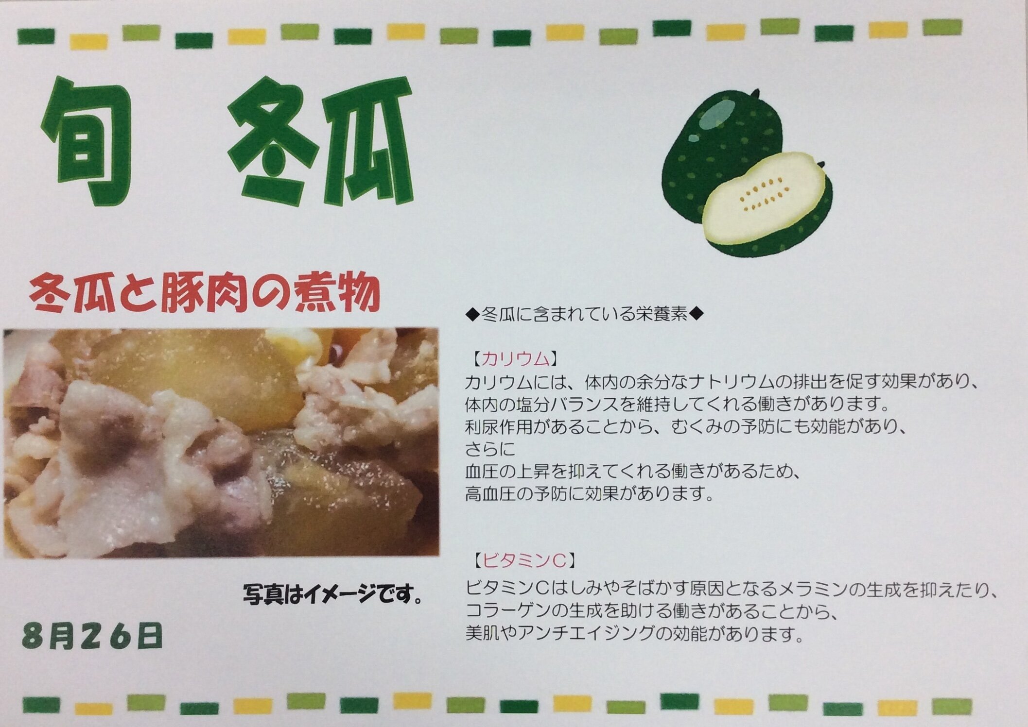 26日の昼食は『冬瓜と豚肉の煮物』です。