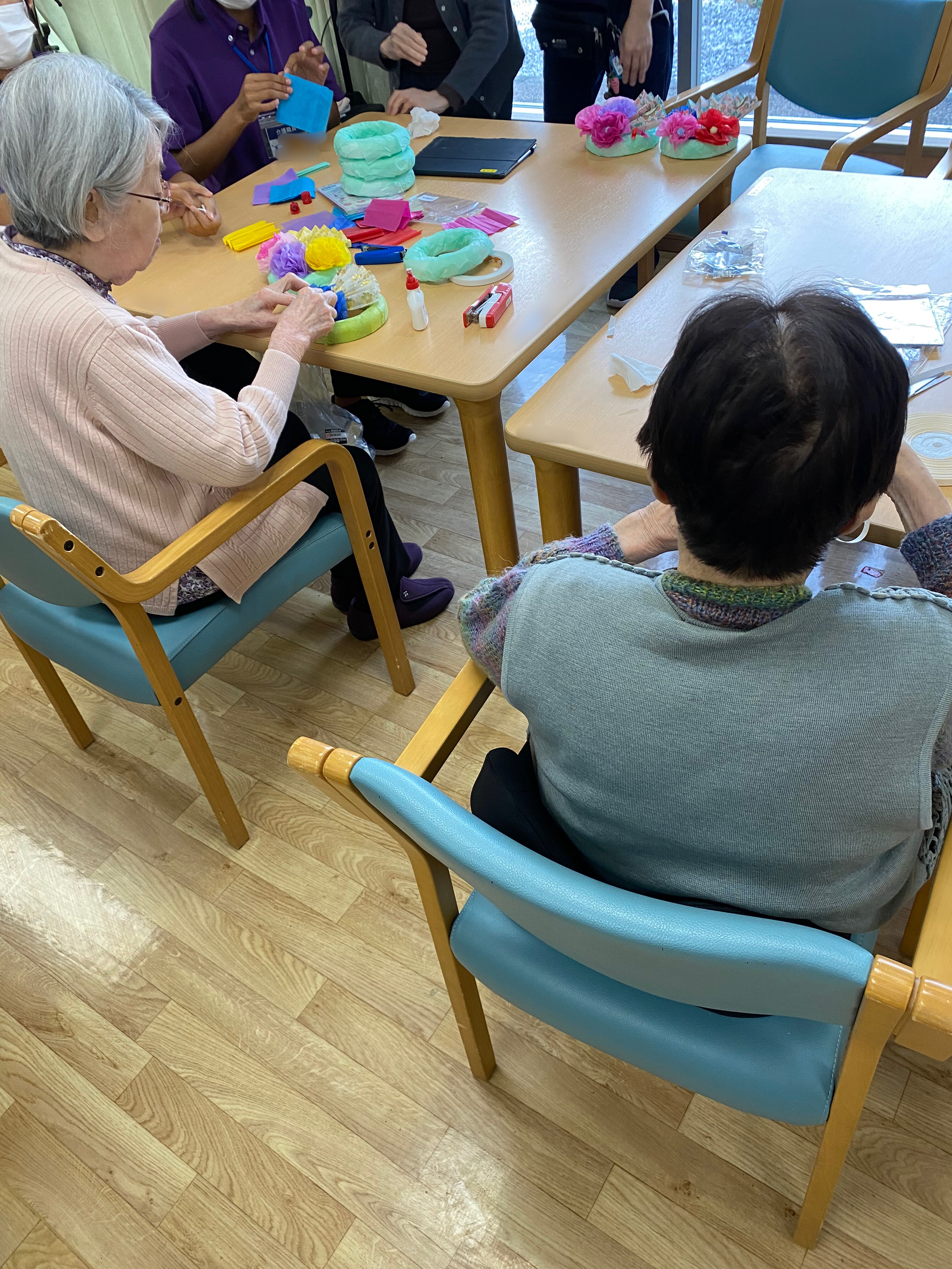 皆さん、「何色にしようかしら」、「これ付けたら綺麗やわ」と、とても楽しそうに作って下さいました!!