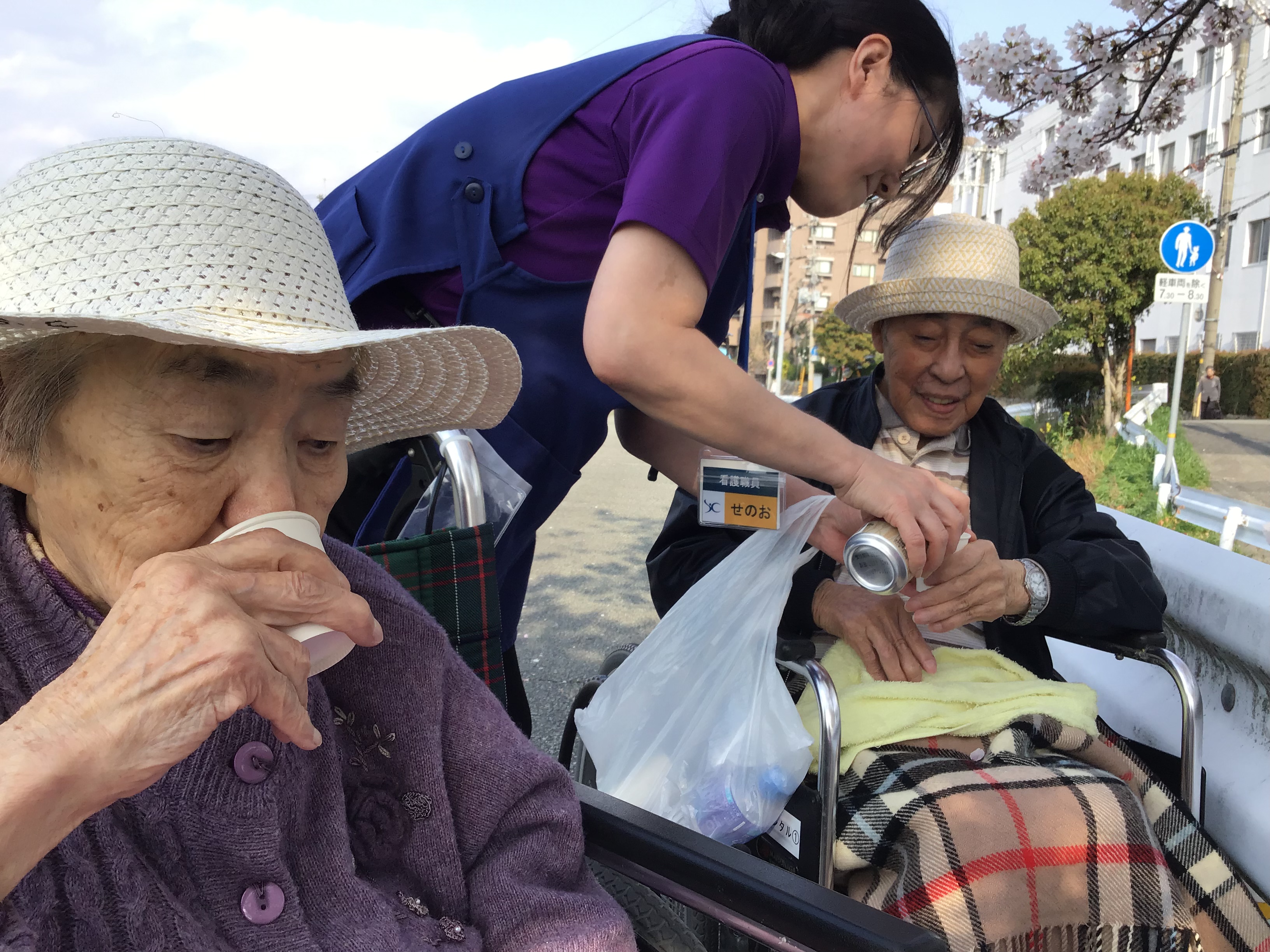 南花屋敷では4月上旬に近所にスタッフと入居様と一緒に恒例の花見を行いました。
