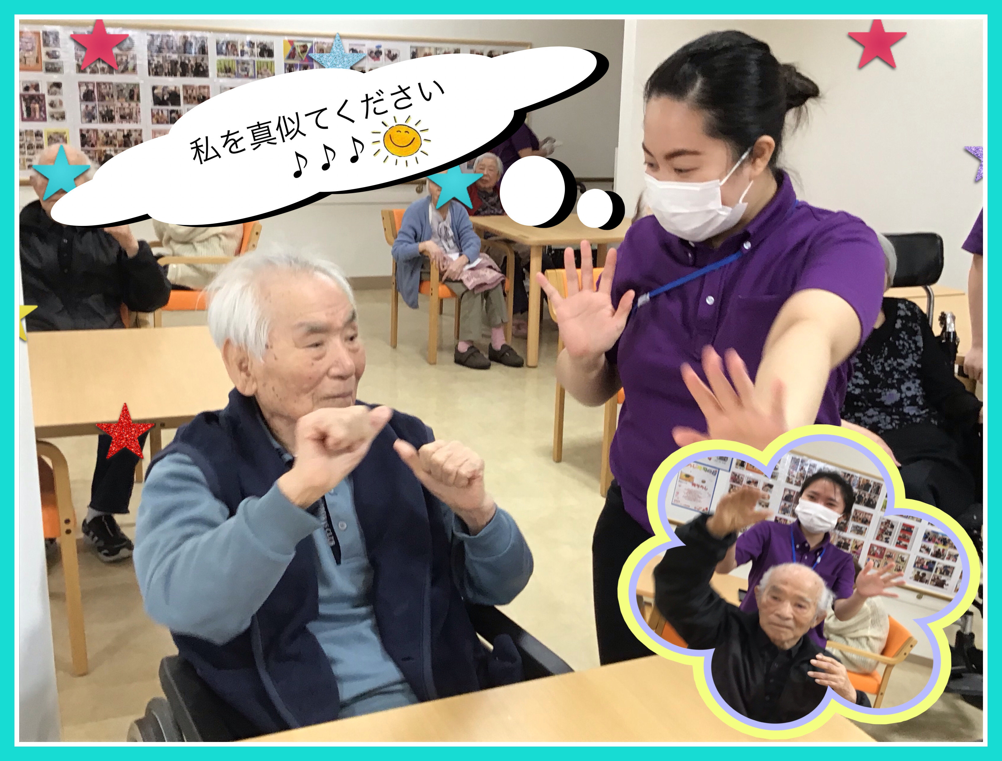 施設長もヘルパーもNSも事務員もみんなで体操タイムです!