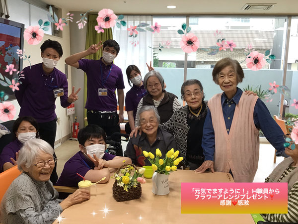 クリーン職員からはハンドソープやプリザーブド資格を活かして施設が明るくなればとお花のアレンジをプレゼントしてくれました!