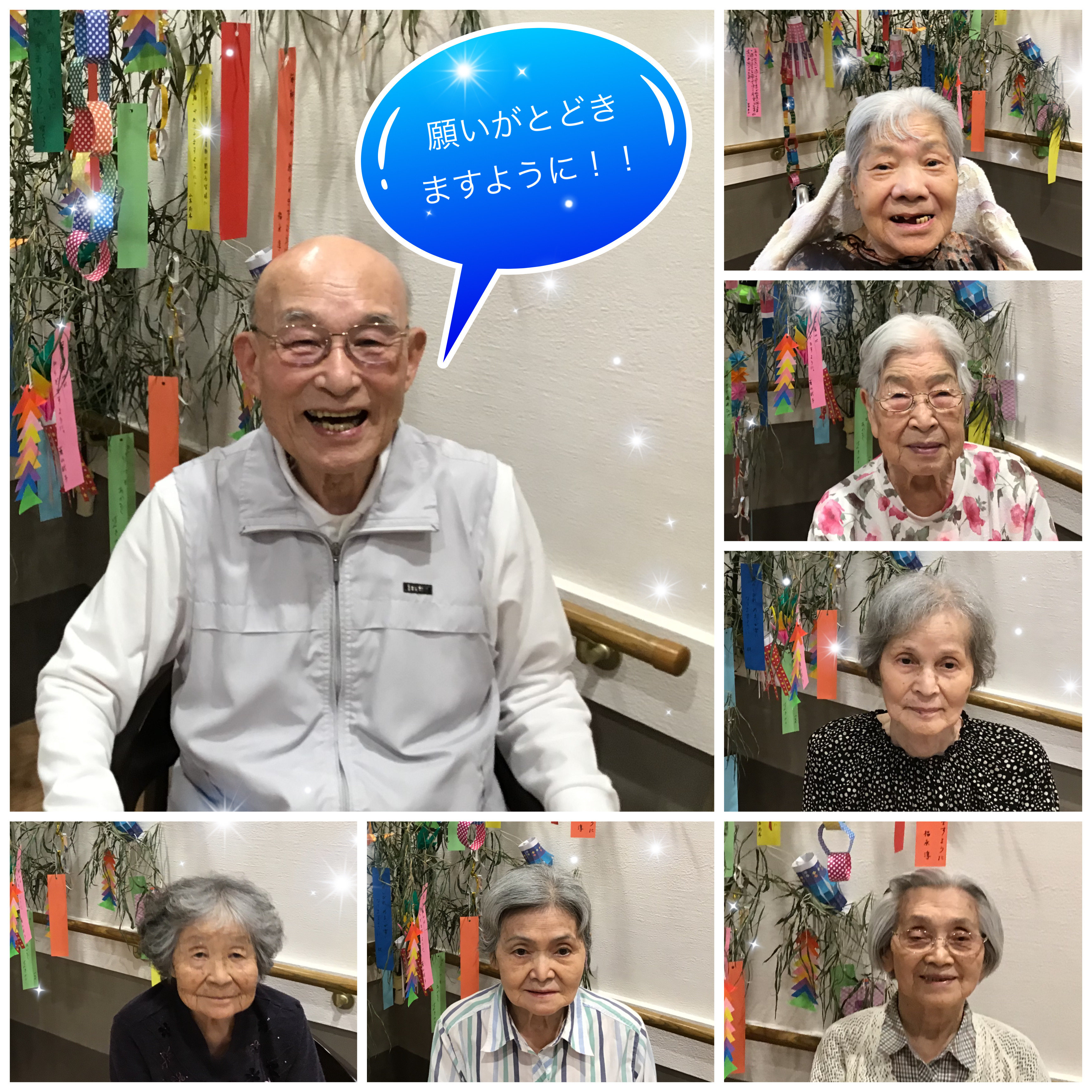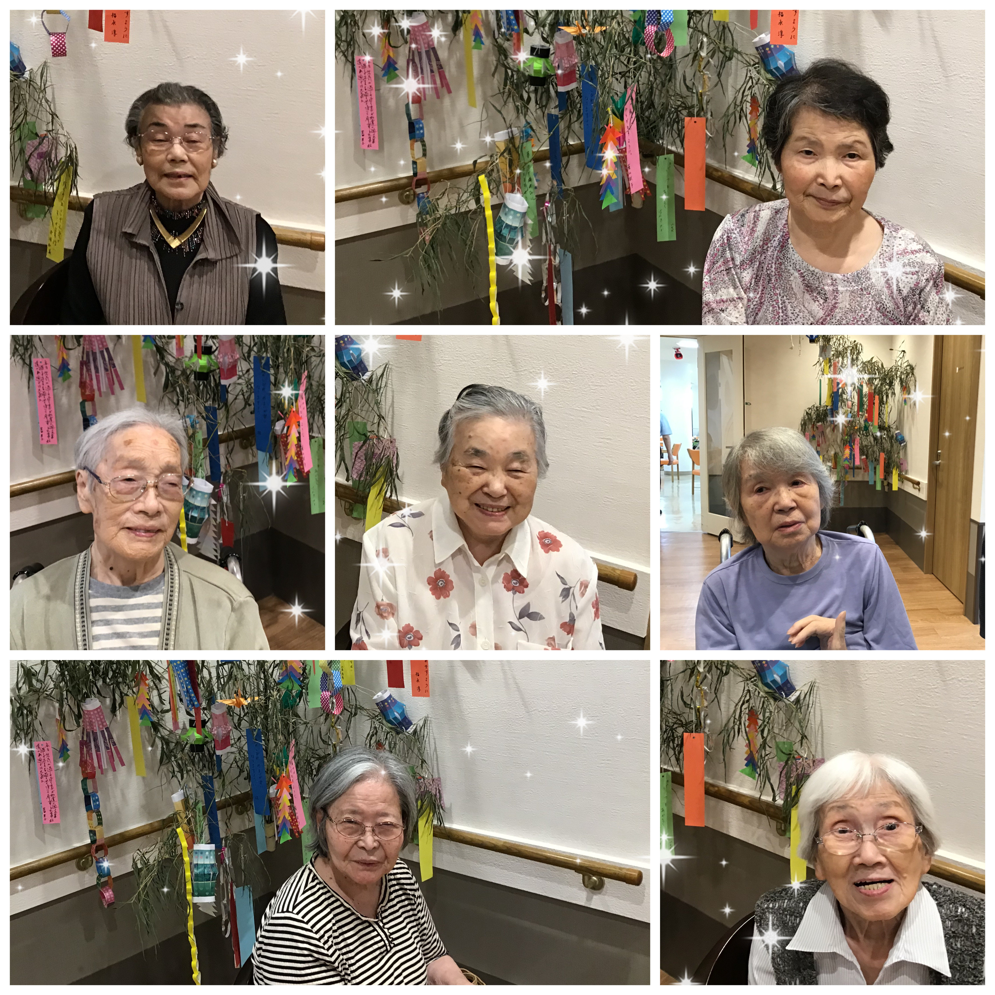 7月7日七夕さまへの願い事を童心にかえり入居者様、職員ともども