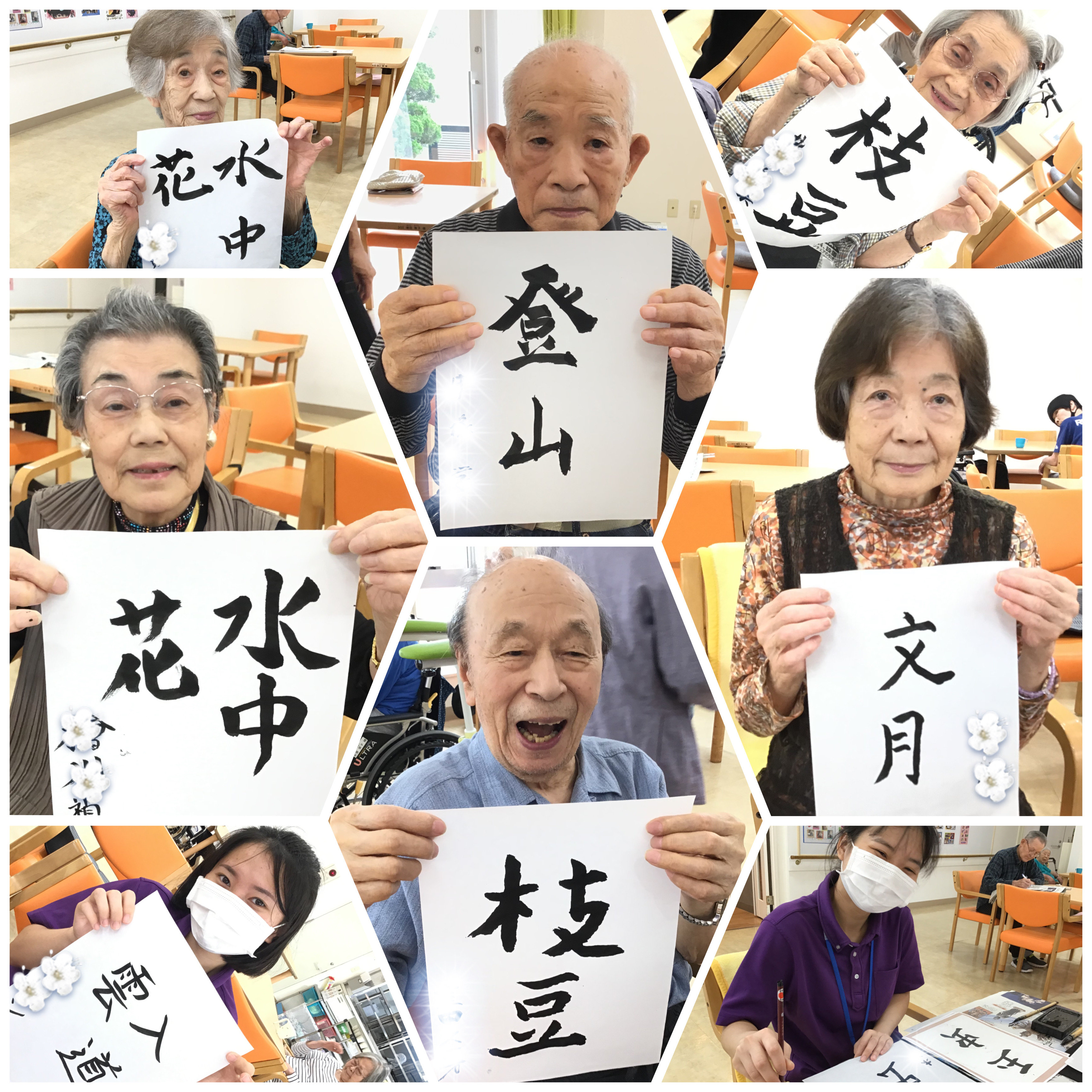 和の心!筆書きはやはりいいですね~グローバルの方も漢字がスラスラです!凄い勢いで日本語もマスターされ入居者様と会話上手になってきました。