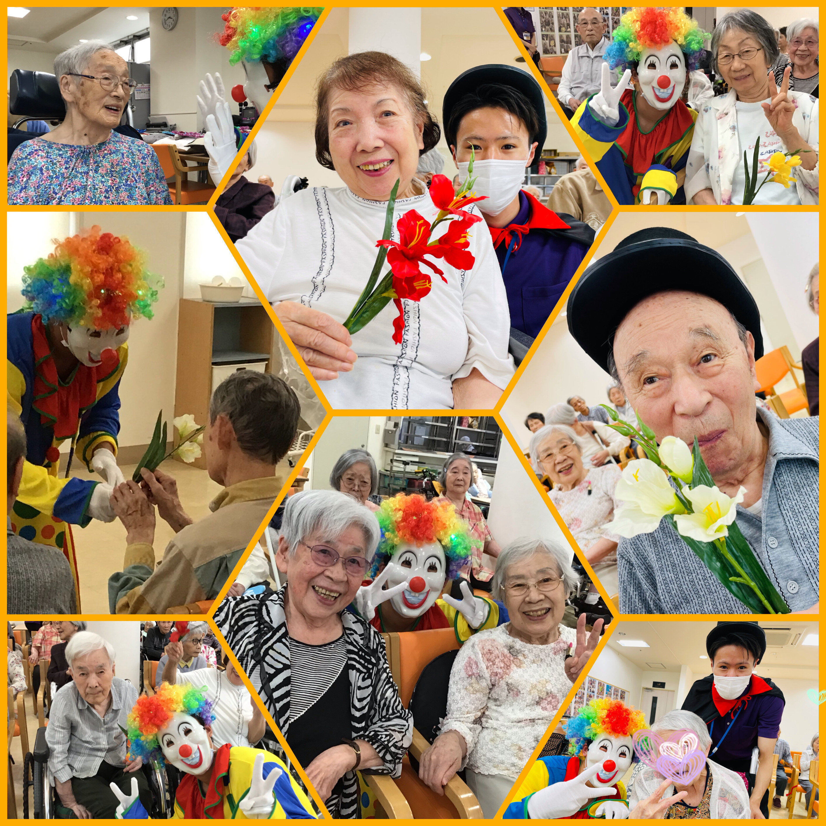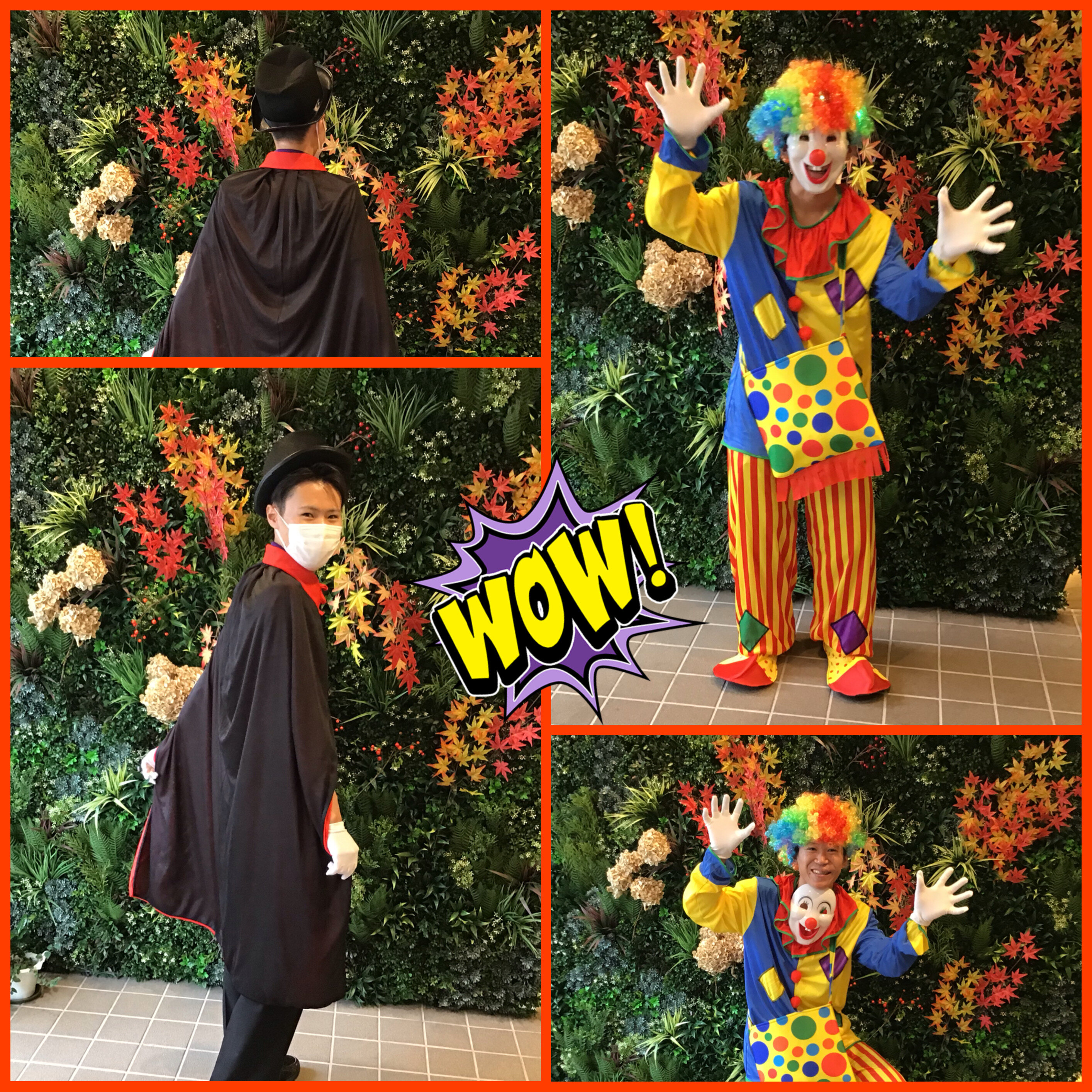 大人気!施設長ピエロさん、マント姿に帽子の美男子リーダー!