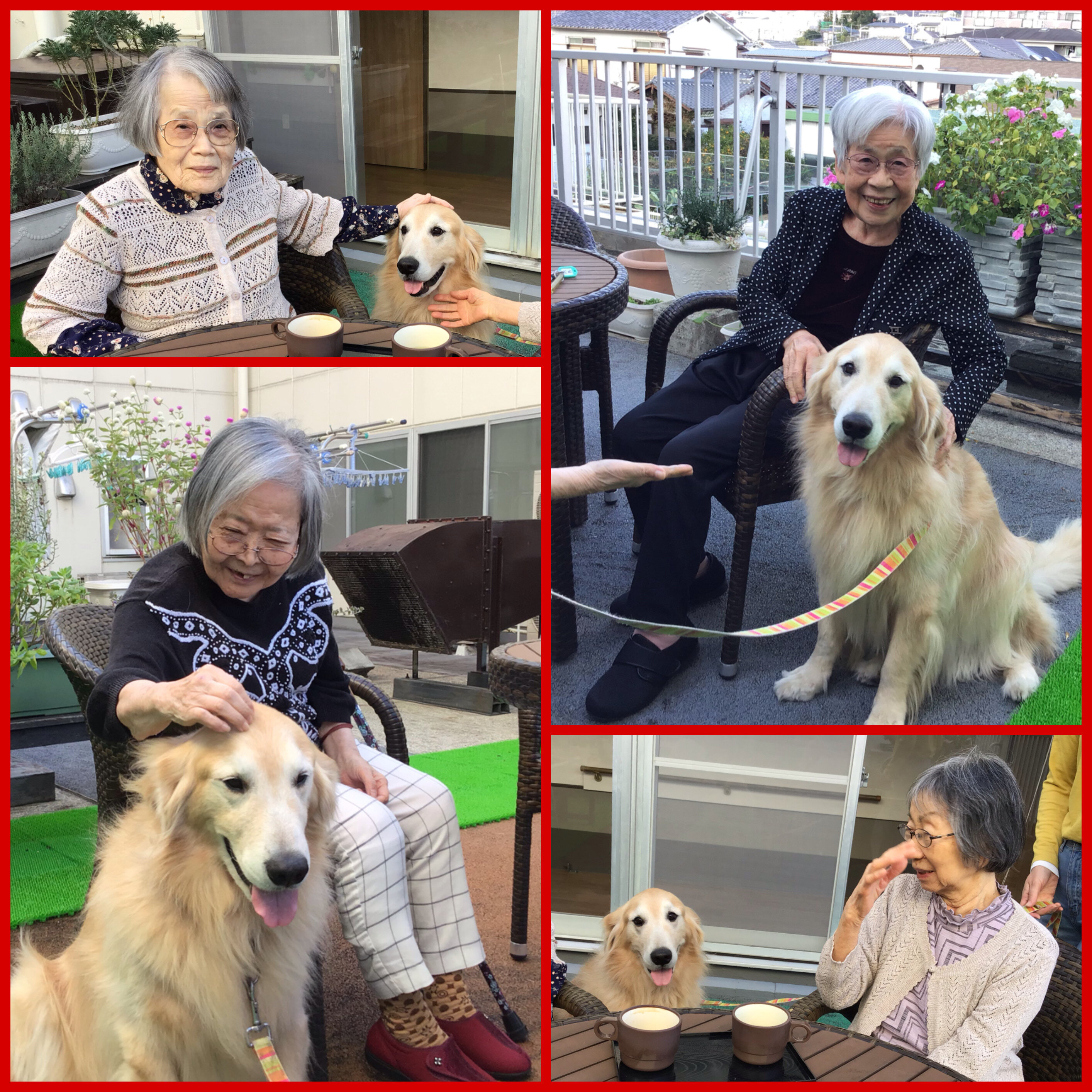口輪を付けてご入居者の方と触れ合ってくれました。