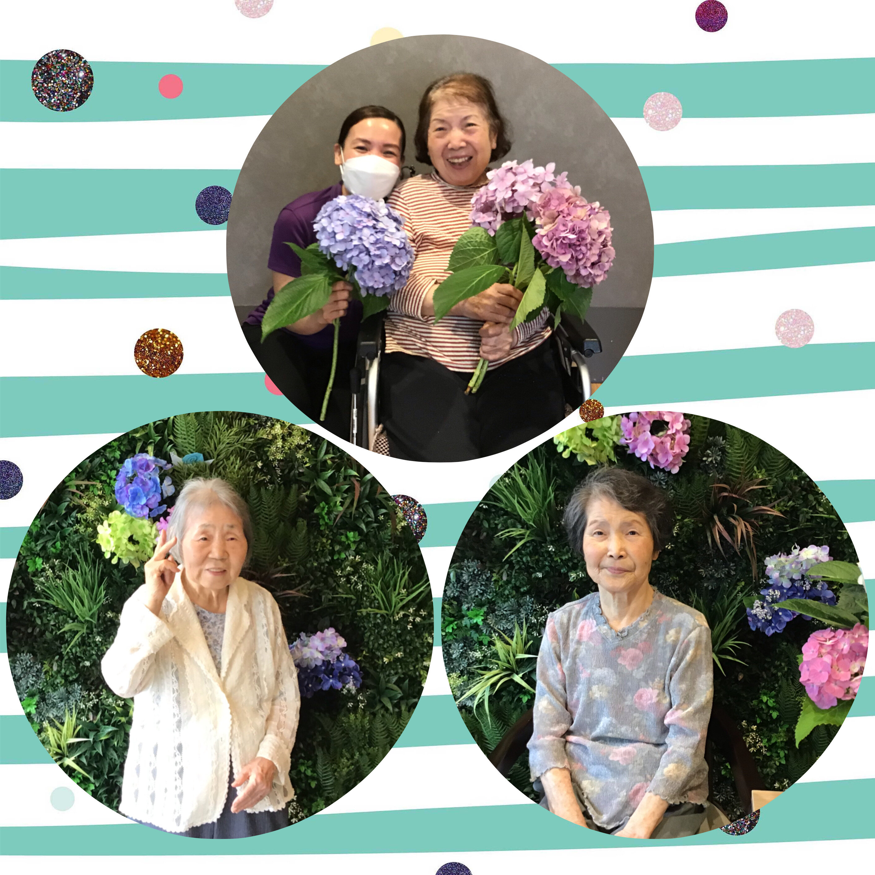 施設外周には大輪のアジサイが咲きました~!