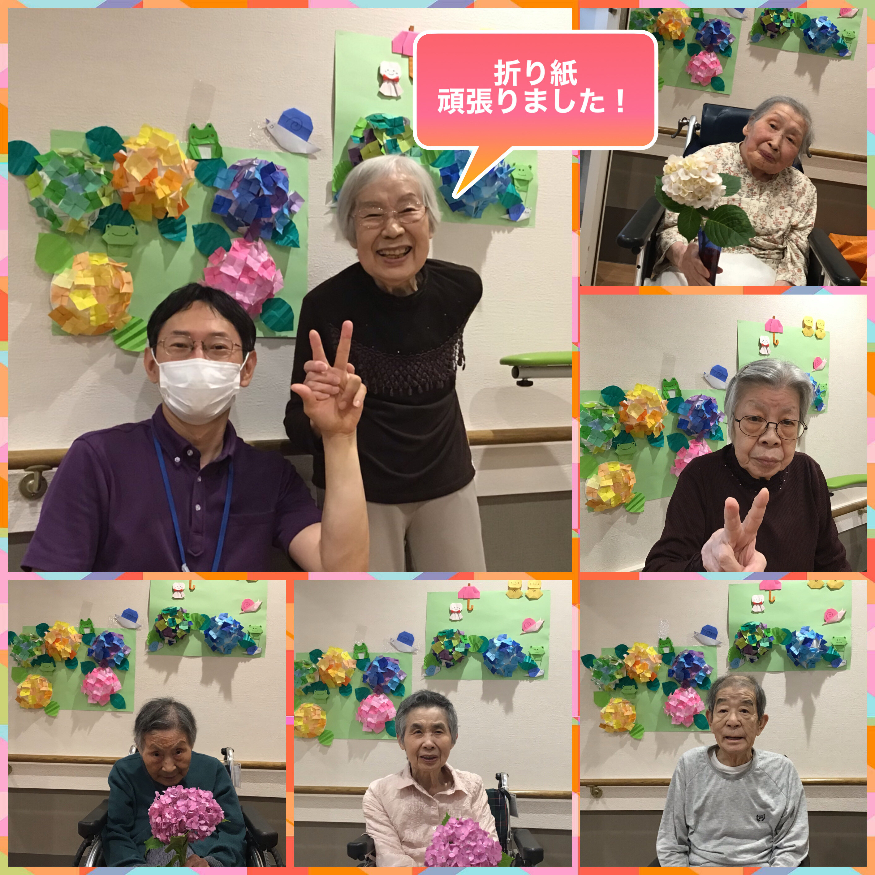 6月と言えばアジサイですね!折り紙で何日もかけてがんばって作りました~!