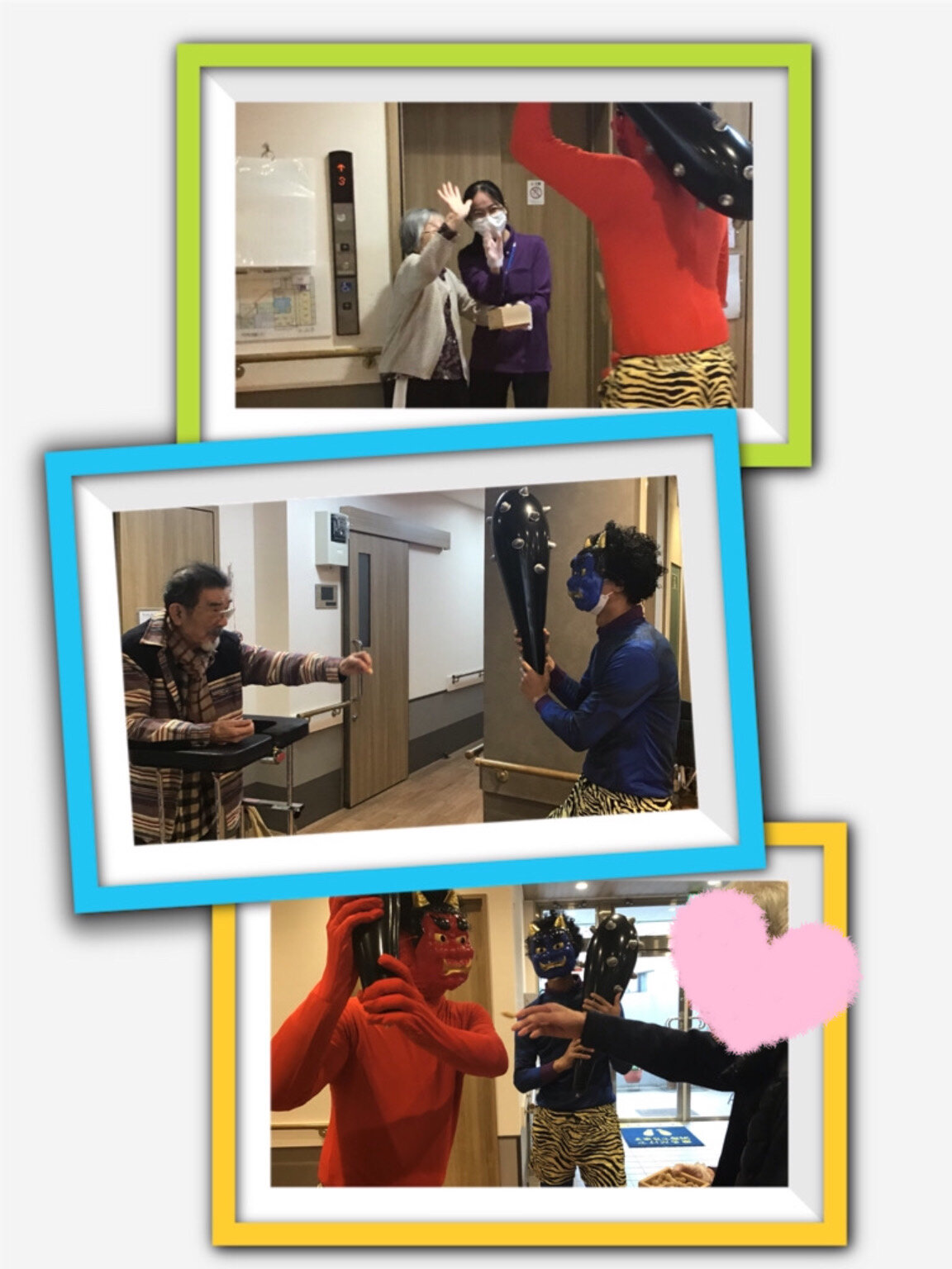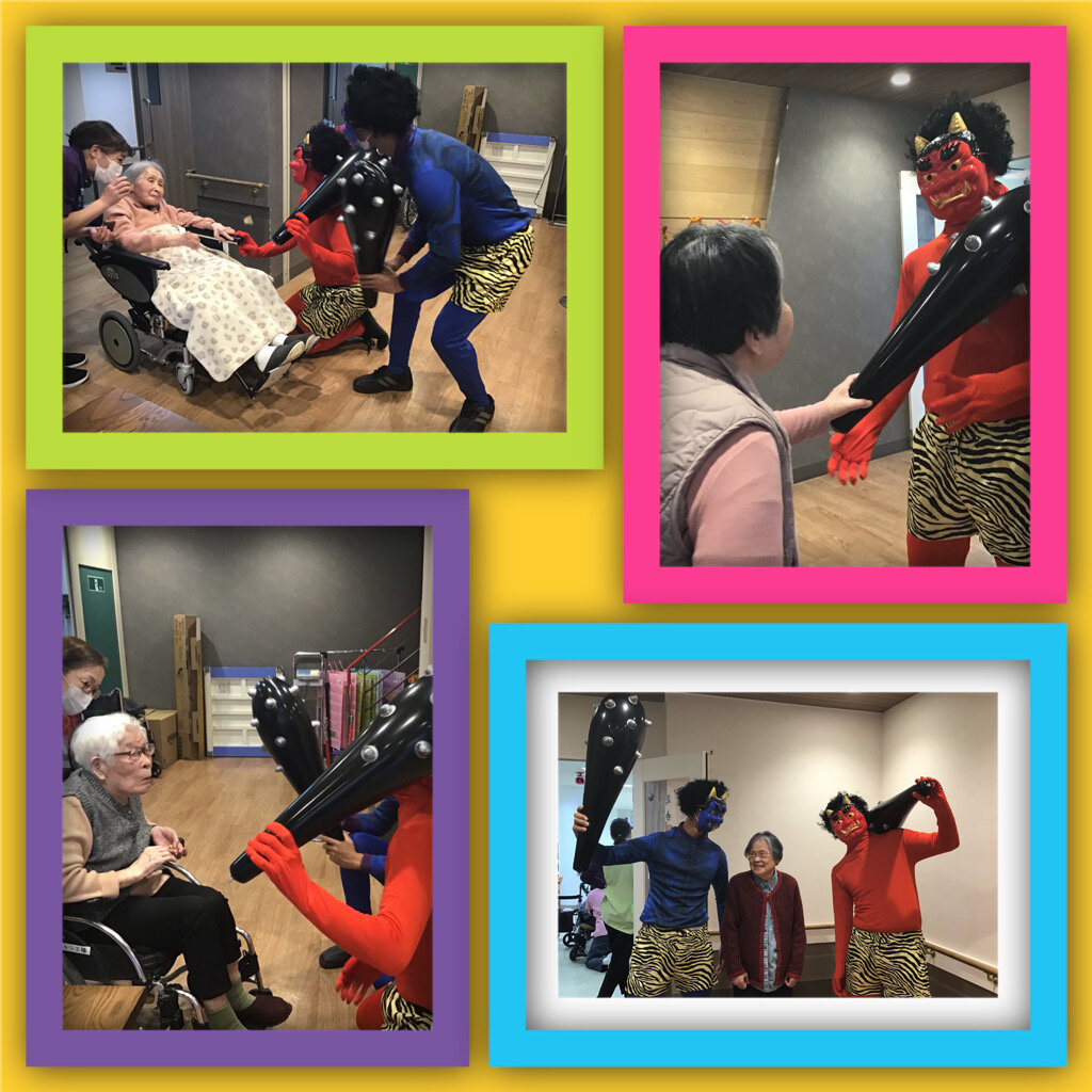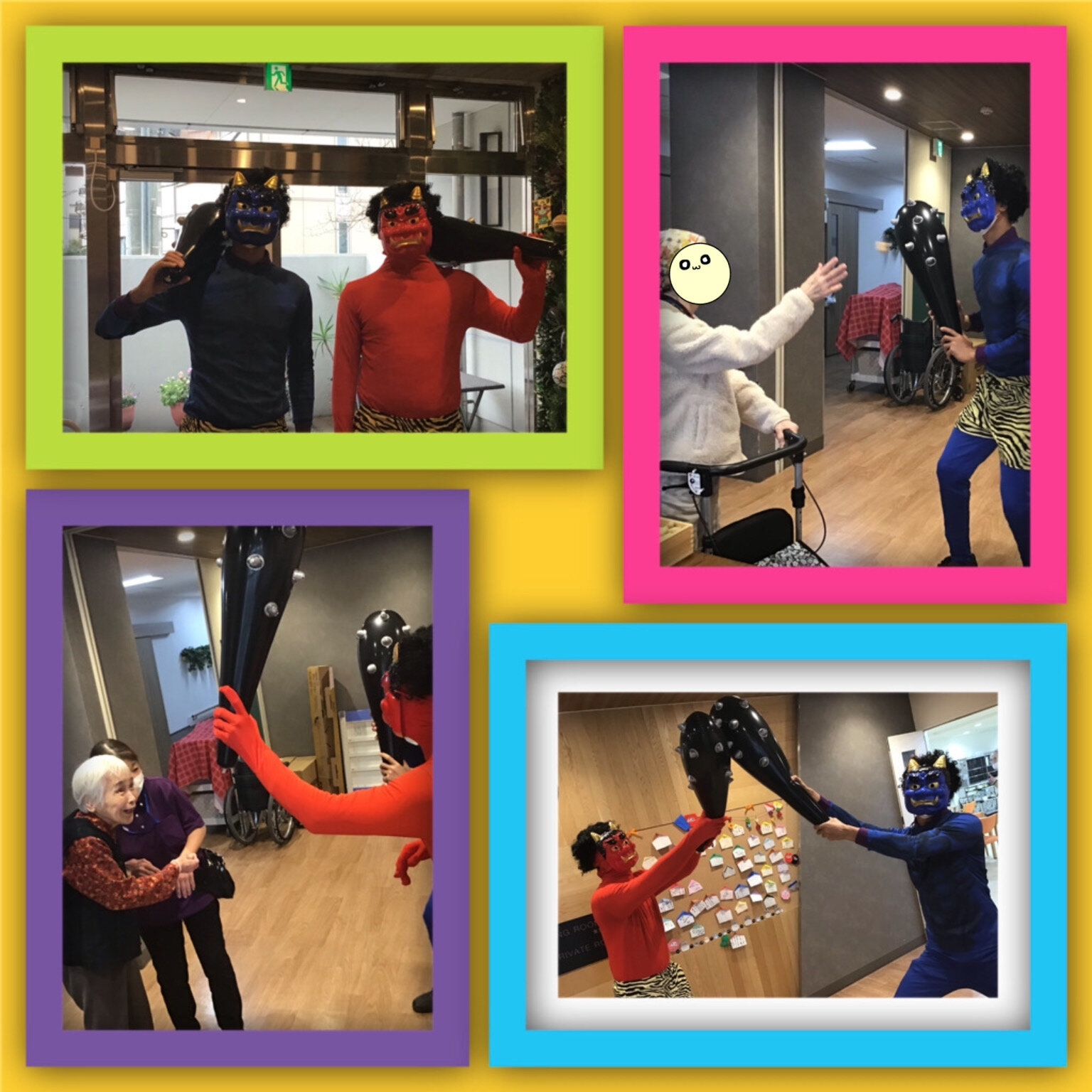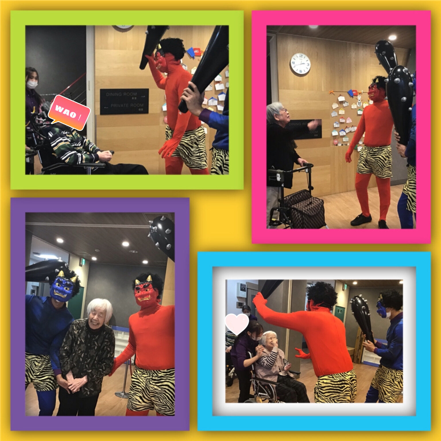 今年の節分も、(職員のSさんとTさん扮する)赤鬼さんと青鬼さんがやってきました...!