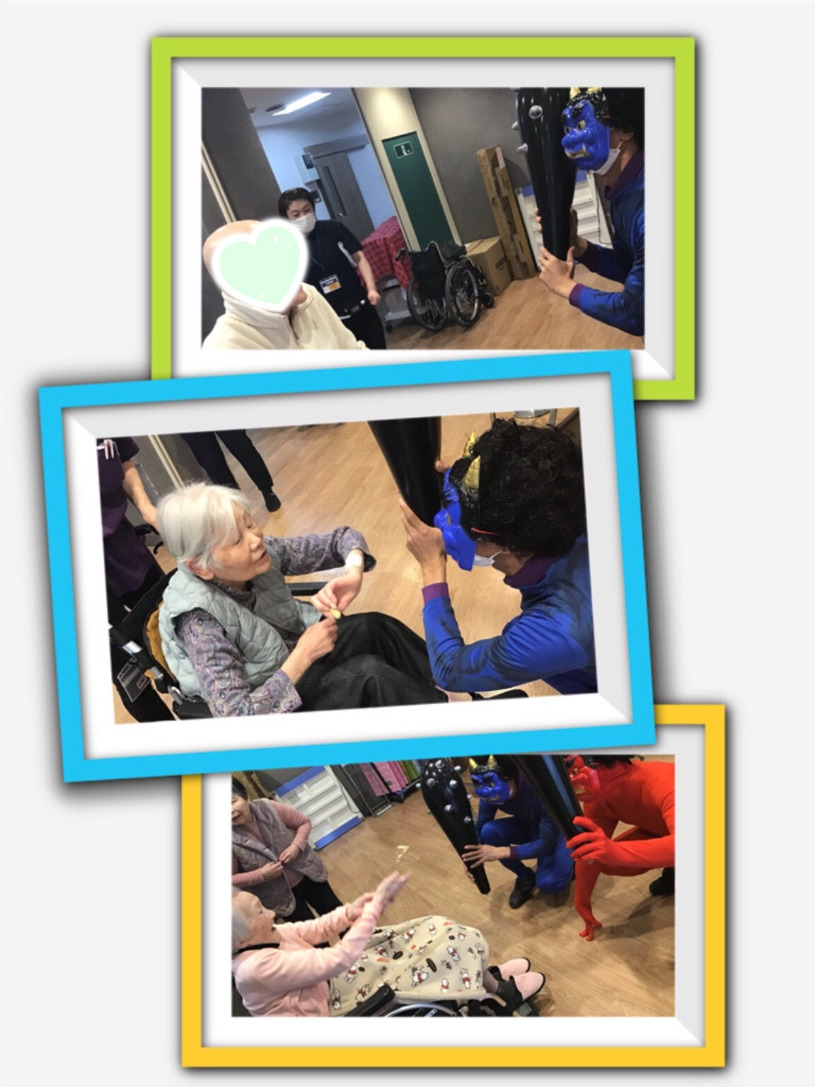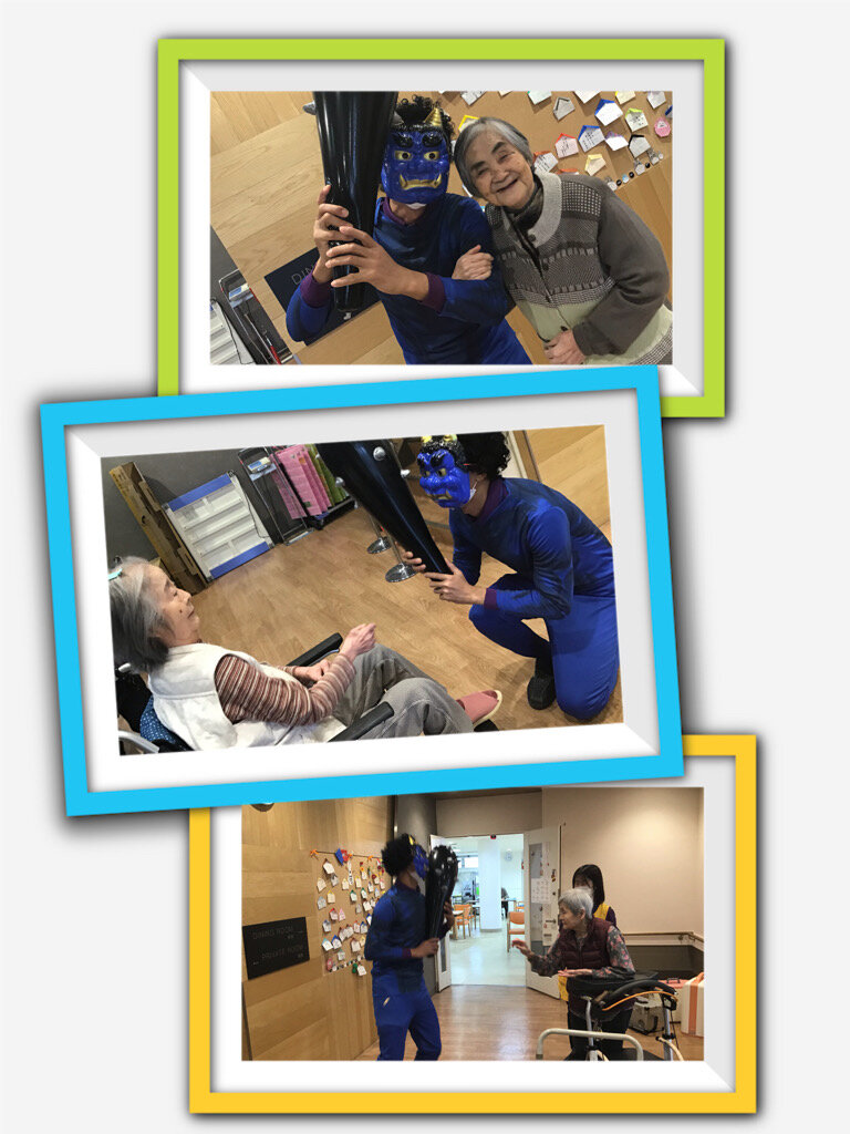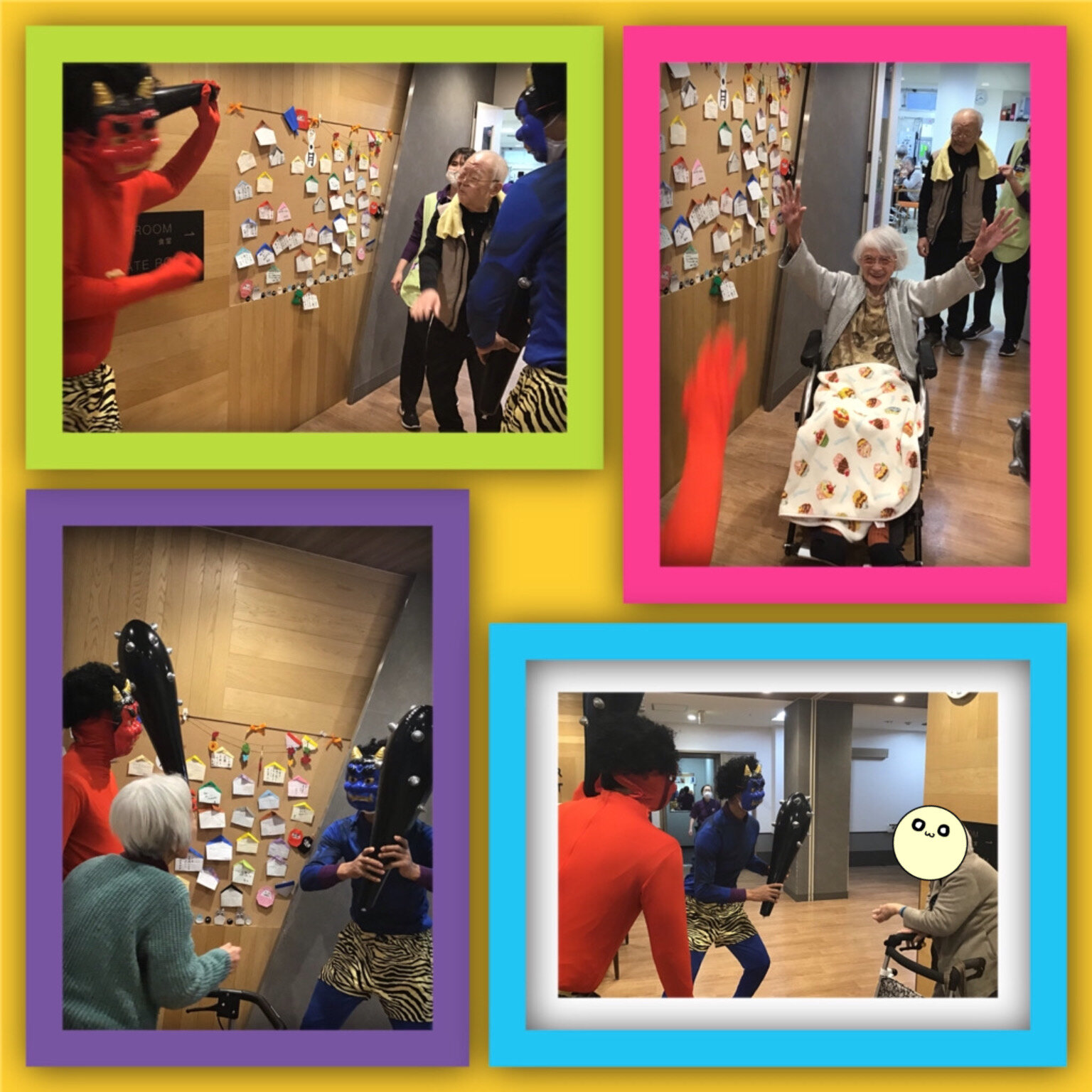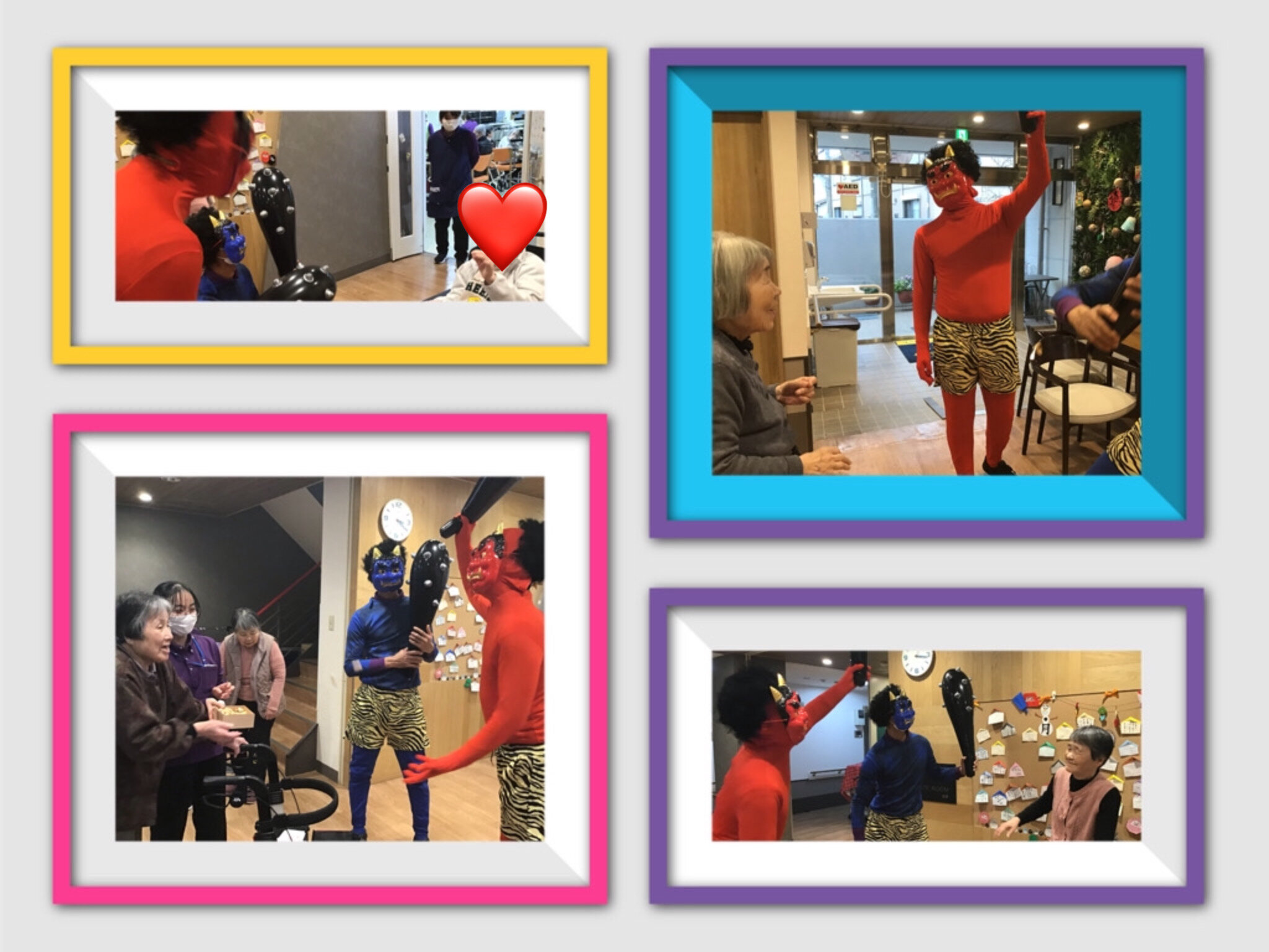 今年の節分も、(職員のSさんとTさん扮する)赤鬼さんと青鬼さんがやってきました...!