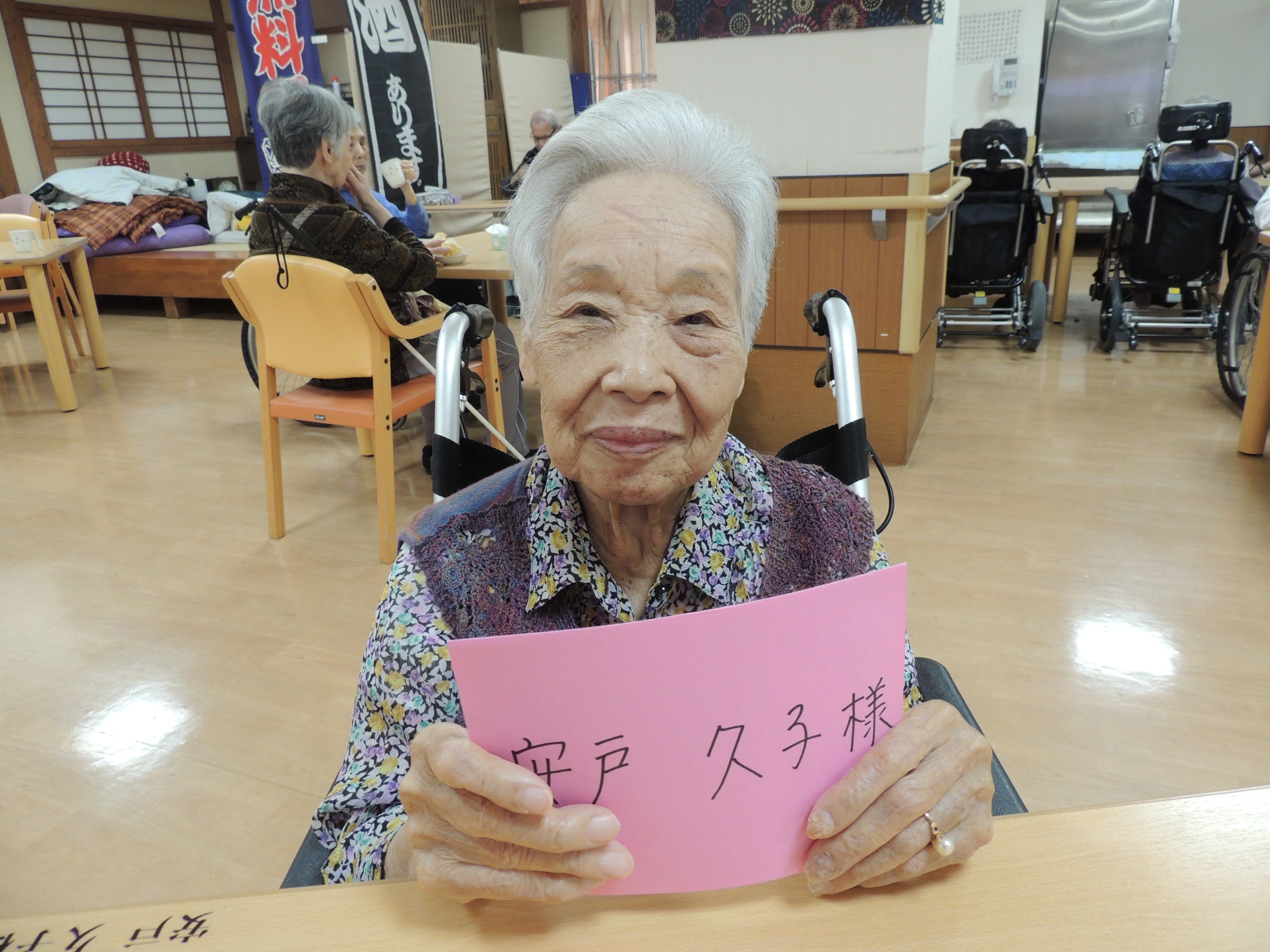 午後の出し物パート2では、スタッフによる、二人羽織、民謡をしました。