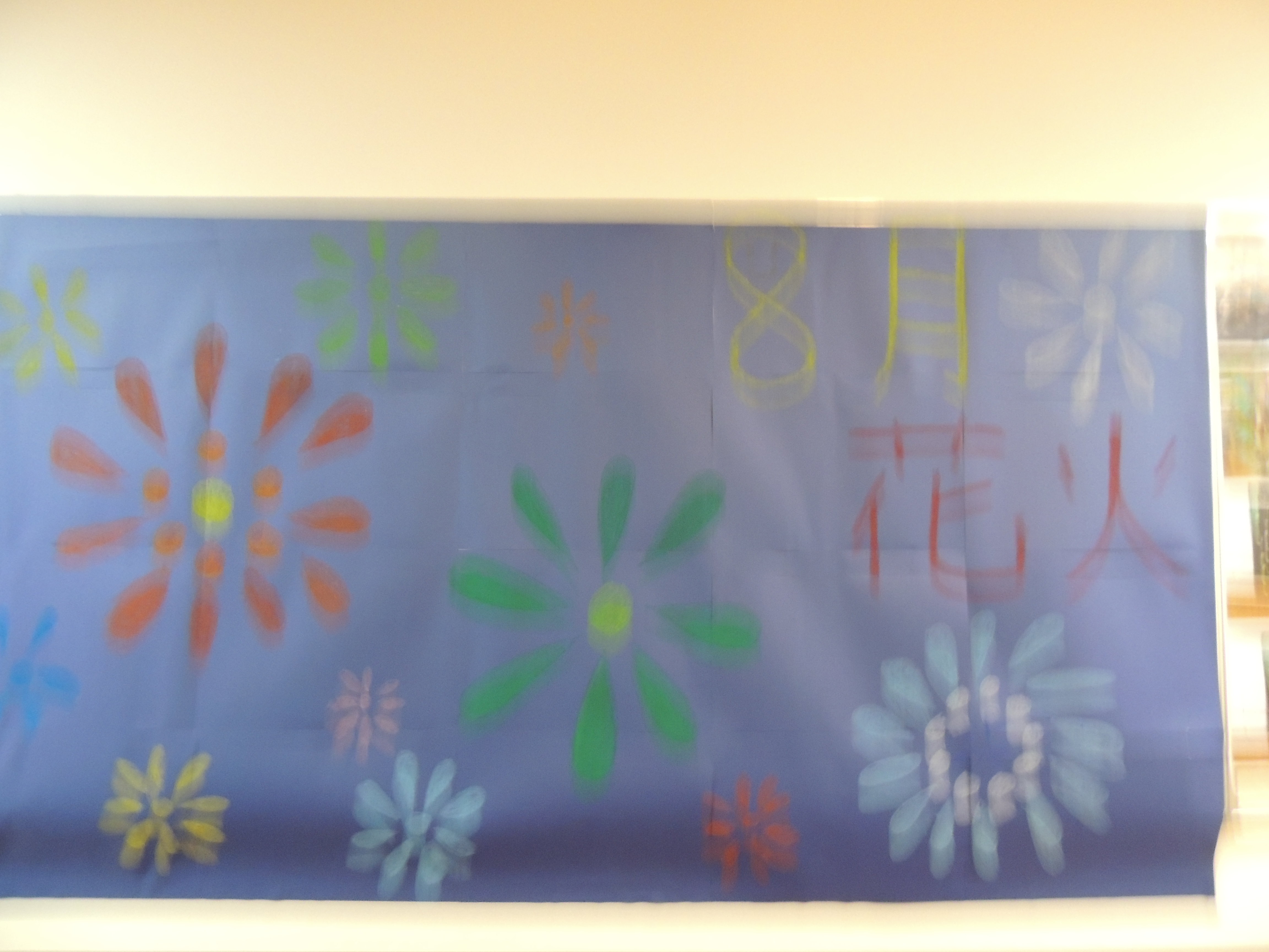 さて、東大阪みとではレクの時間に壁画作成を実施しています。