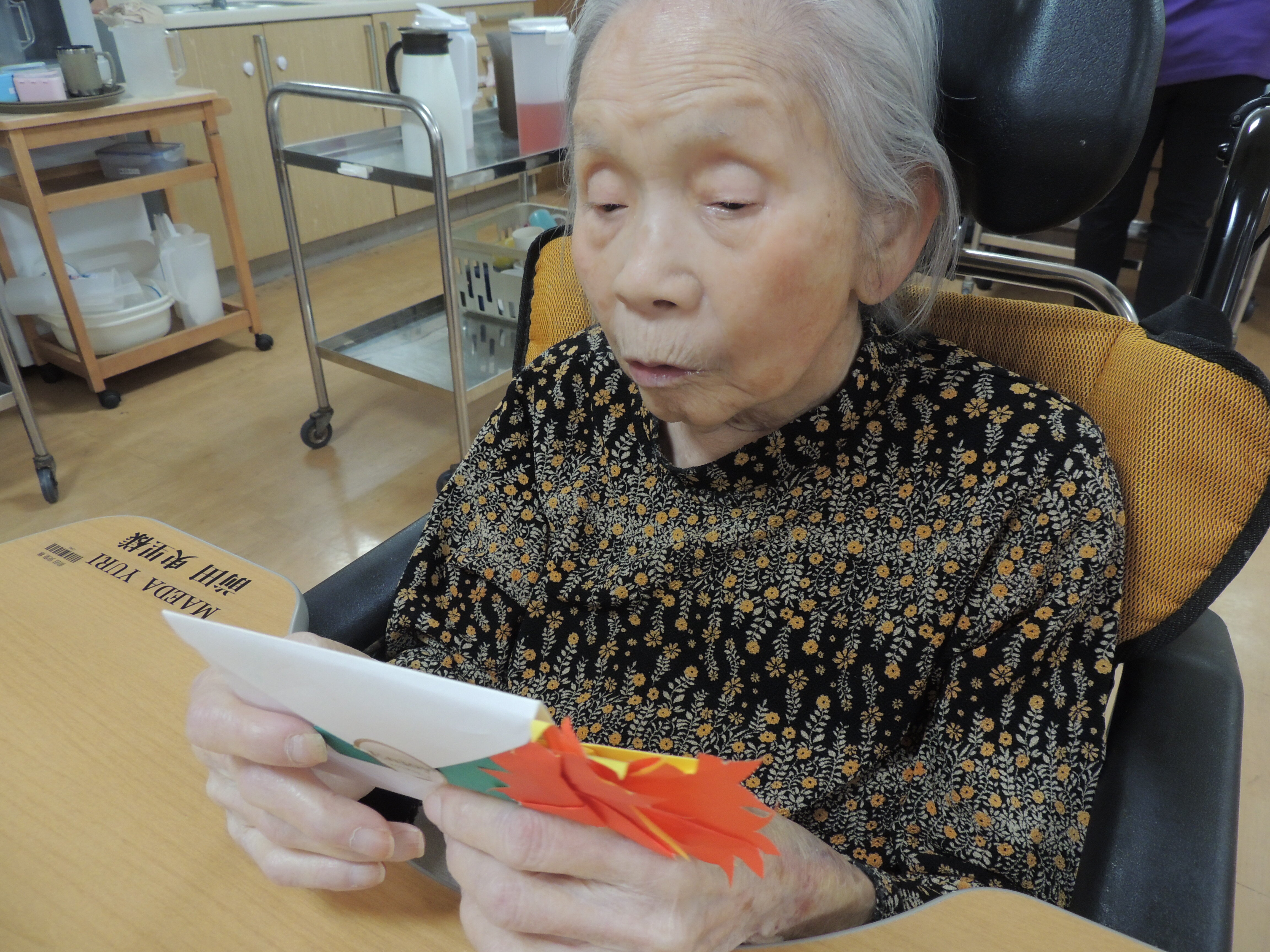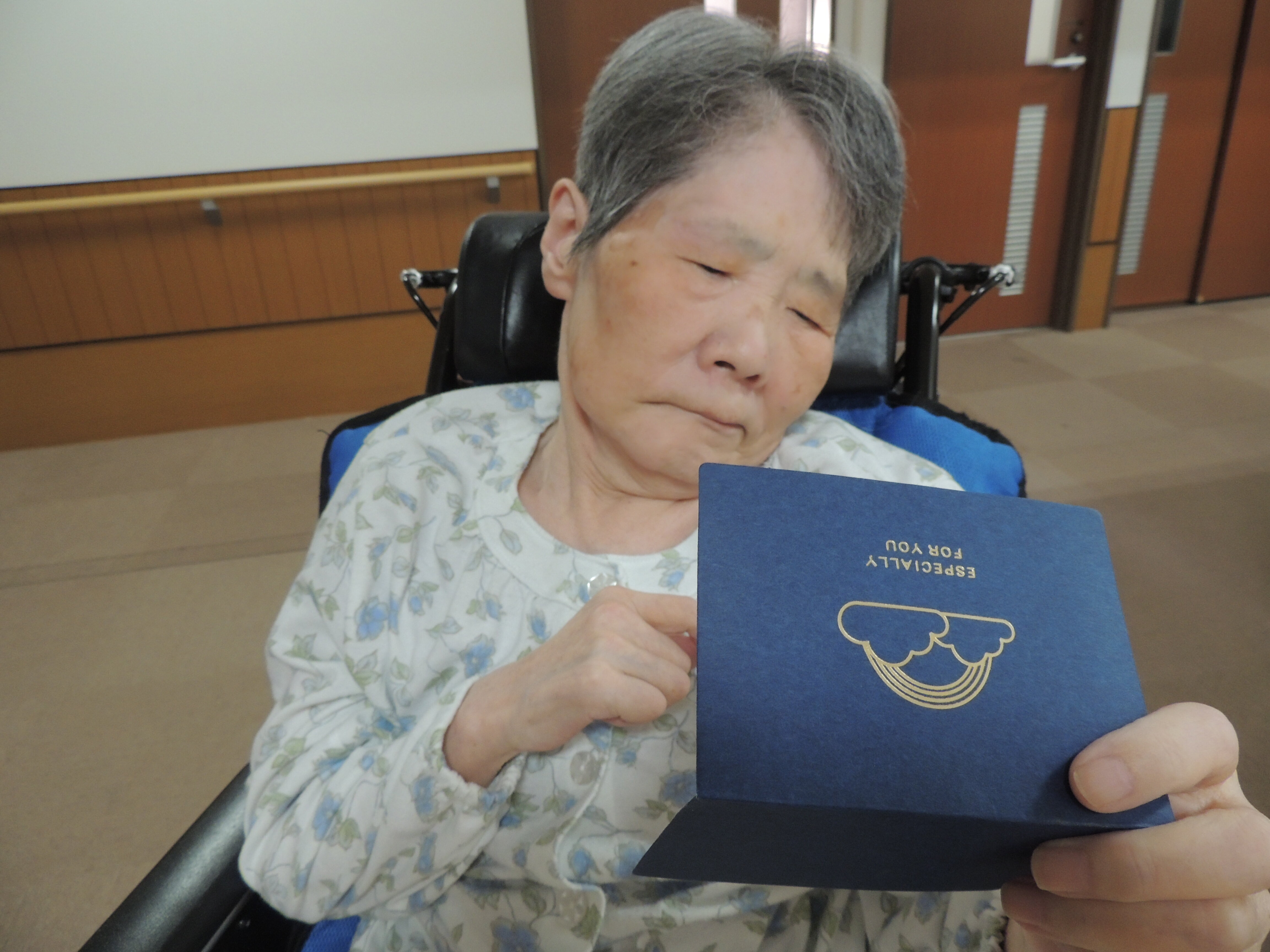 今回の母の日のイベントはご入居者(女性の方)には内緒でご家族からメッセージカードをお渡しさせて頂きました。