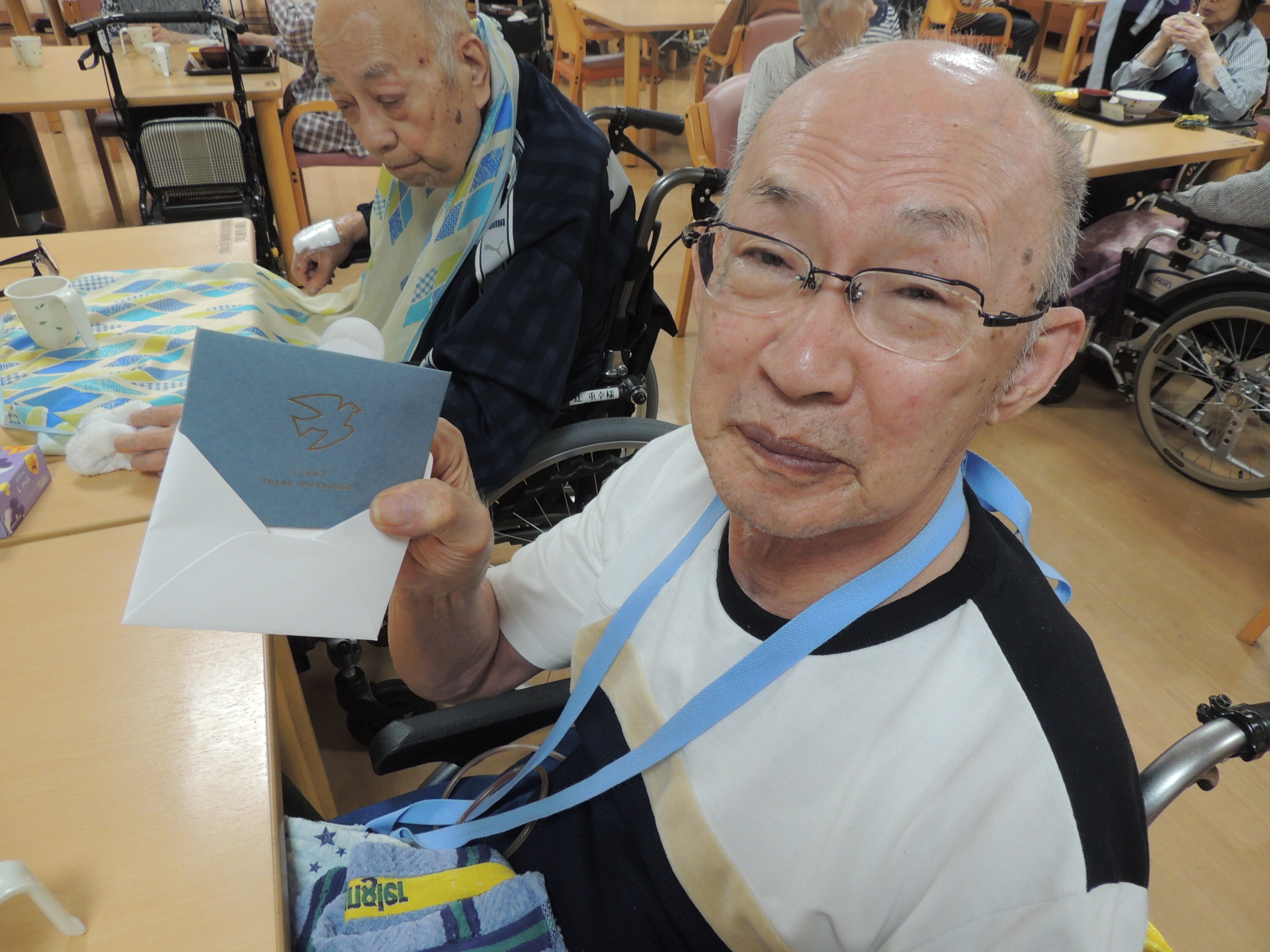 ご家族から男性のご入居者へサプライズで手紙を施設に送って頂きお渡しさせて頂きました。