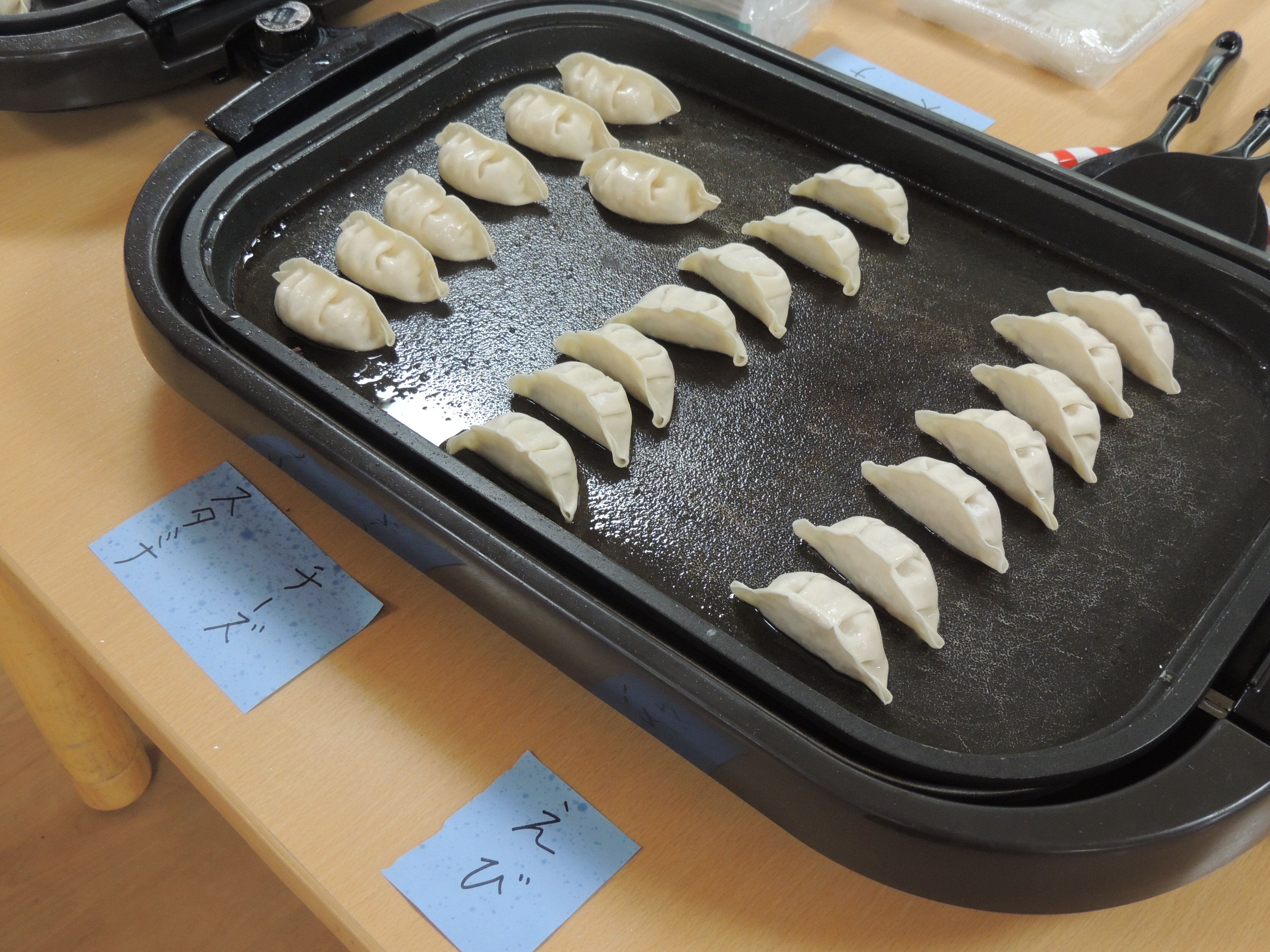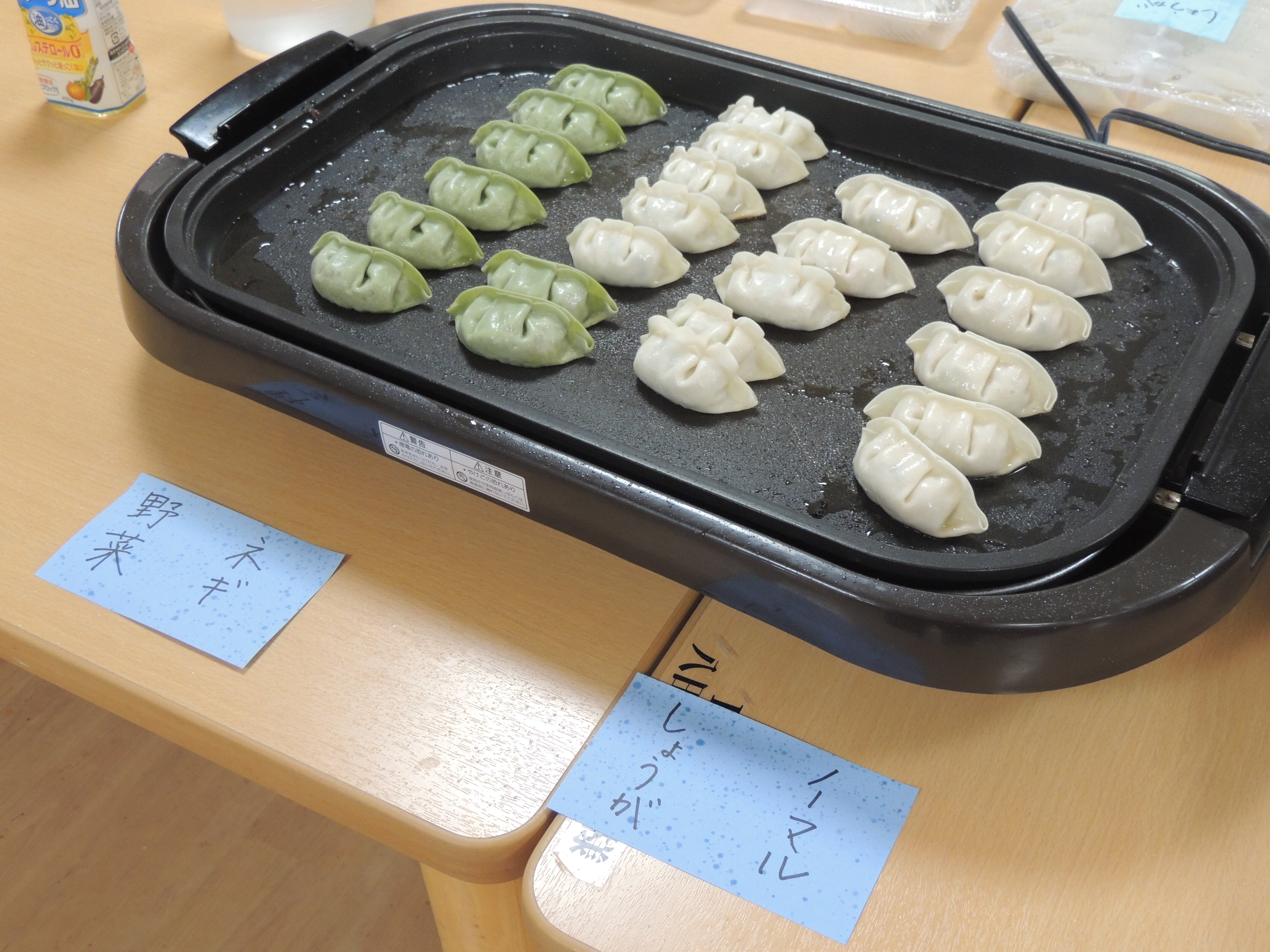 ノーマル・野菜・ネギ・生姜・スタミナ・海老・チーズの7種類の餃子を用意しご入居者の方に選んで召し上がって頂きました。