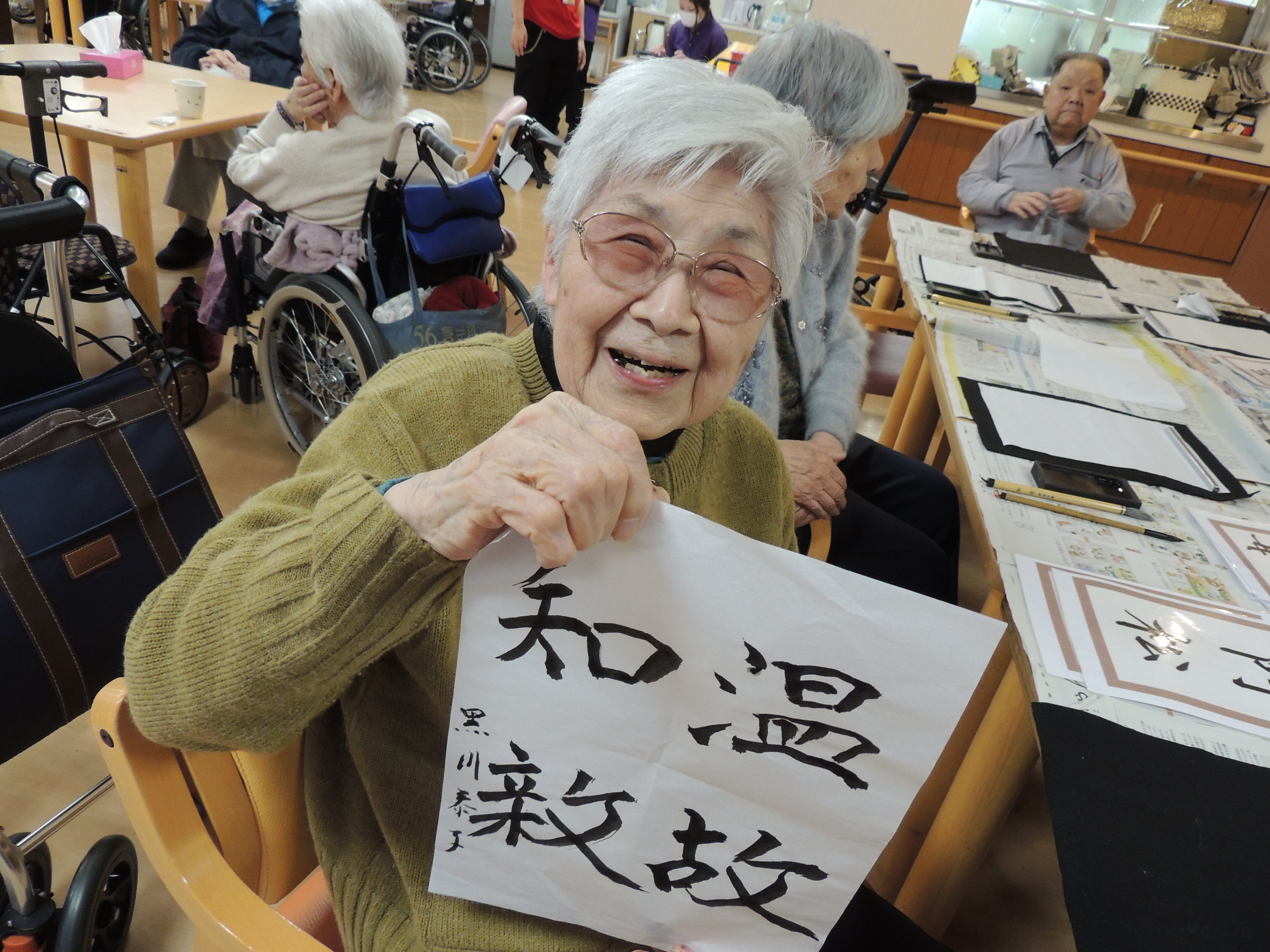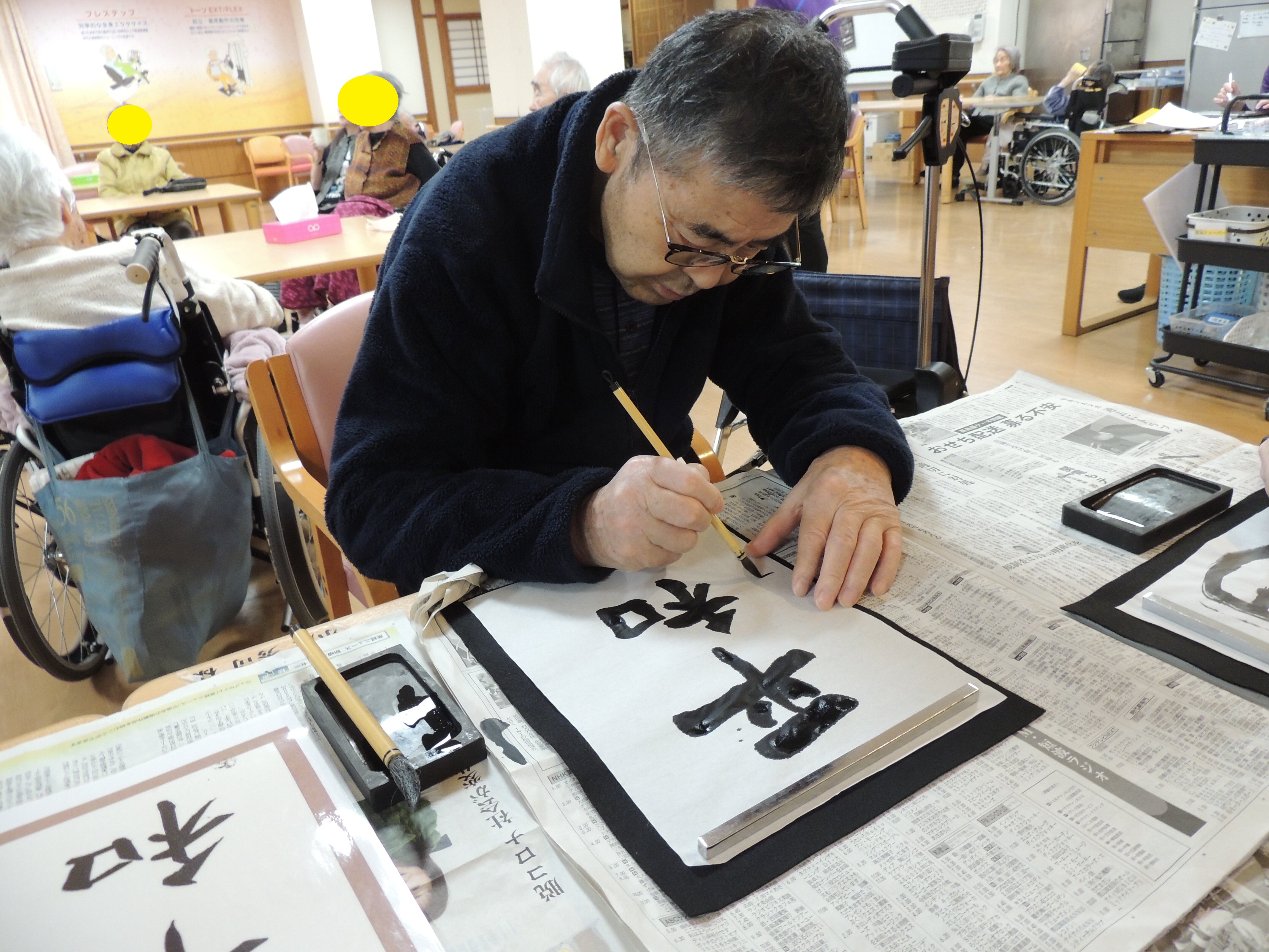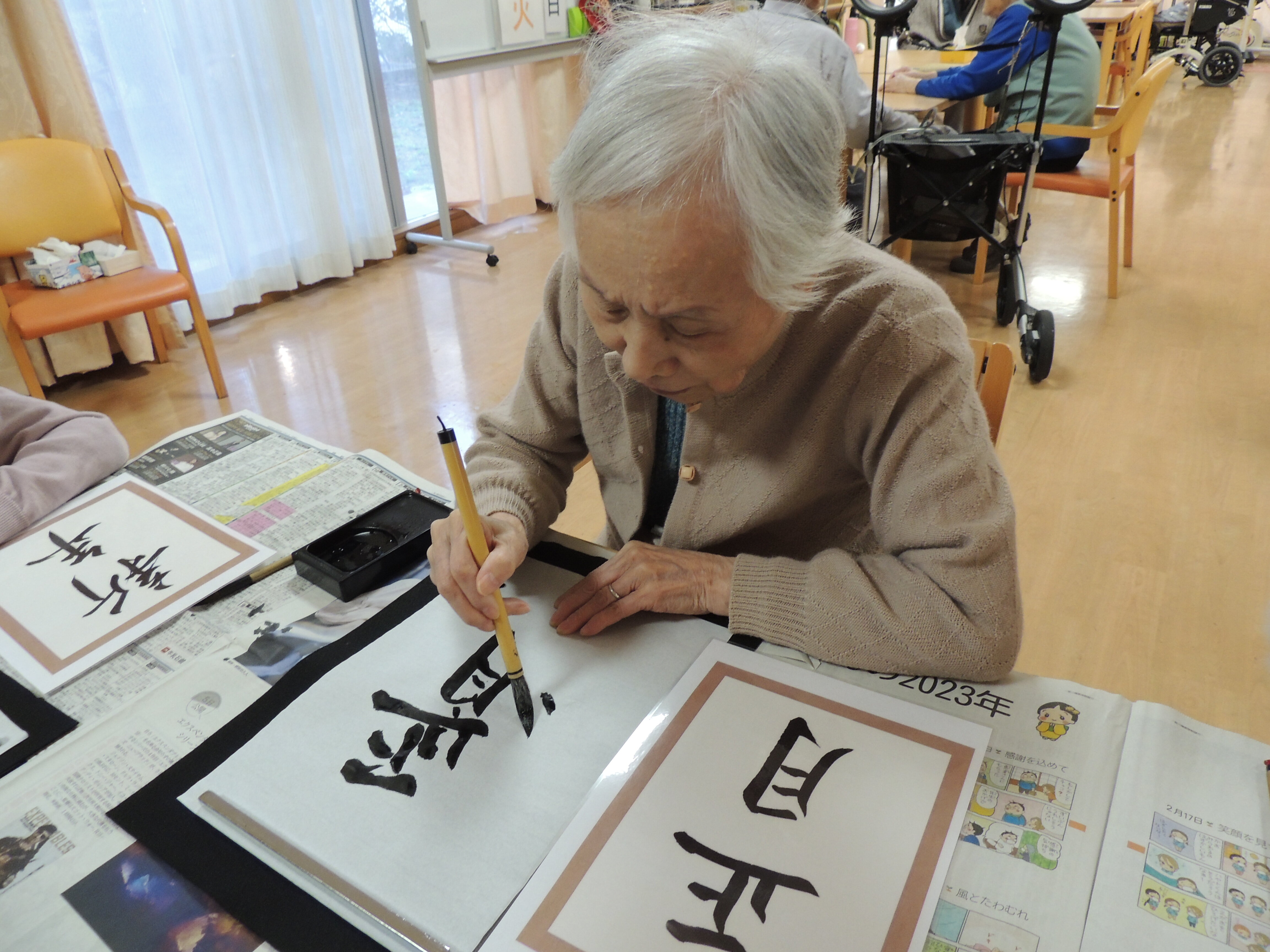 ご入居者様の書初めの様子をご紹介させて頂きます。