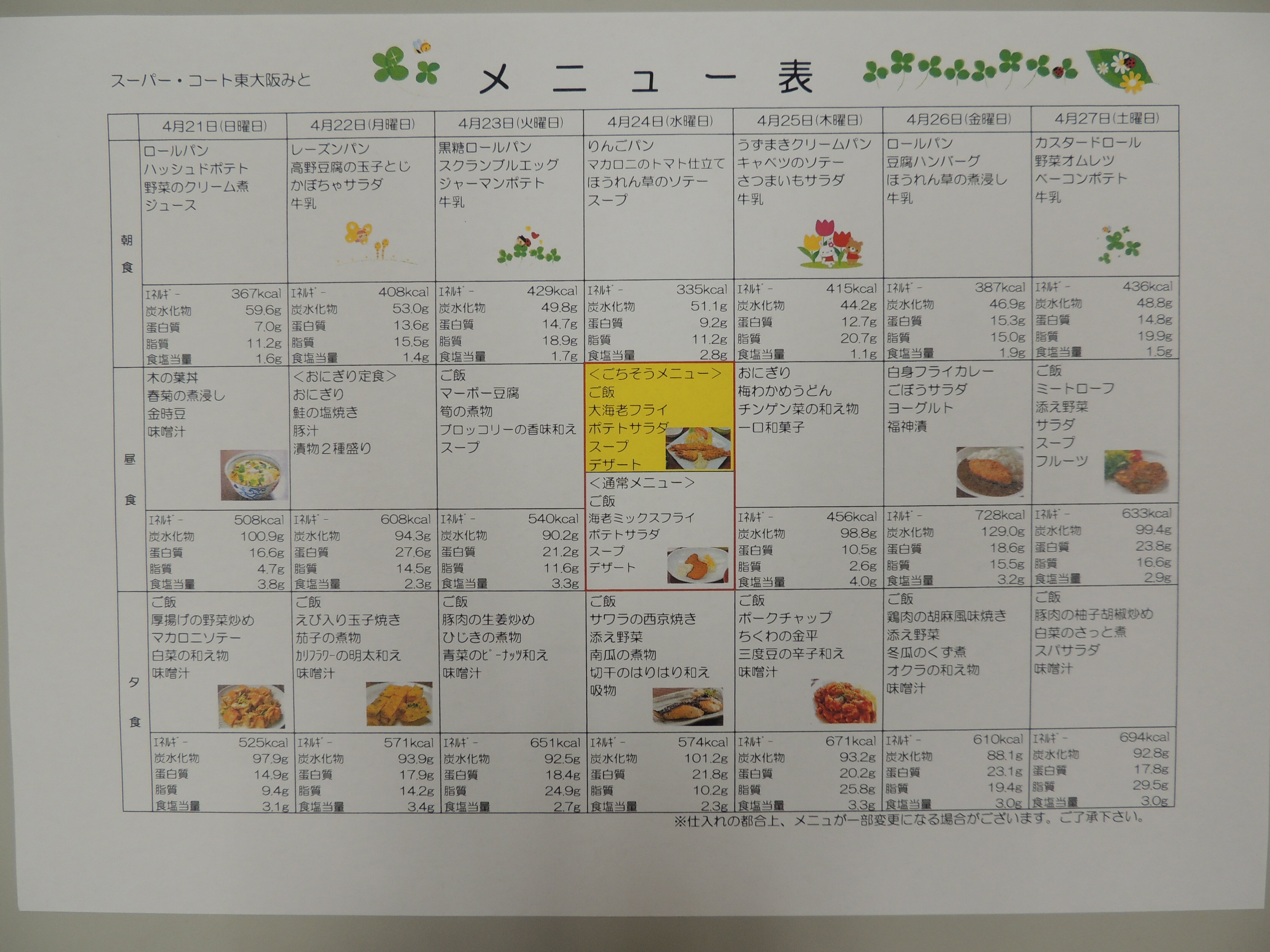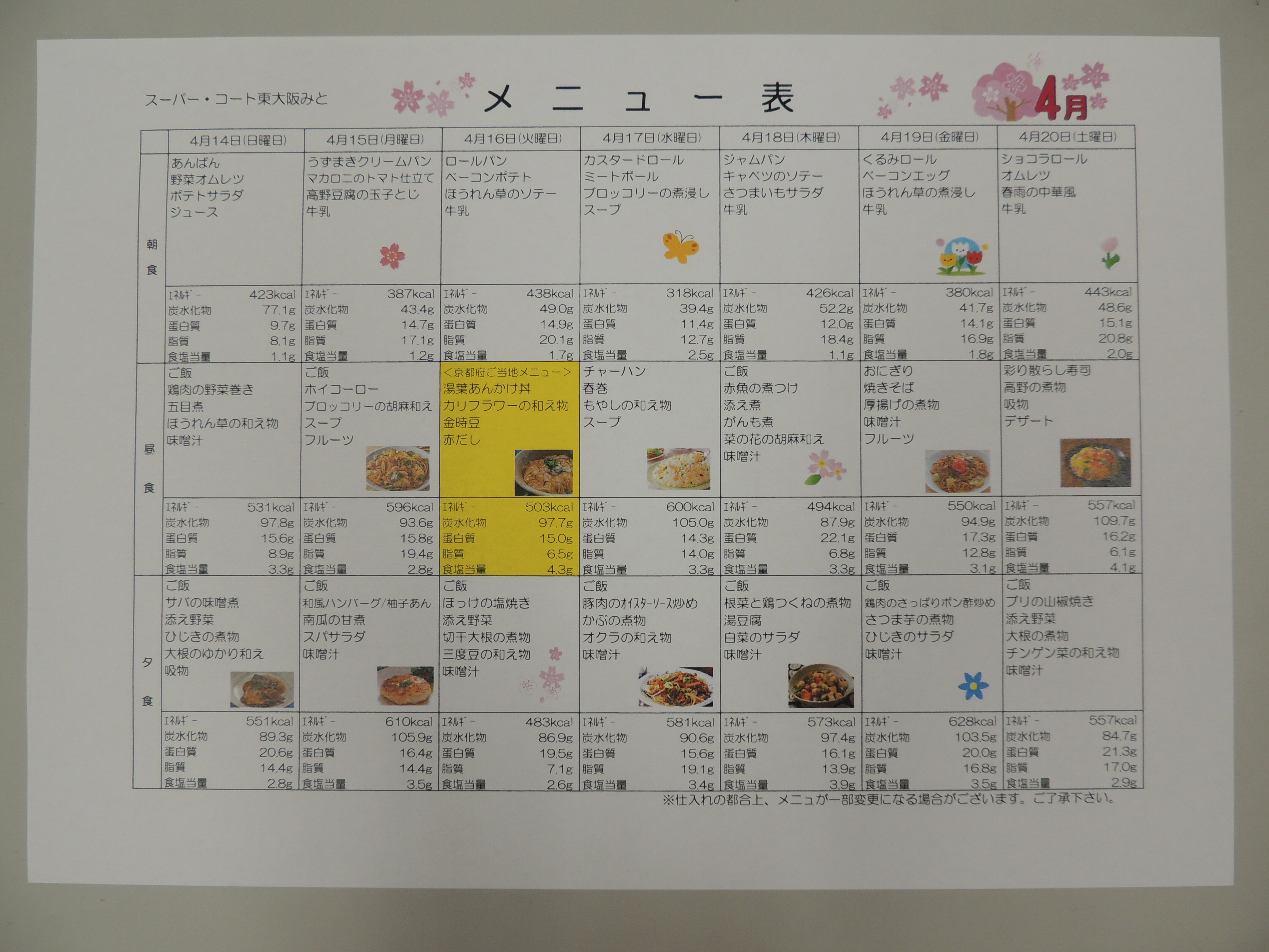 4月後半のメニュー表を公開します!