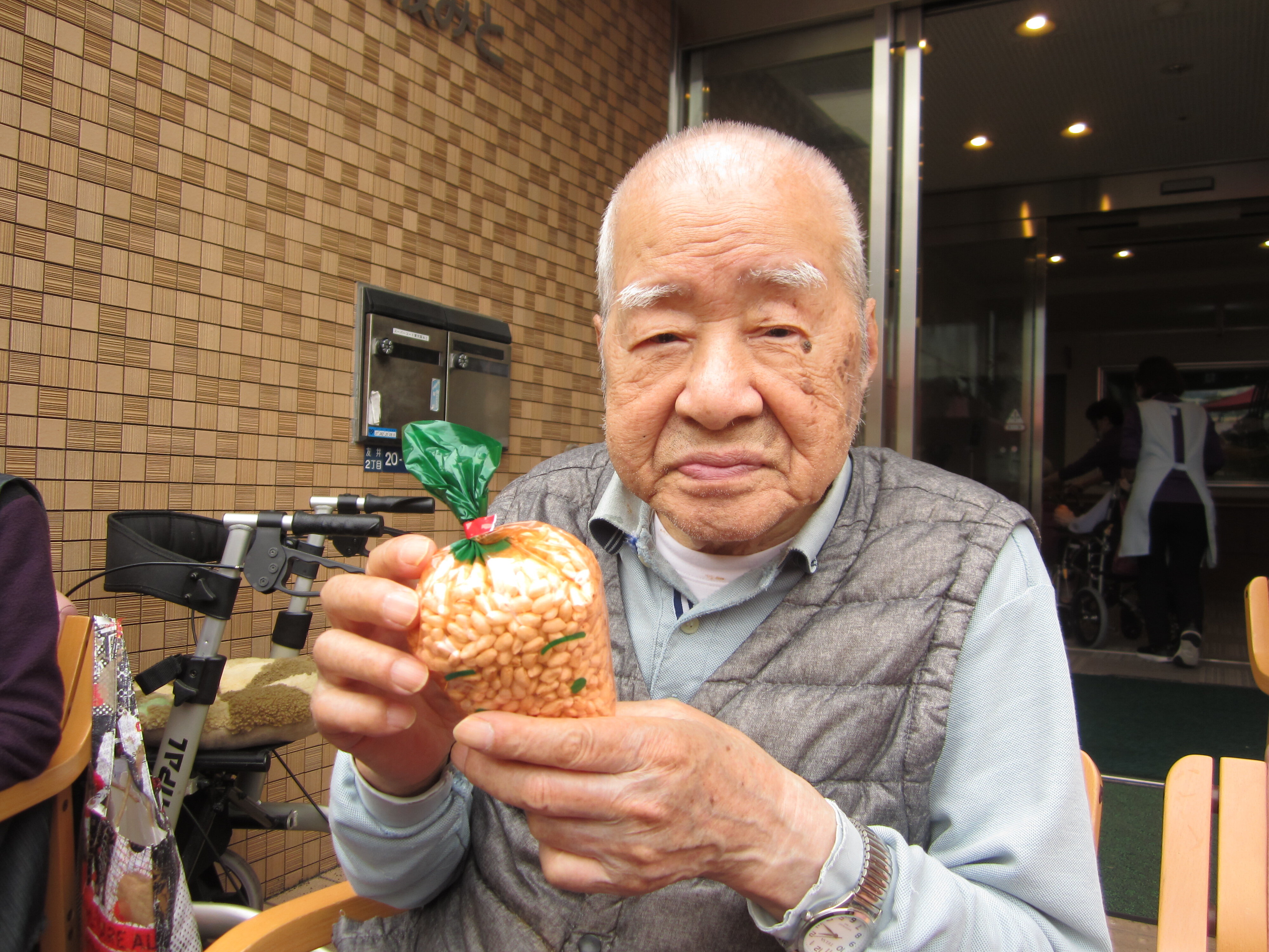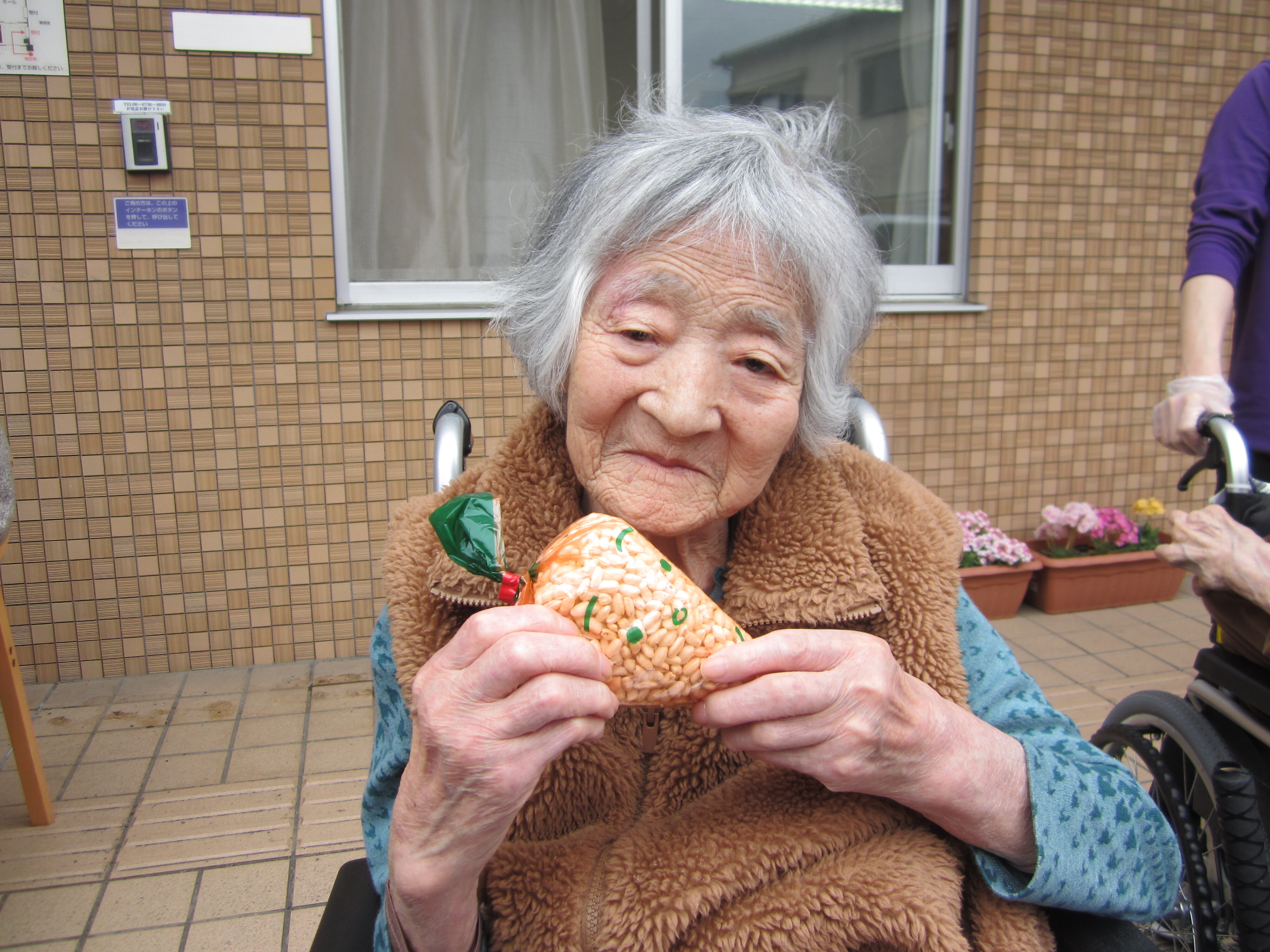 ご入居者はポン菓子を見てお腹が空いていたのか館内に戻られすぐに食べられていました(^^;