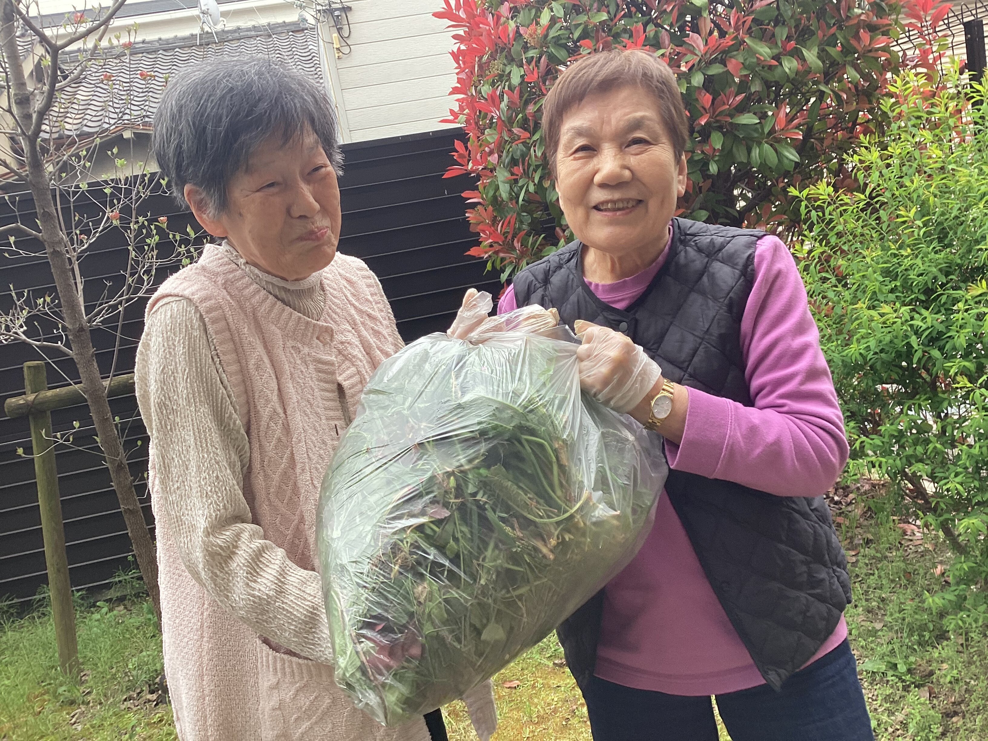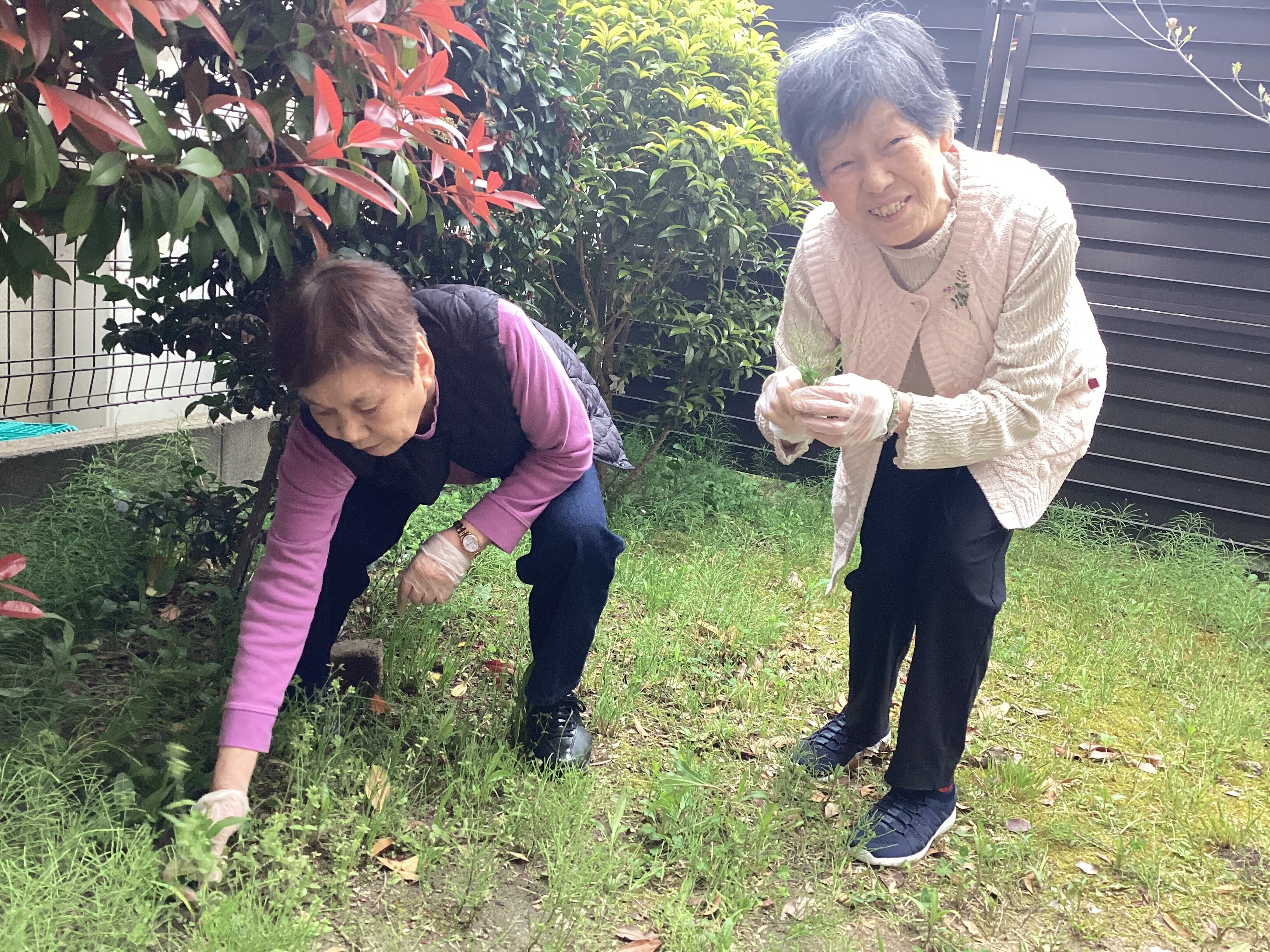 先日ナースとご入居者様で中庭の草取りをしてくれました(^-^)