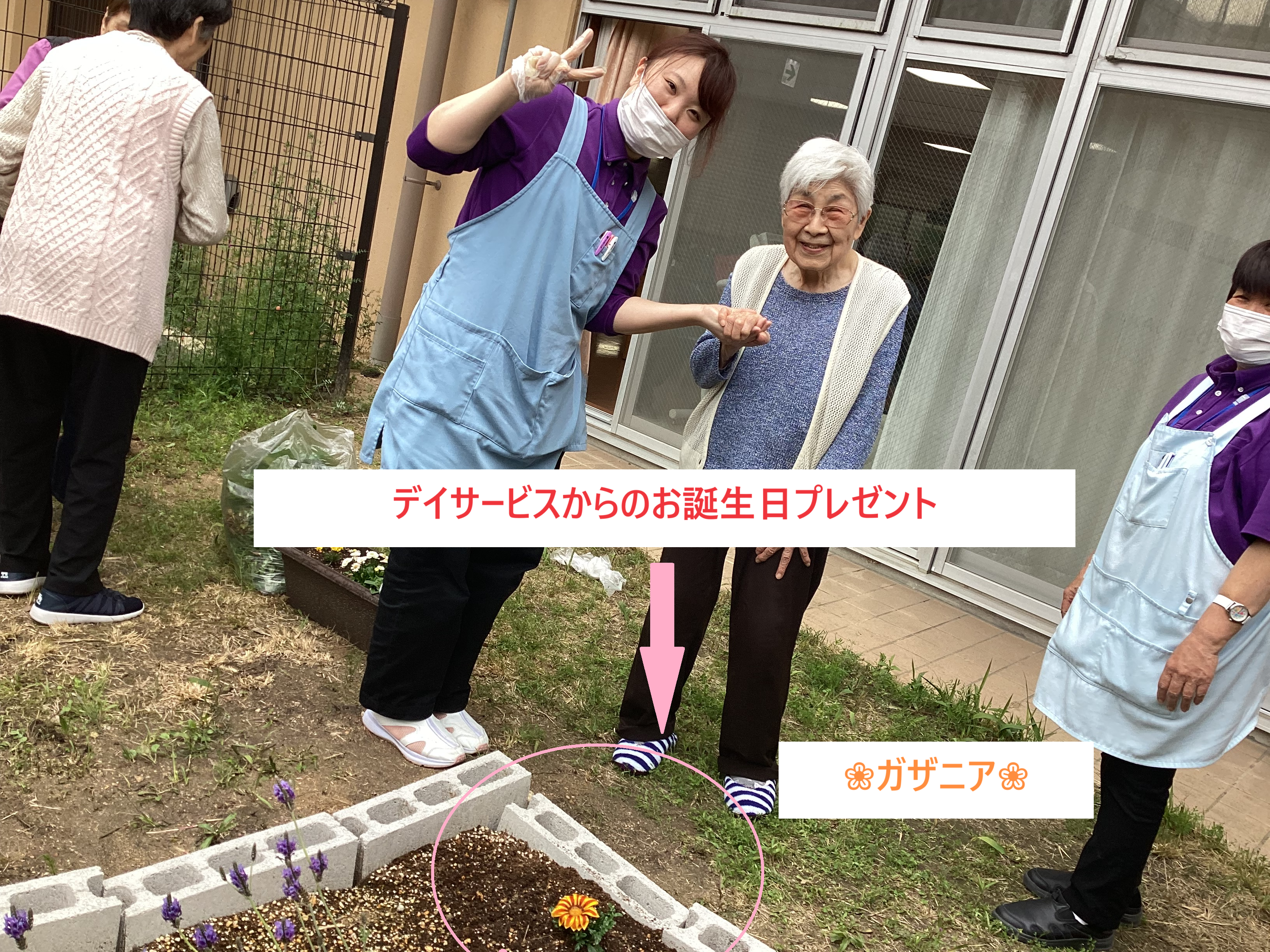 この日は今月お誕生日を迎えられた方がデイサービスでお花の苗を