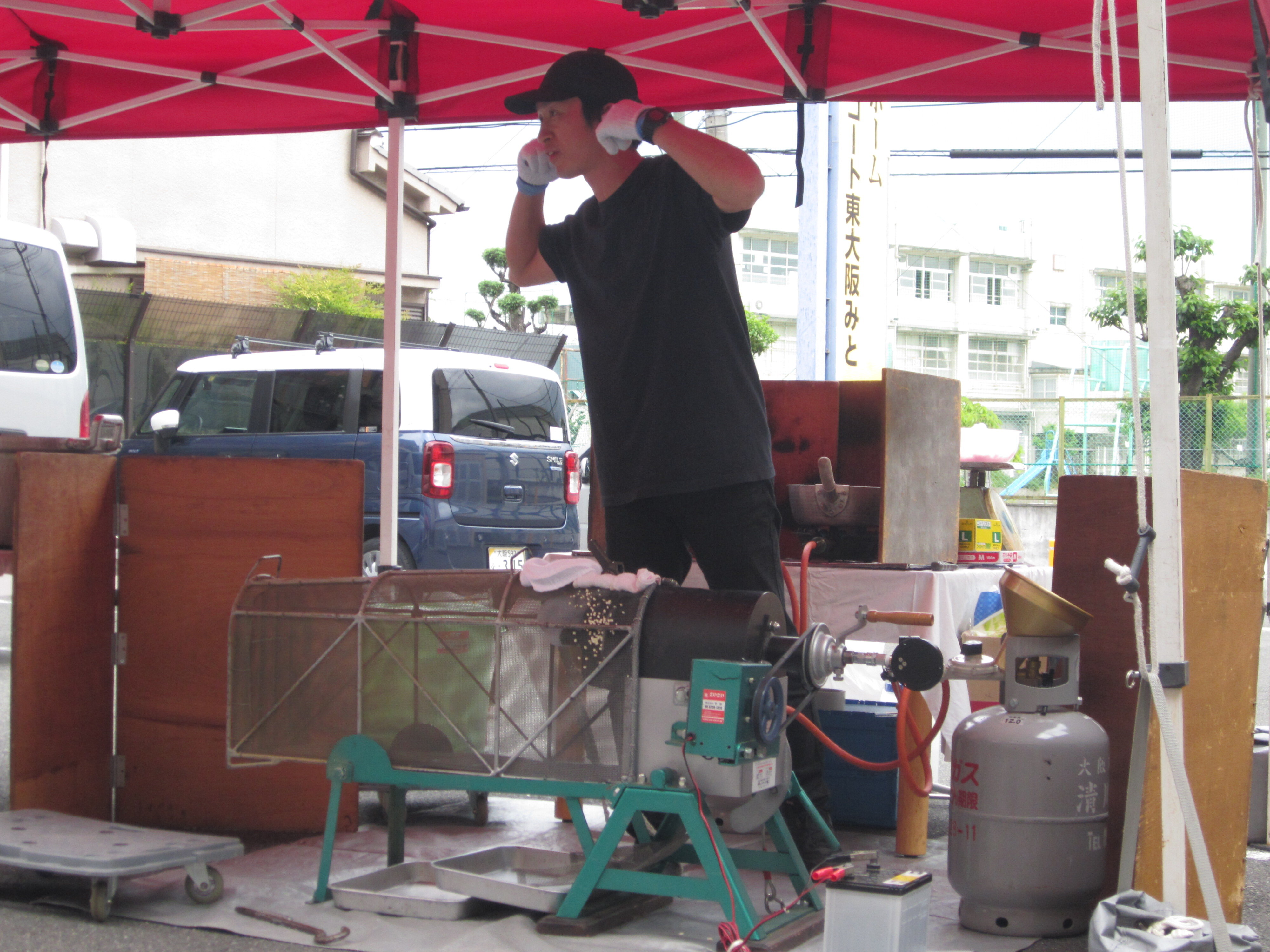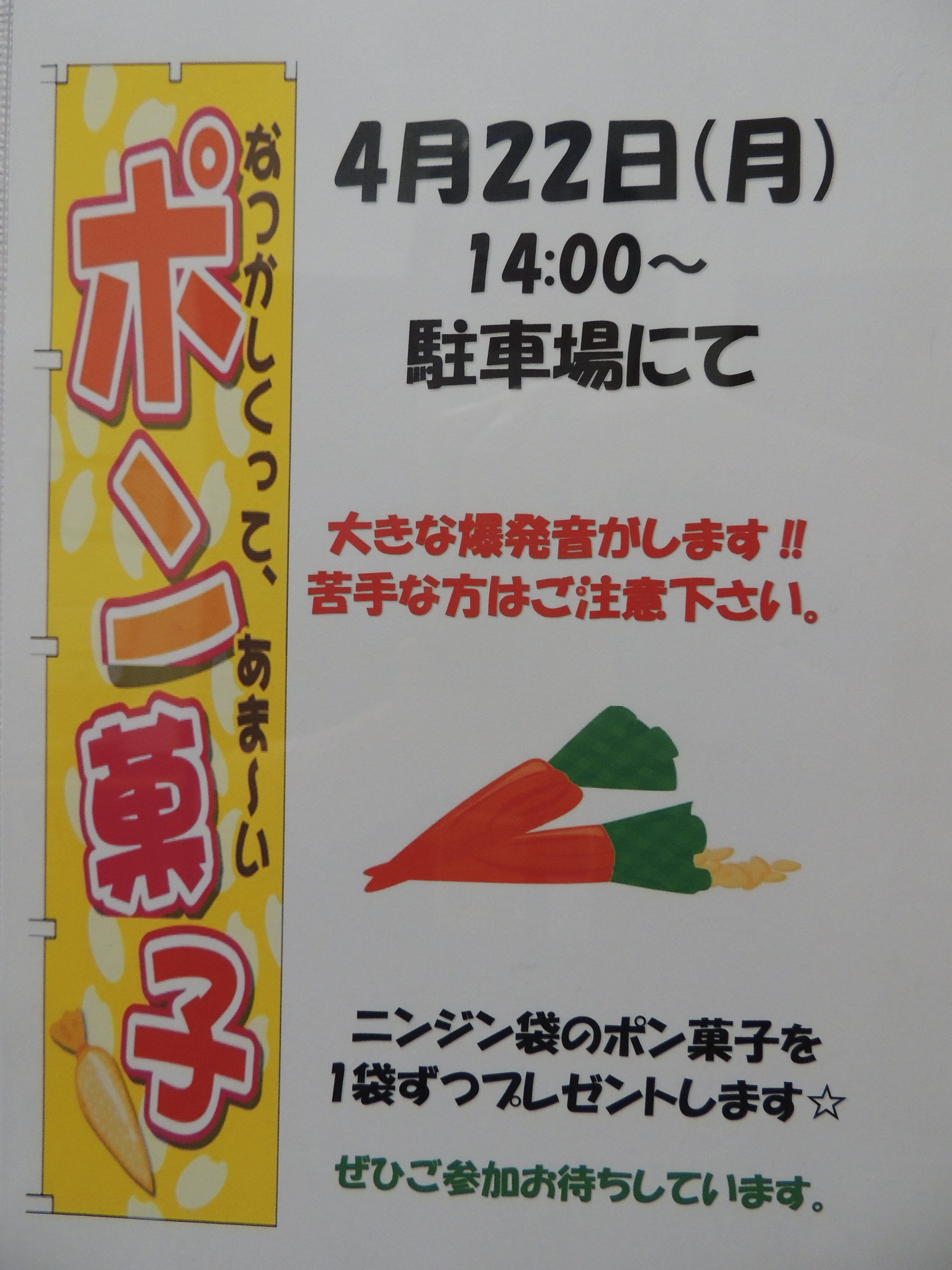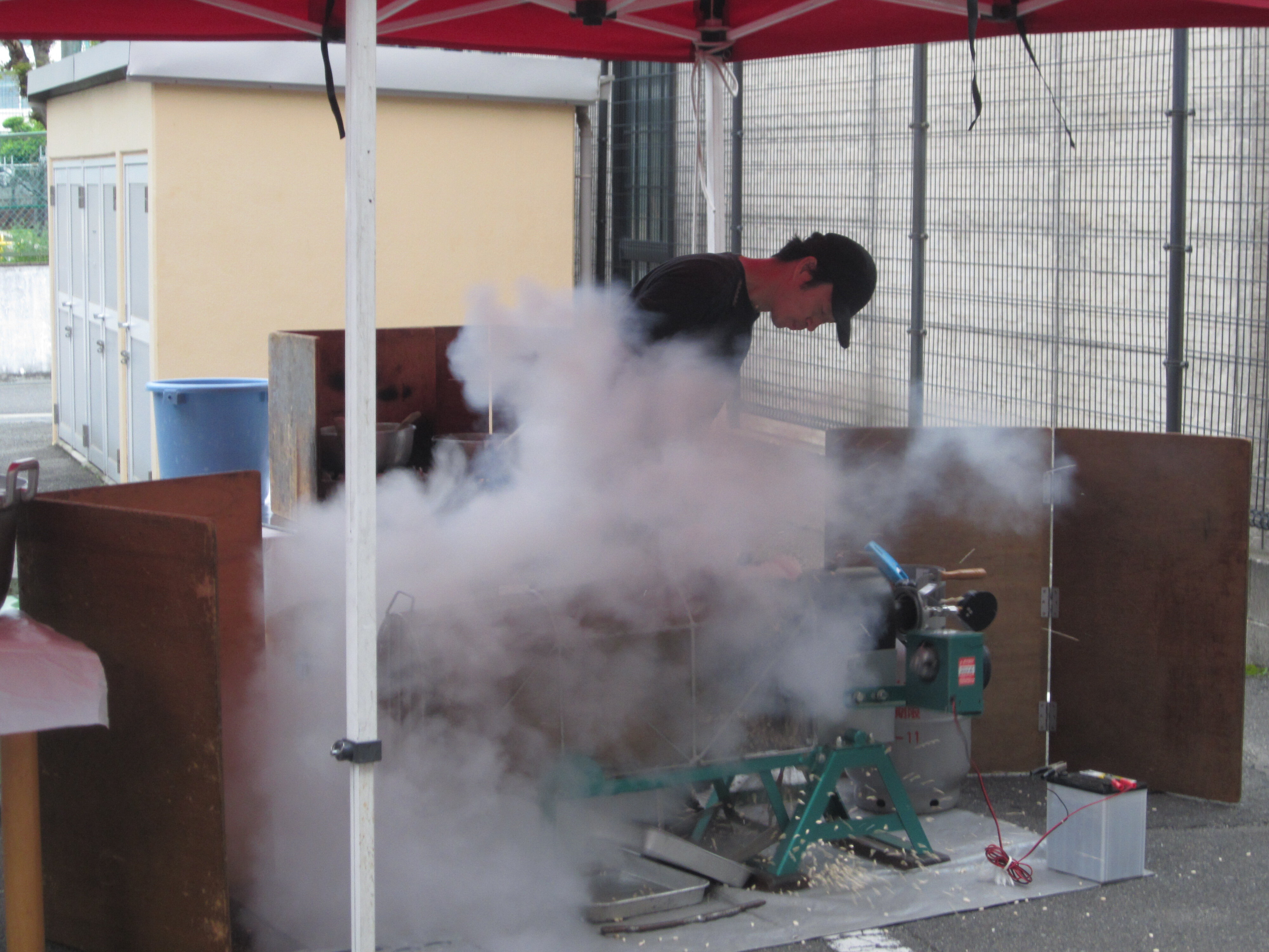 ポン菓子が出来上がる前にお兄さんから大きな音が鳴るから耳を塞いでくださいと注意が(^^;