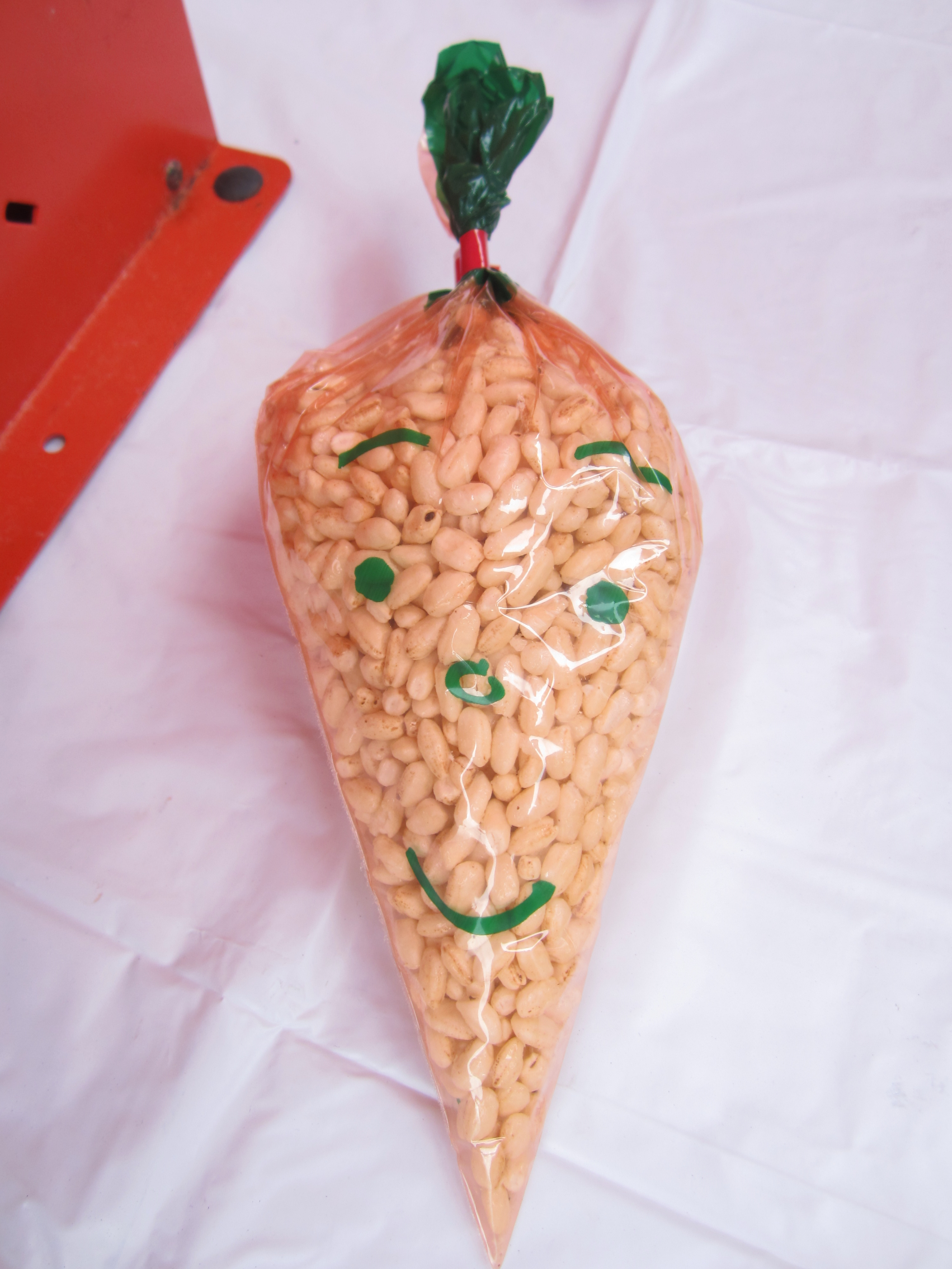 にんじんの形をしたかわいい顔の袋です(^^♪