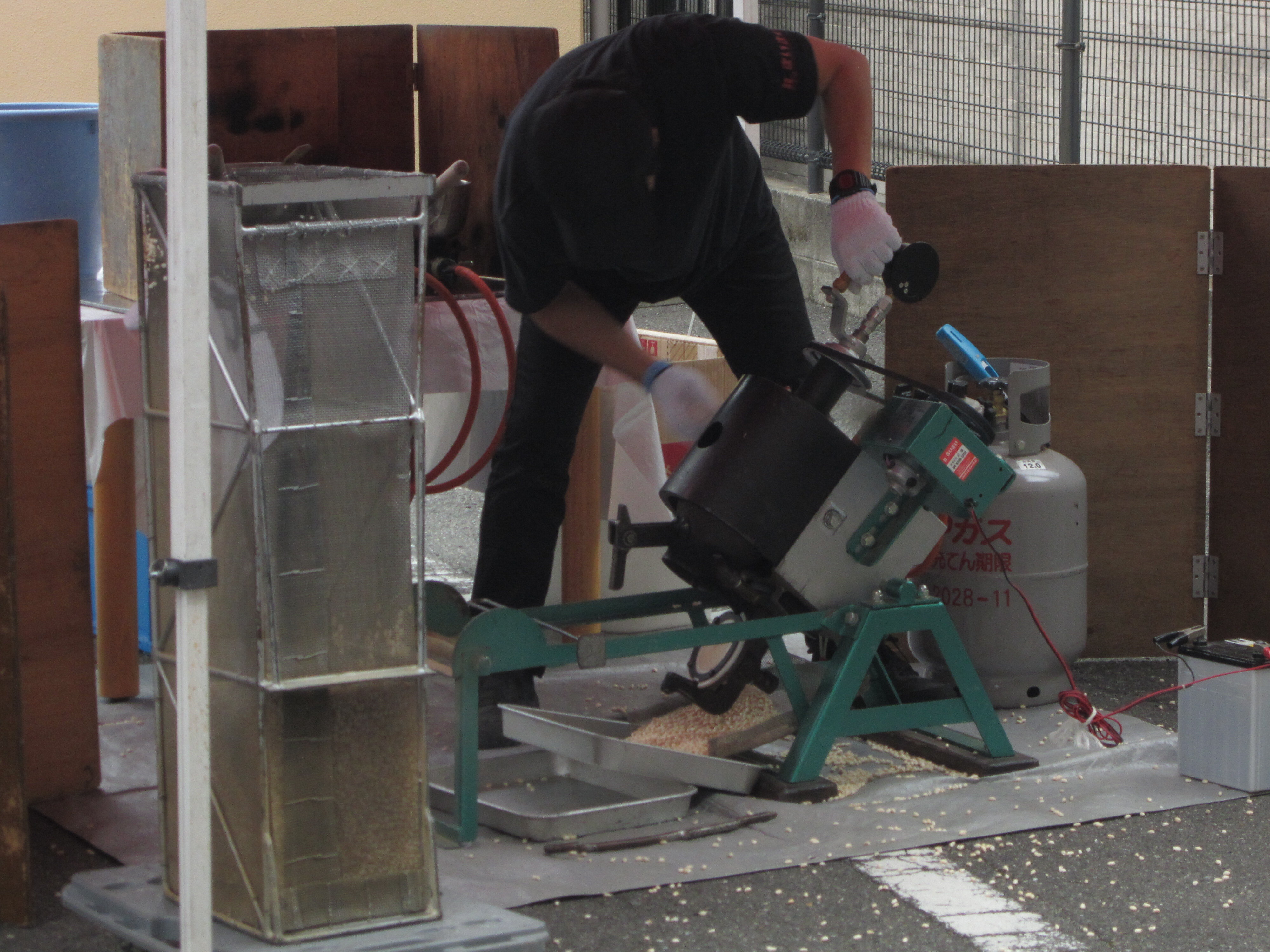 機械の中から残ったポン菓子を取り出していきます