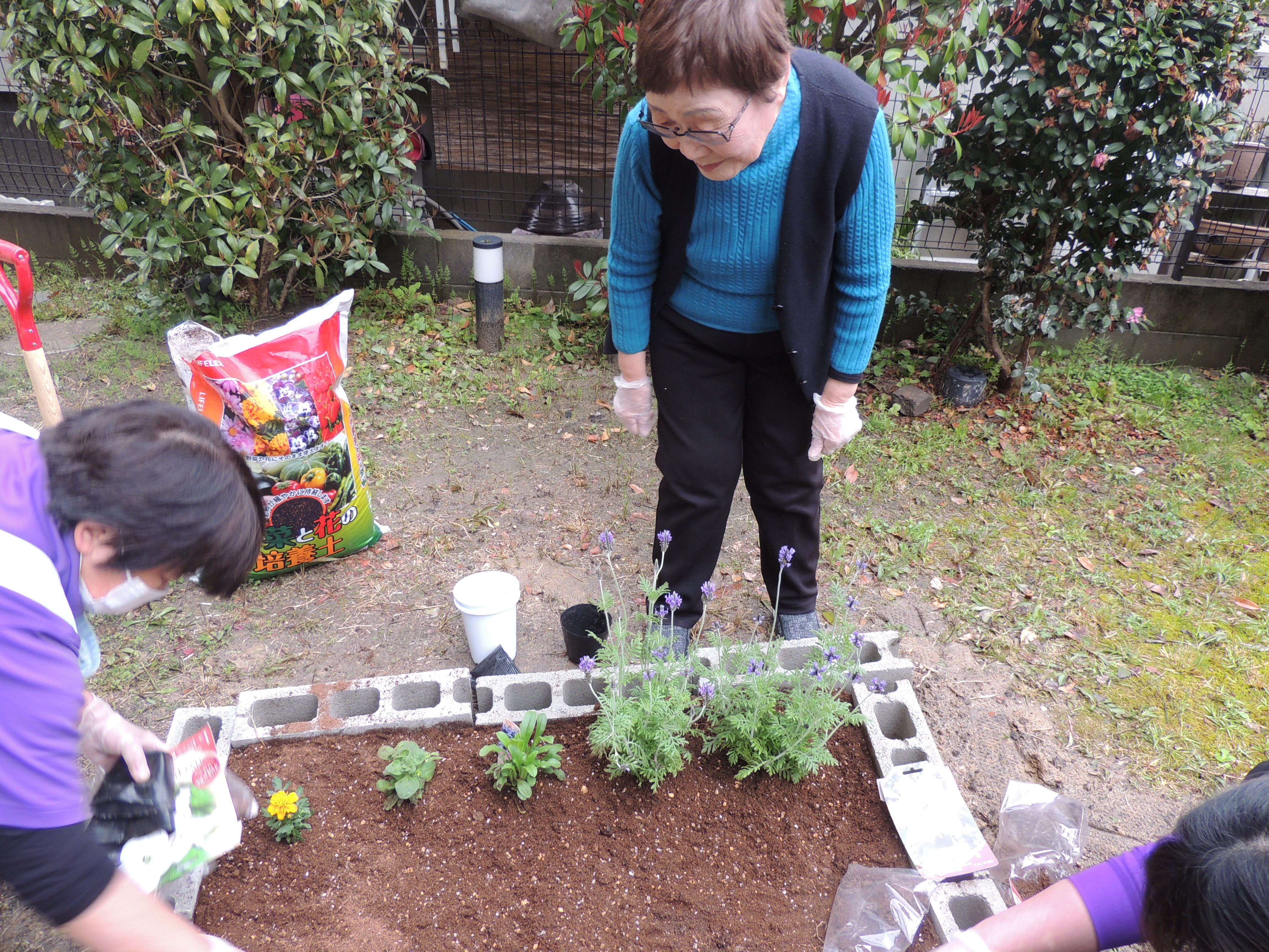 レクの際には雨は止んでましたが、土がドロドロだったので外は職員で植えました☆