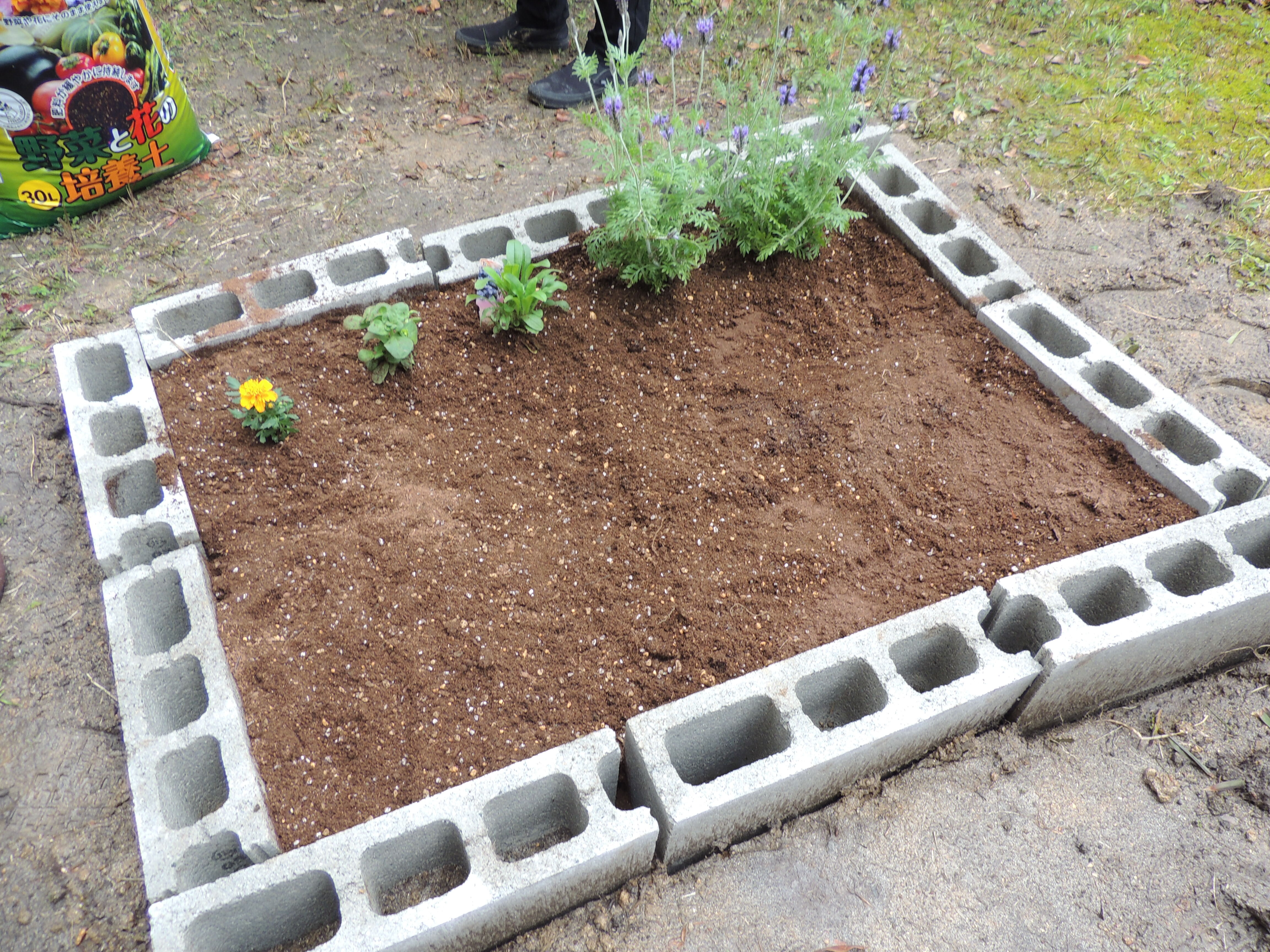 中庭に直植えや花壇にもお花を植えました(*^_^*)