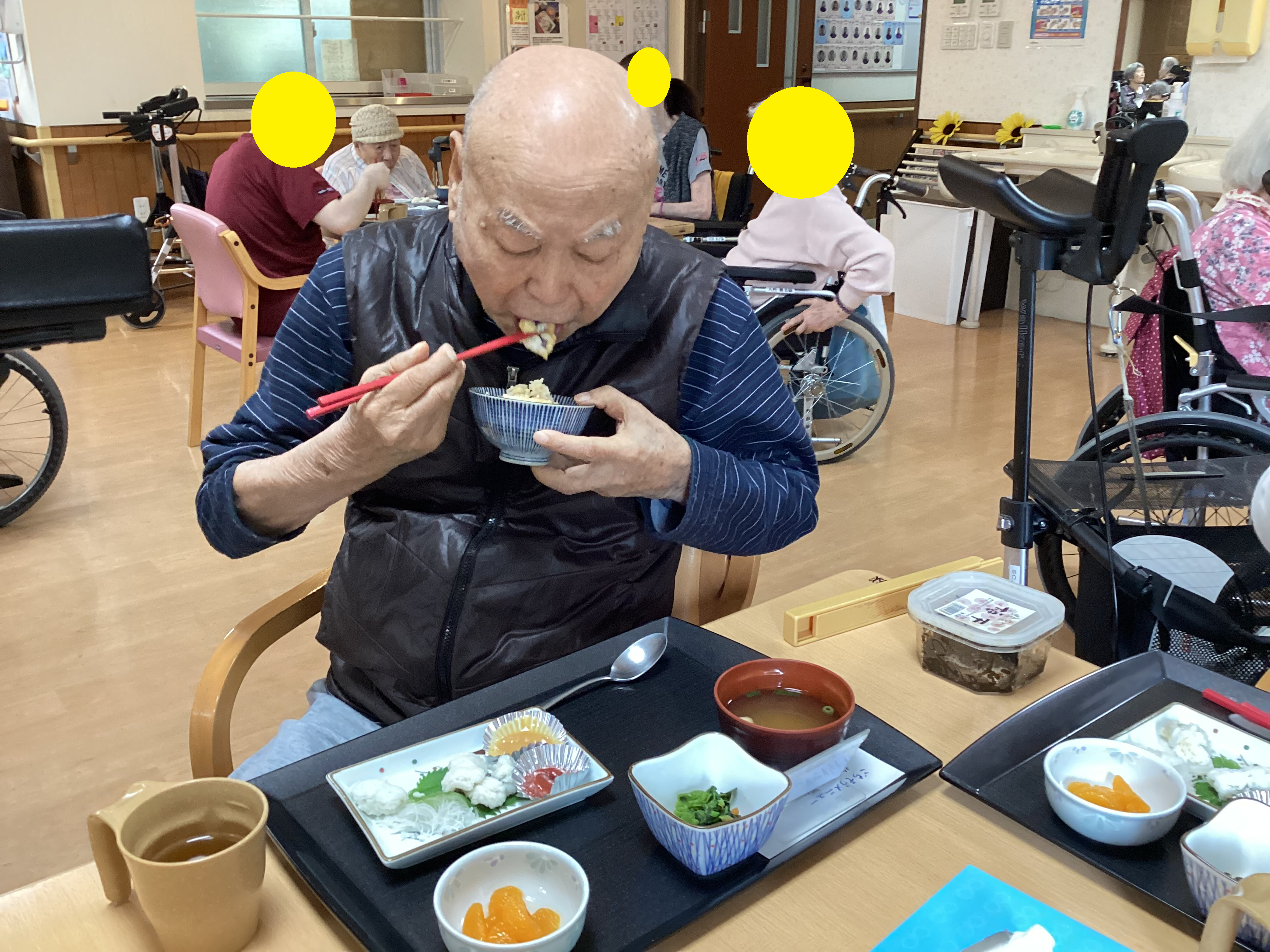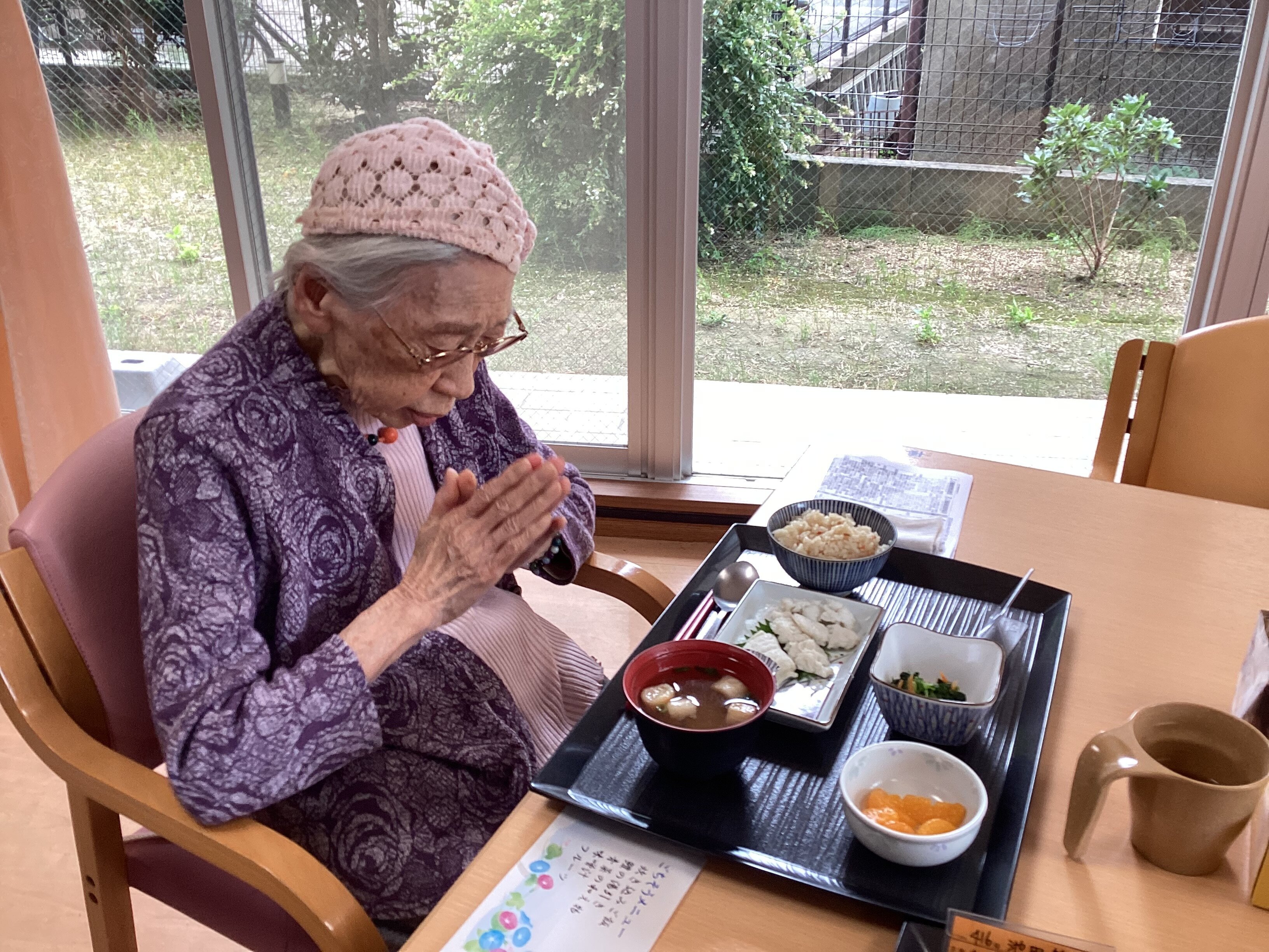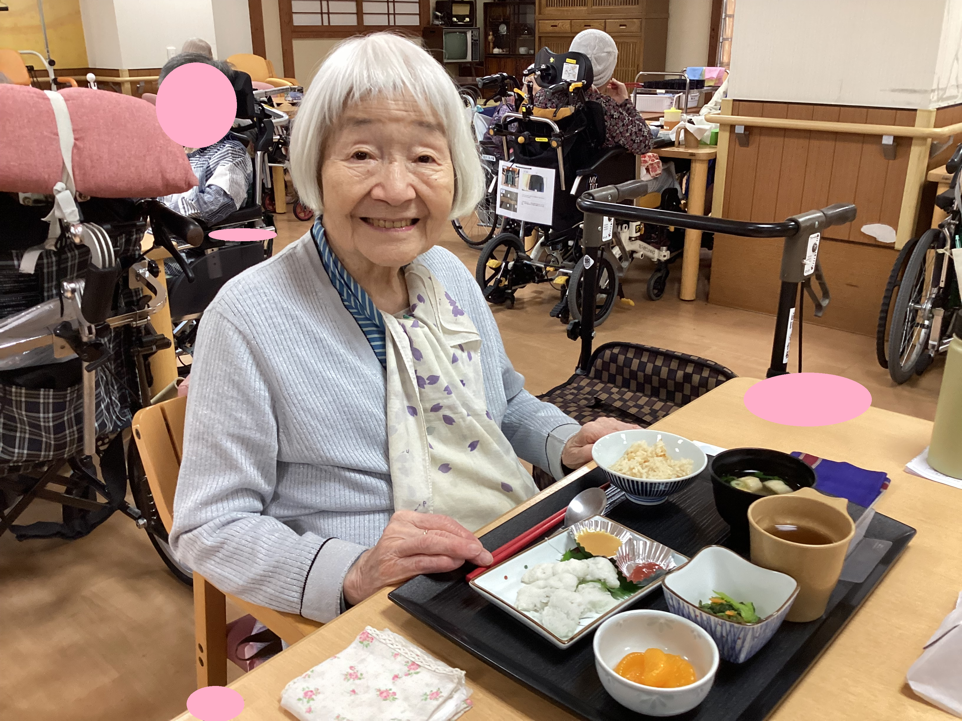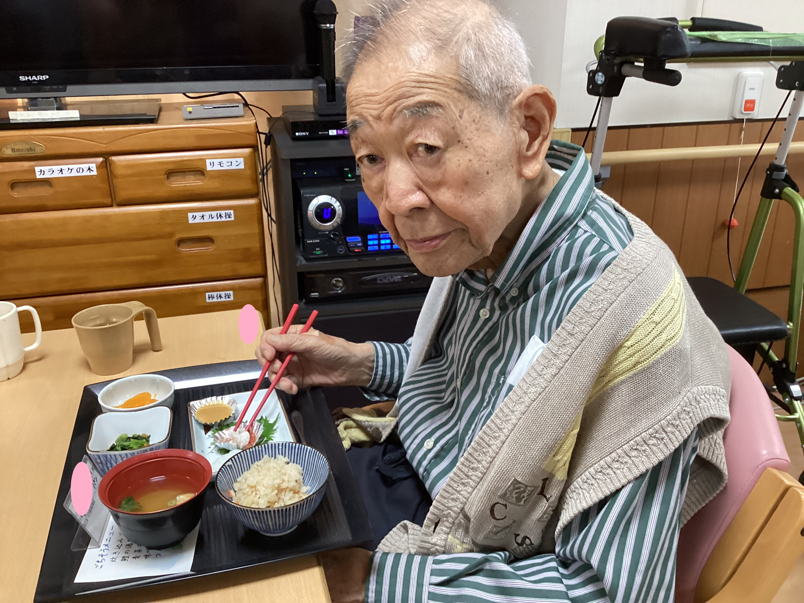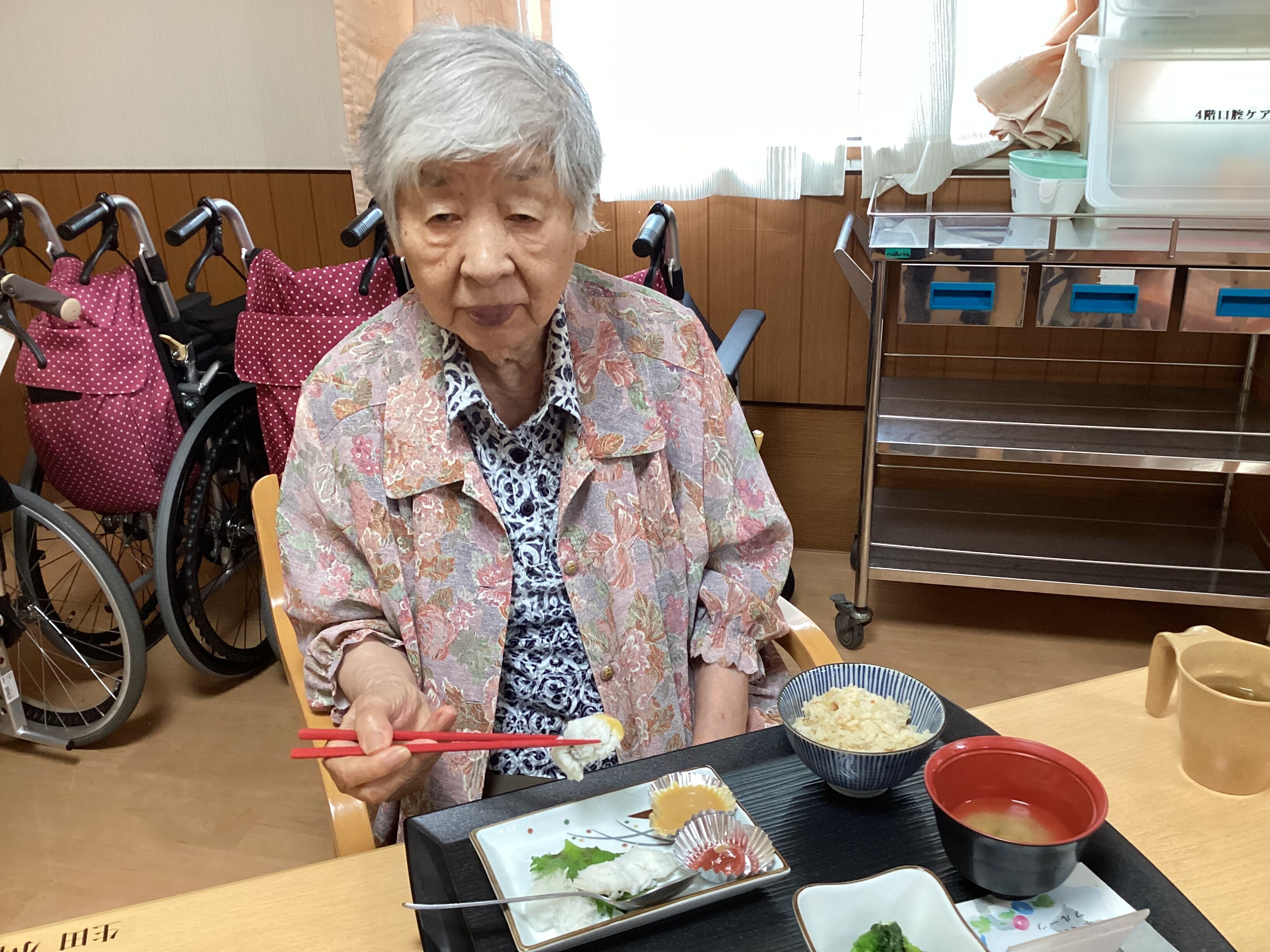 召し上がられる前に説明書きの用紙を熱心に読まれてご入居者同士でも