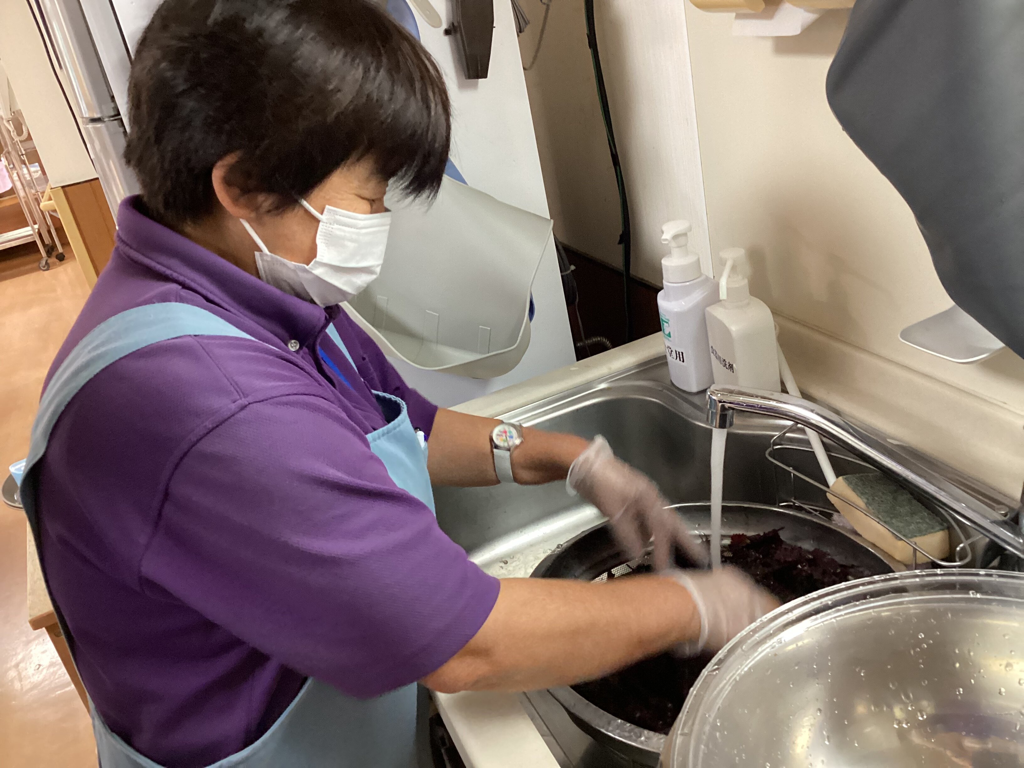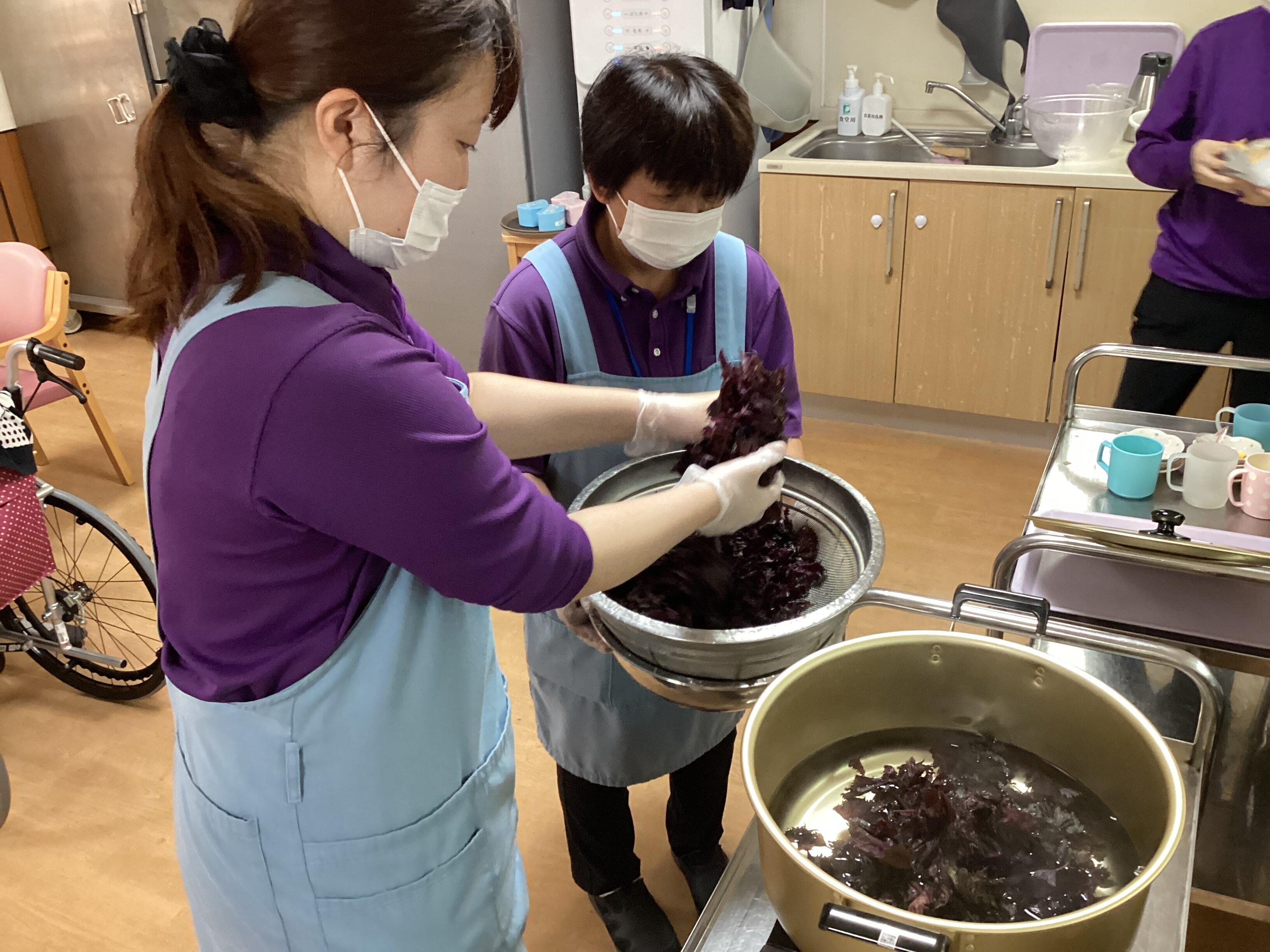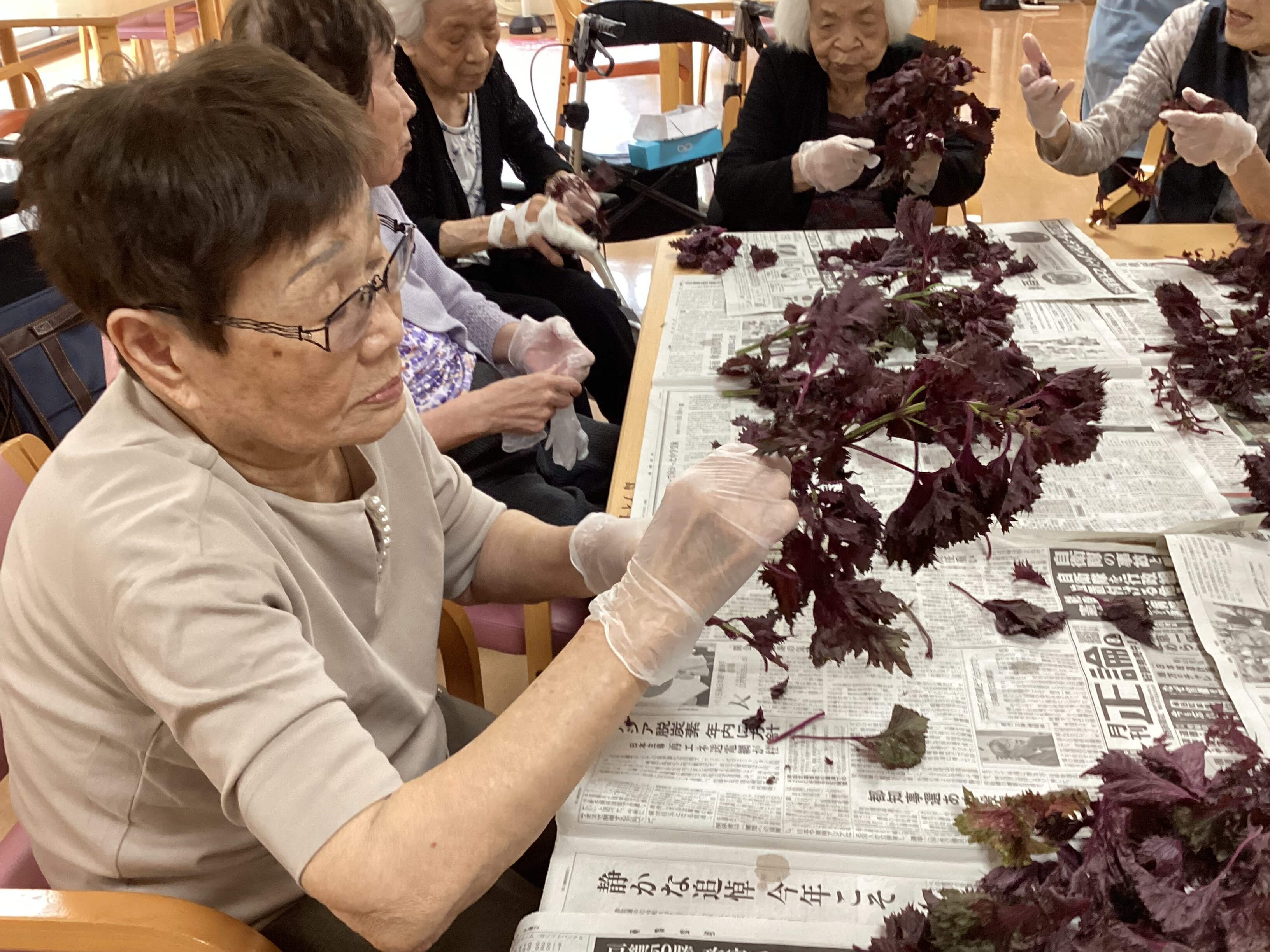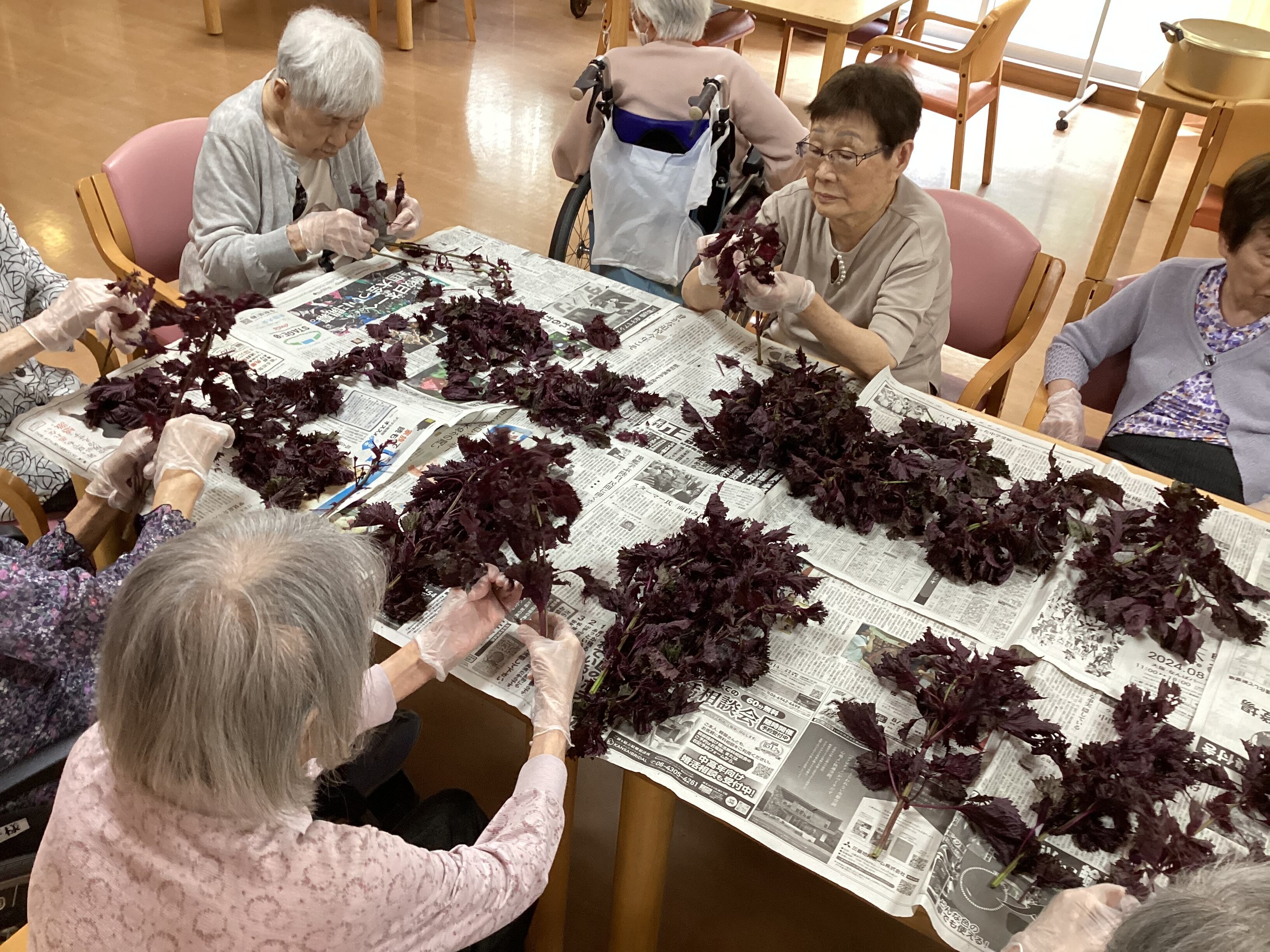 ご入居者様とご一緒に赤紫蘇ジュース作りをしました☆