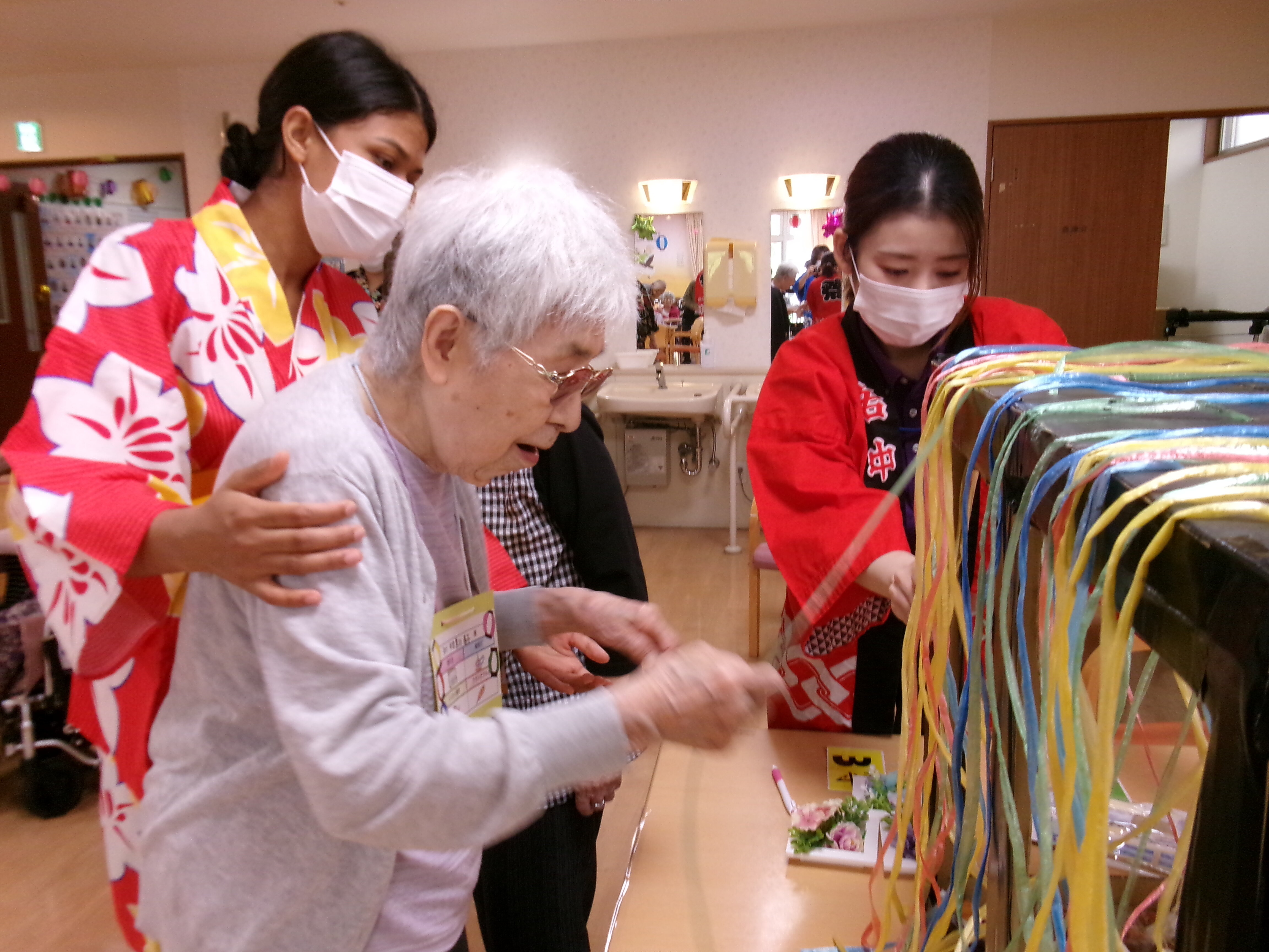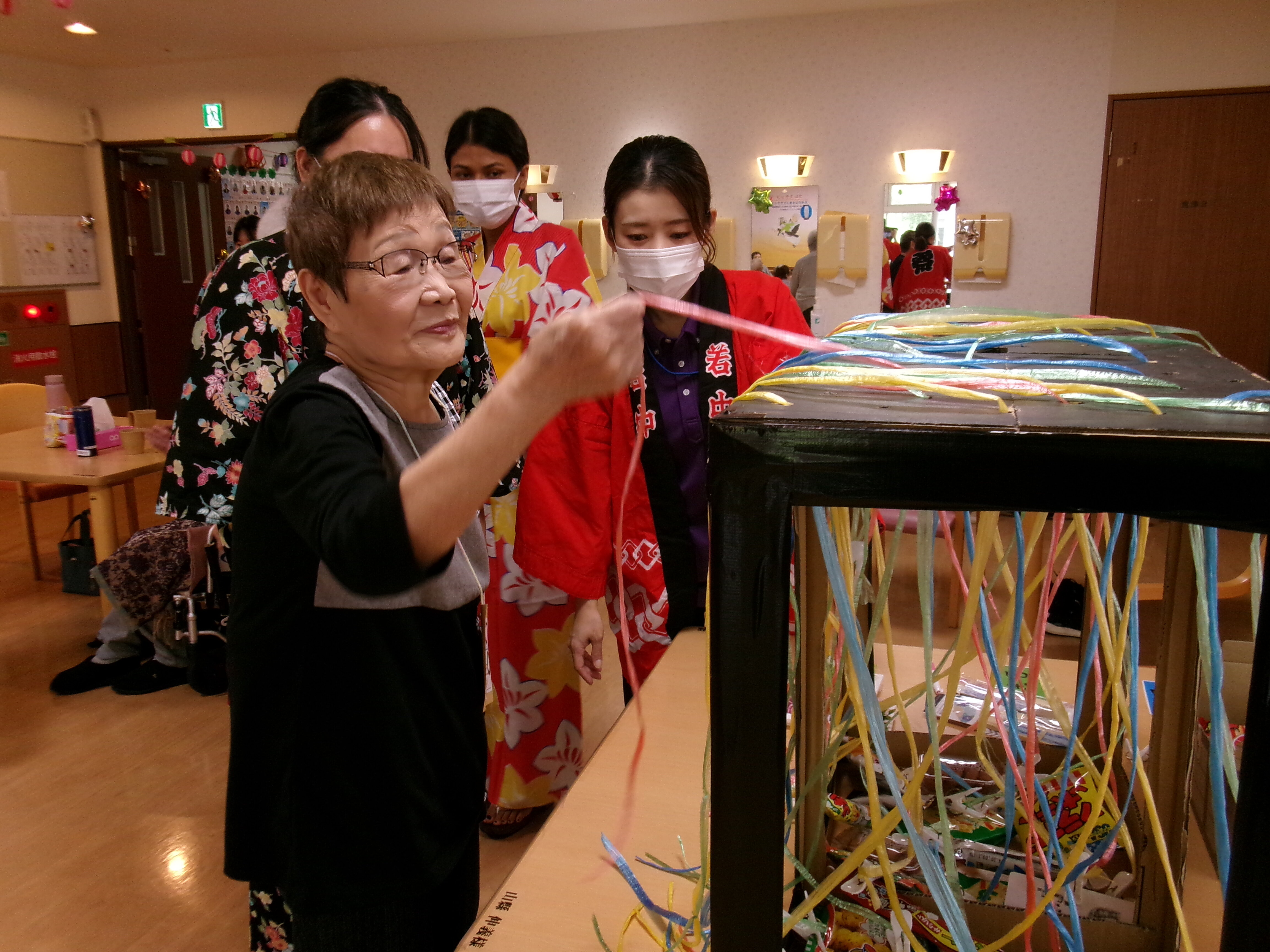 納涼祭、第二弾は『ひもひきくじ』の様子です