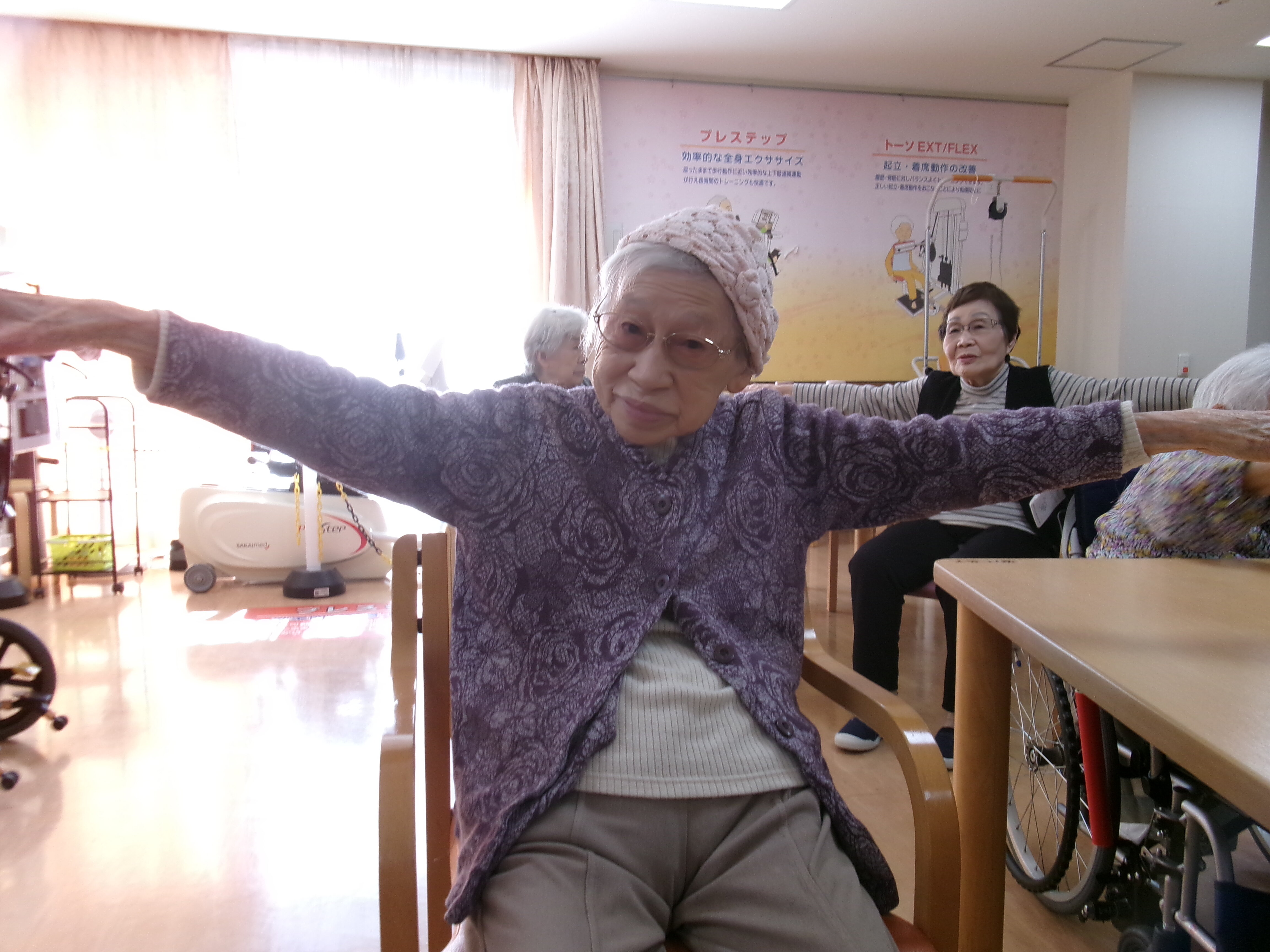皆さん体操の時間に食堂に来られ、一生懸命身体を動かして下さっています☆