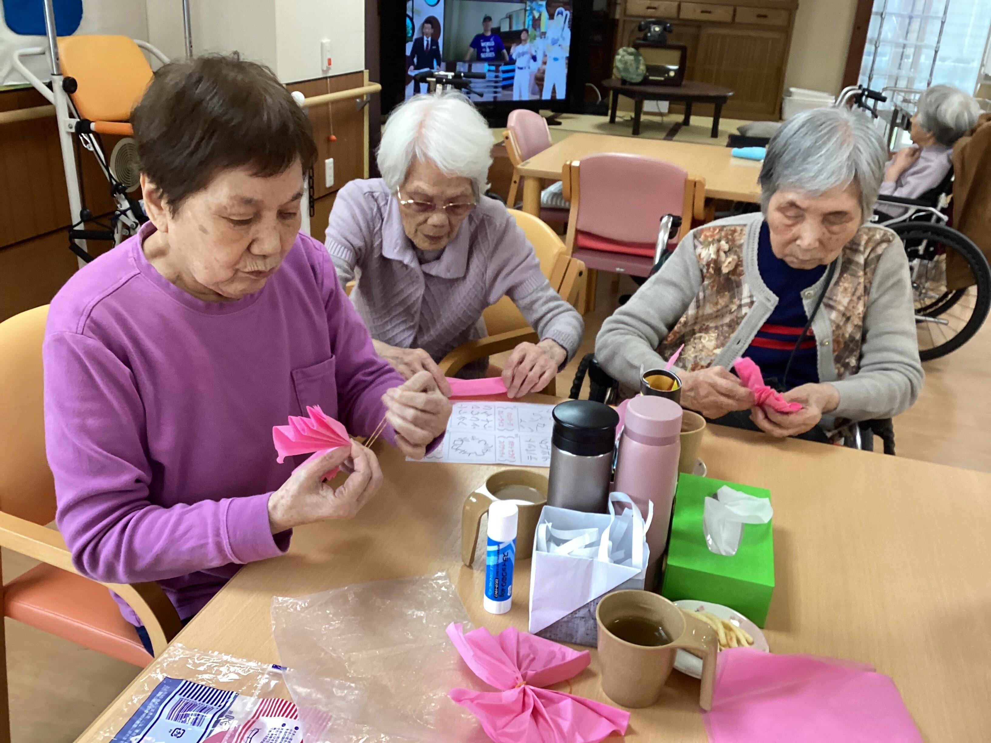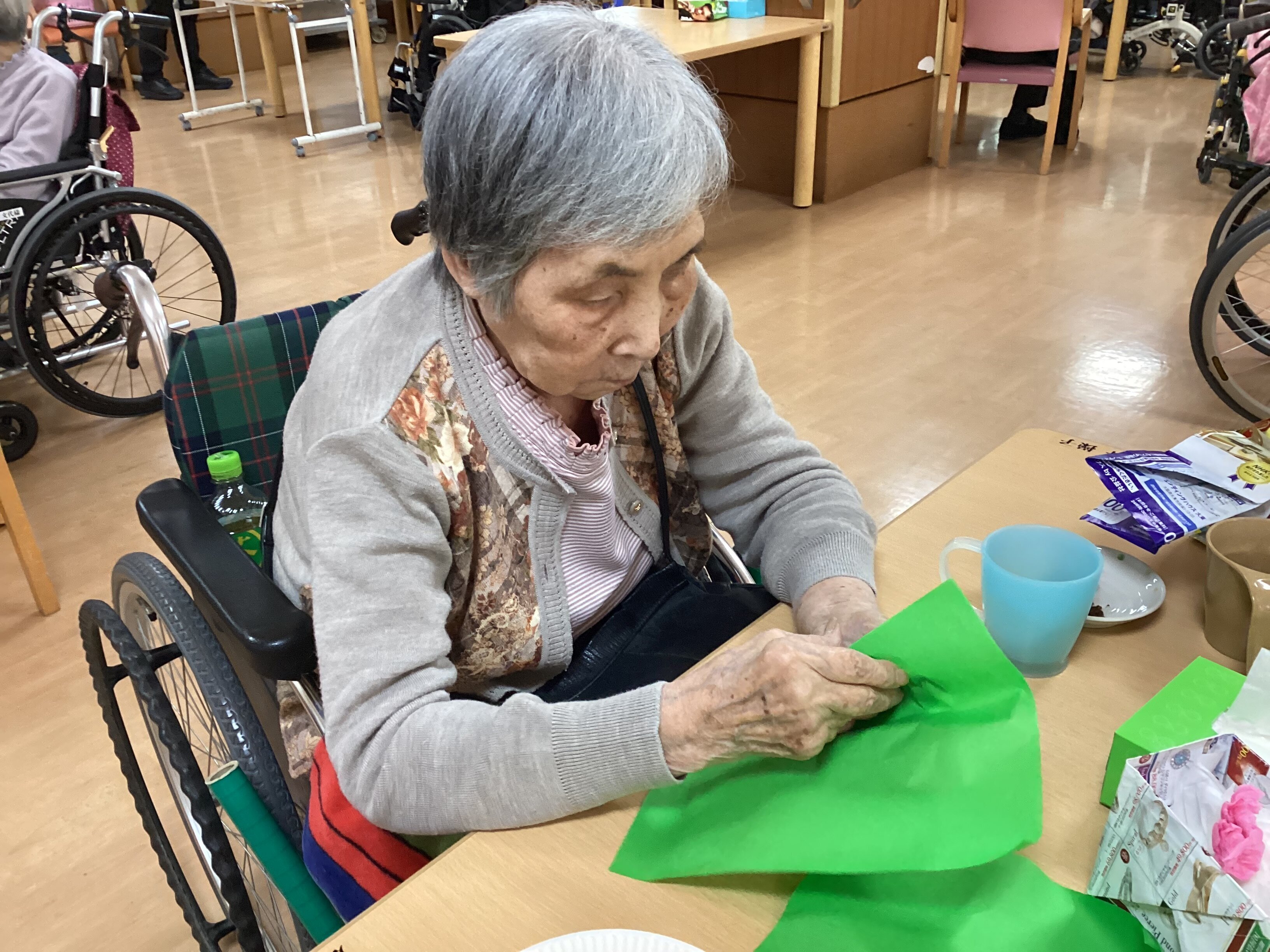 早速飾らせて頂くとご入居者様も気付いて見に来て下さいました(*^-^*)