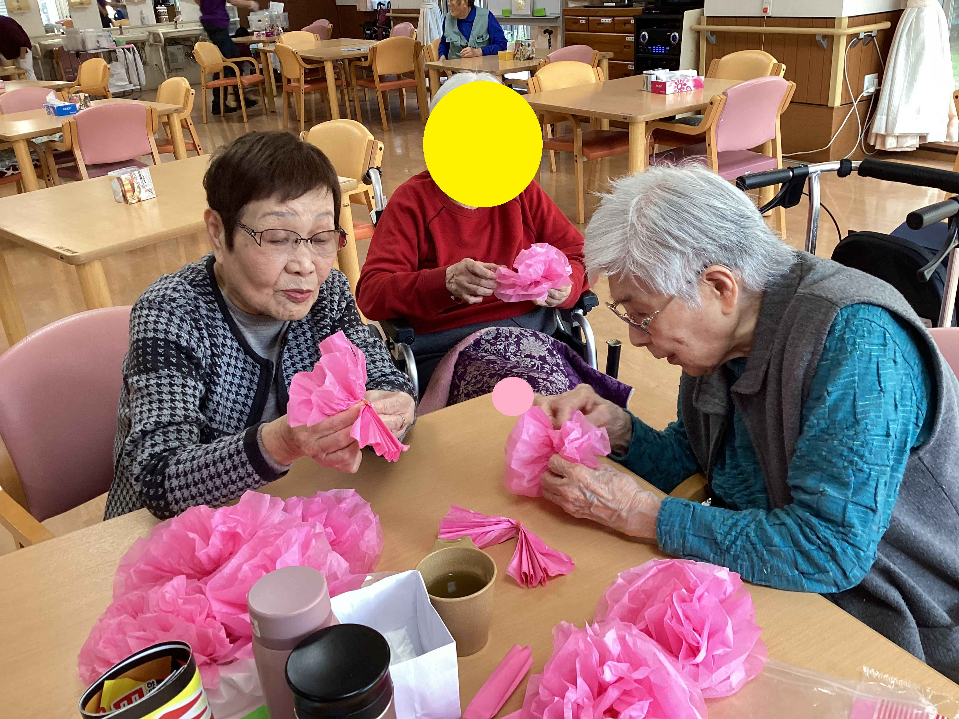 意見を下さったのでピンクのお花紙紙でお花を作って並べて貼って...