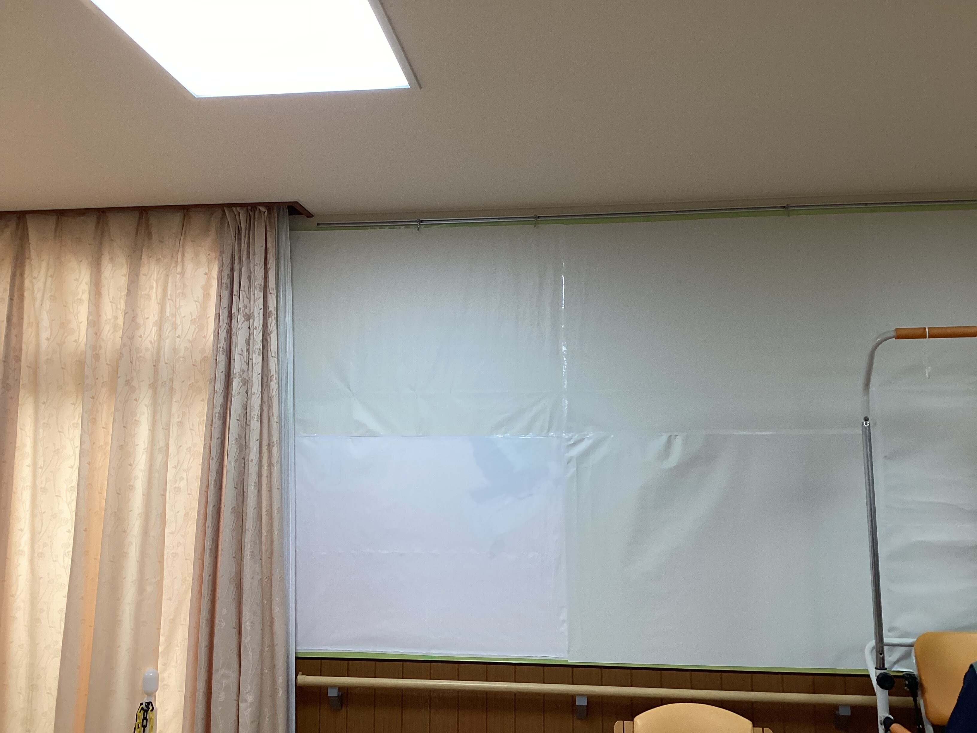 まずは壁一面に模造紙を貼ってキャンパスを作ります(*'▽')