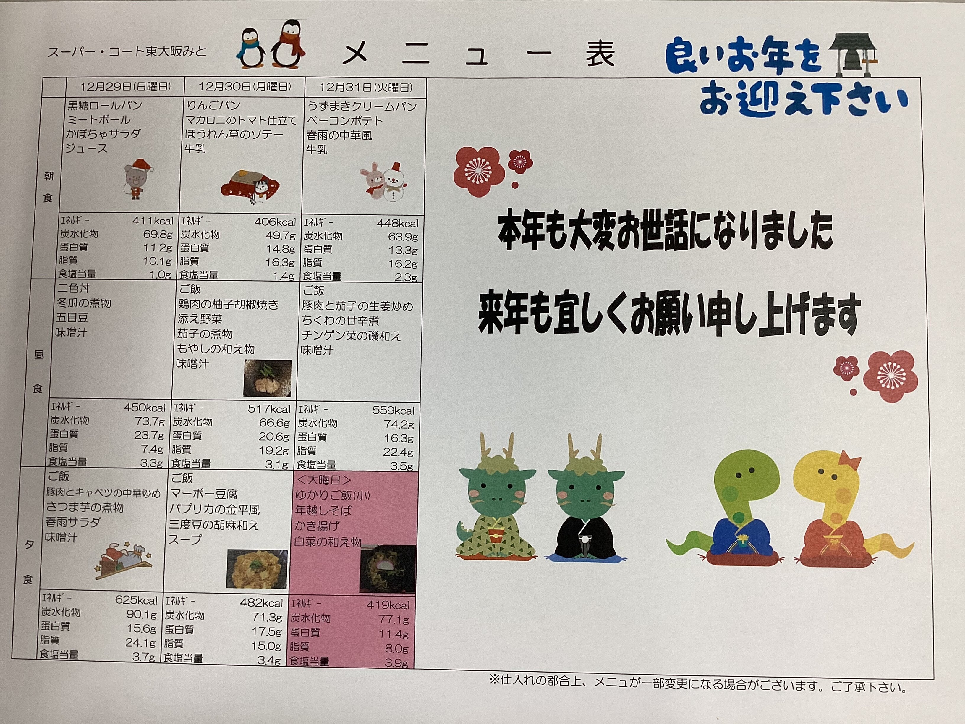 来年のメニュー表もお楽しみくださいね(*'▽')