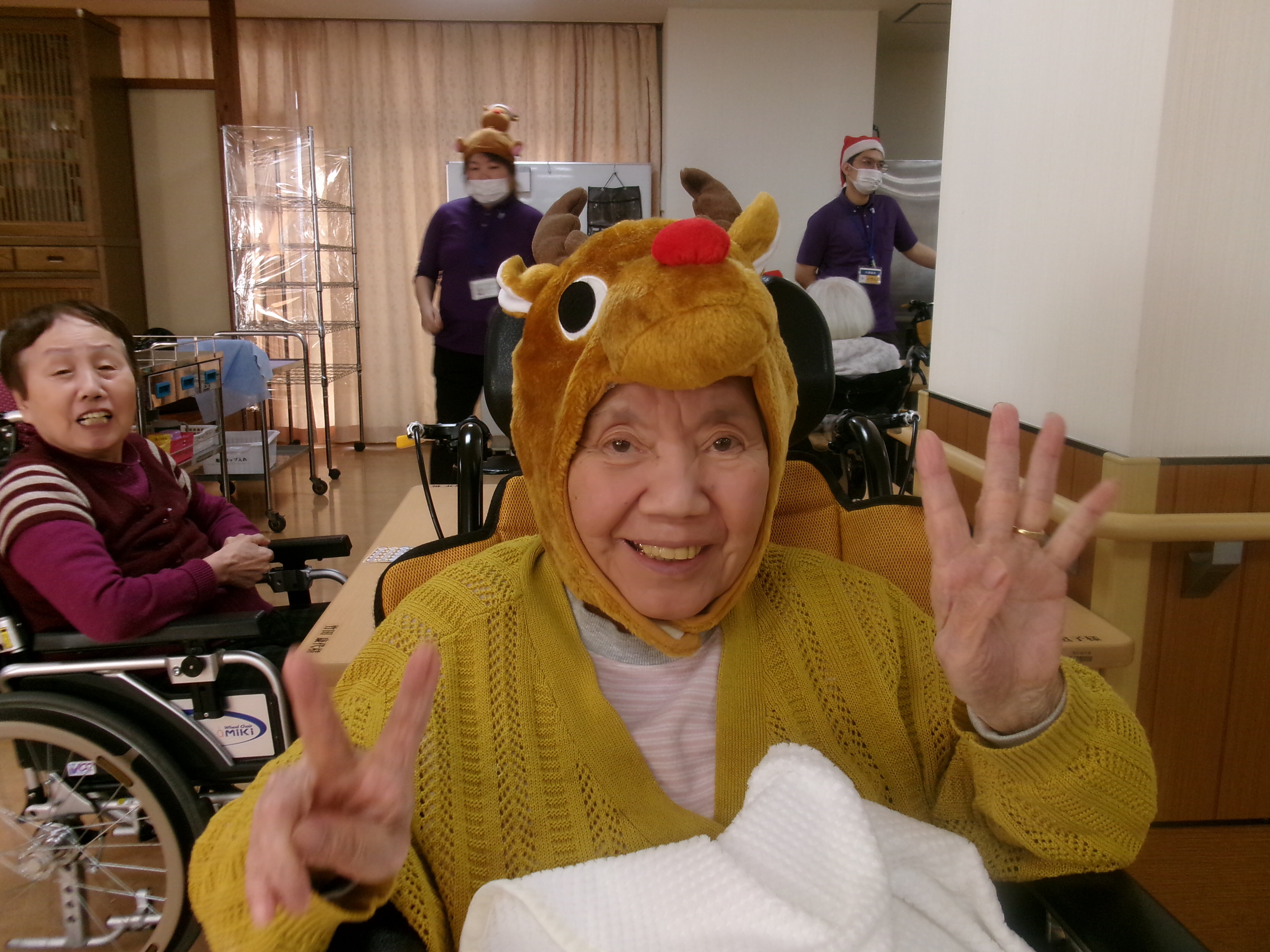 サンタの帽子とトナカイの頭をつけてパシャリと一枚!