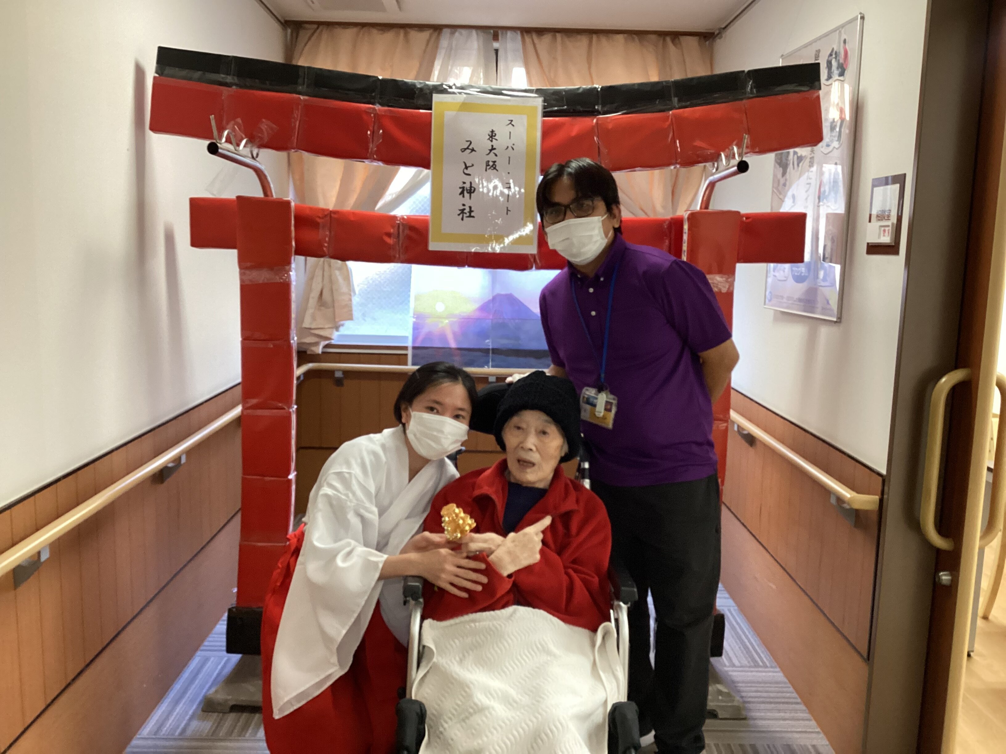 今年はご入居者様にくぐって頂ける様に作成致しました。