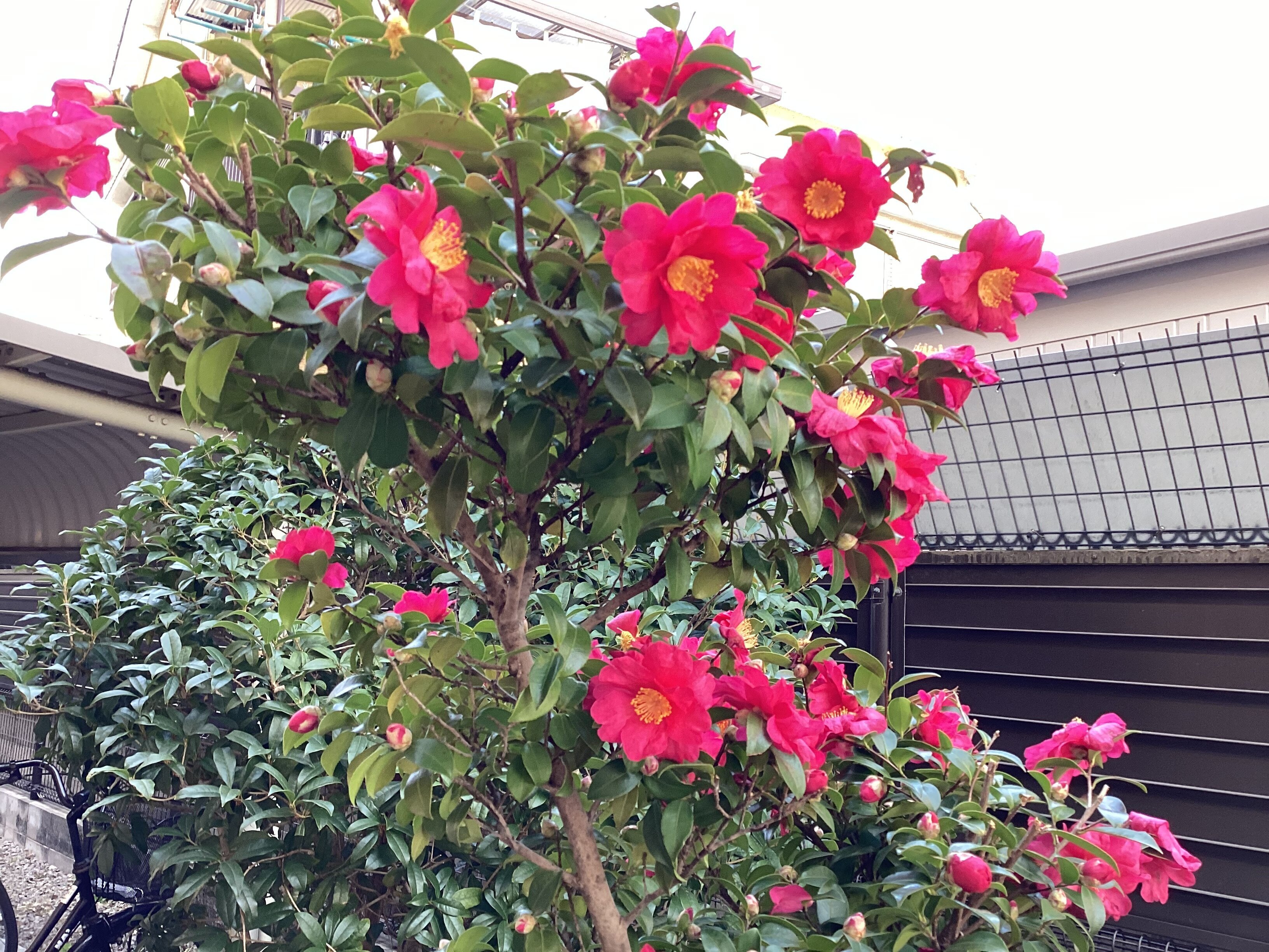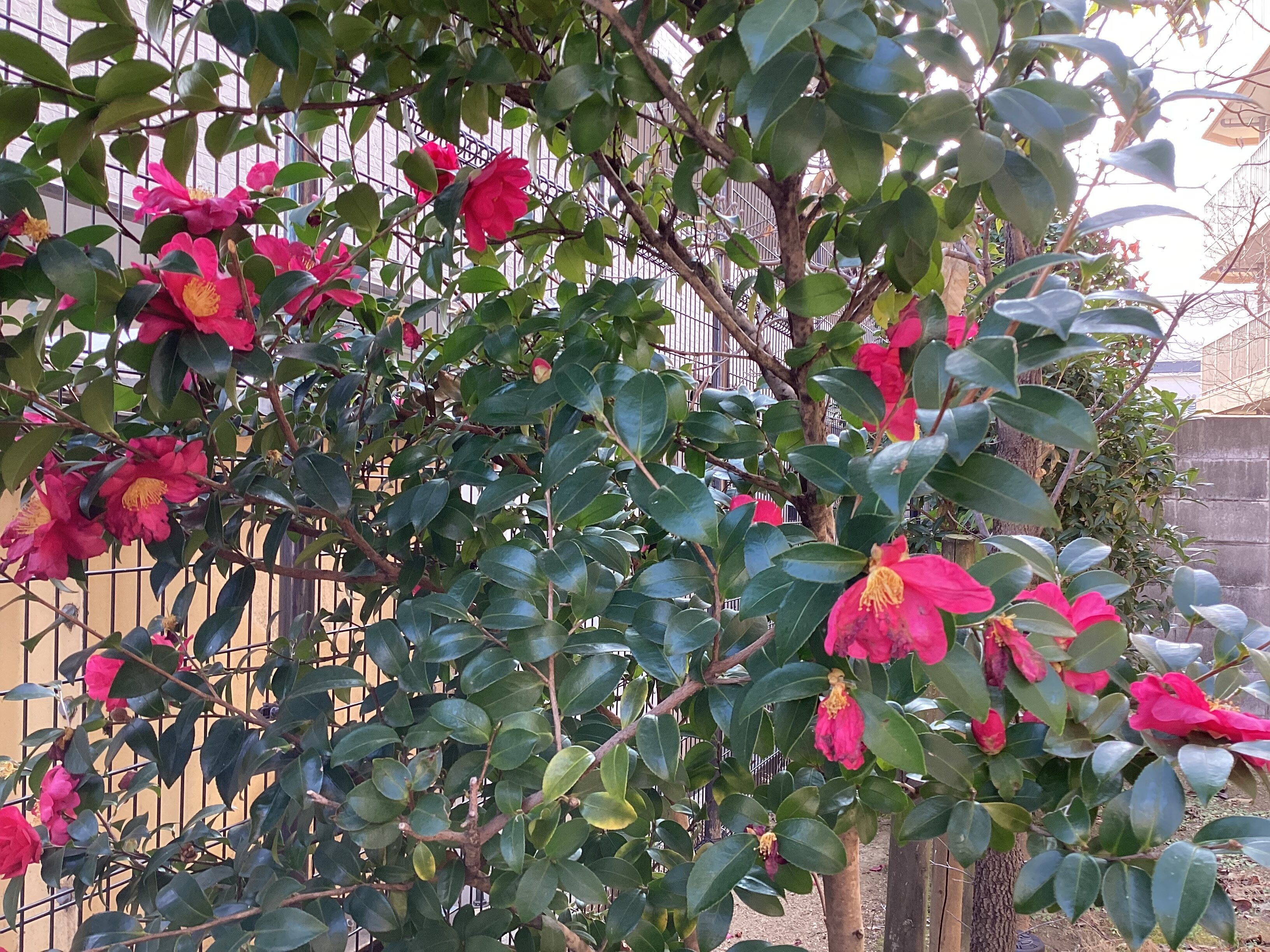 椿の木があり満開になっています❀