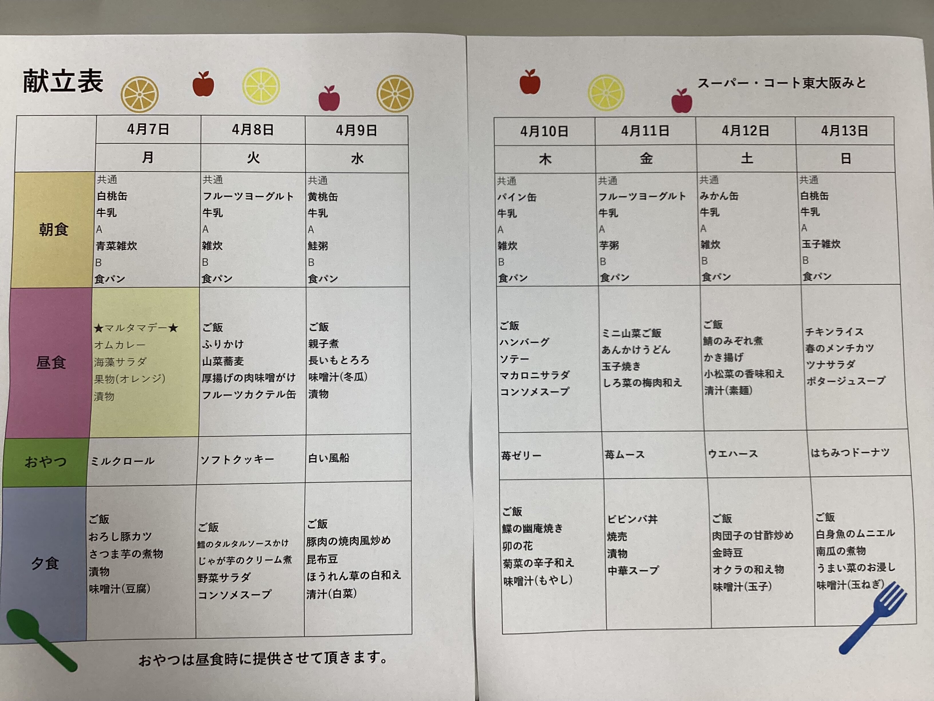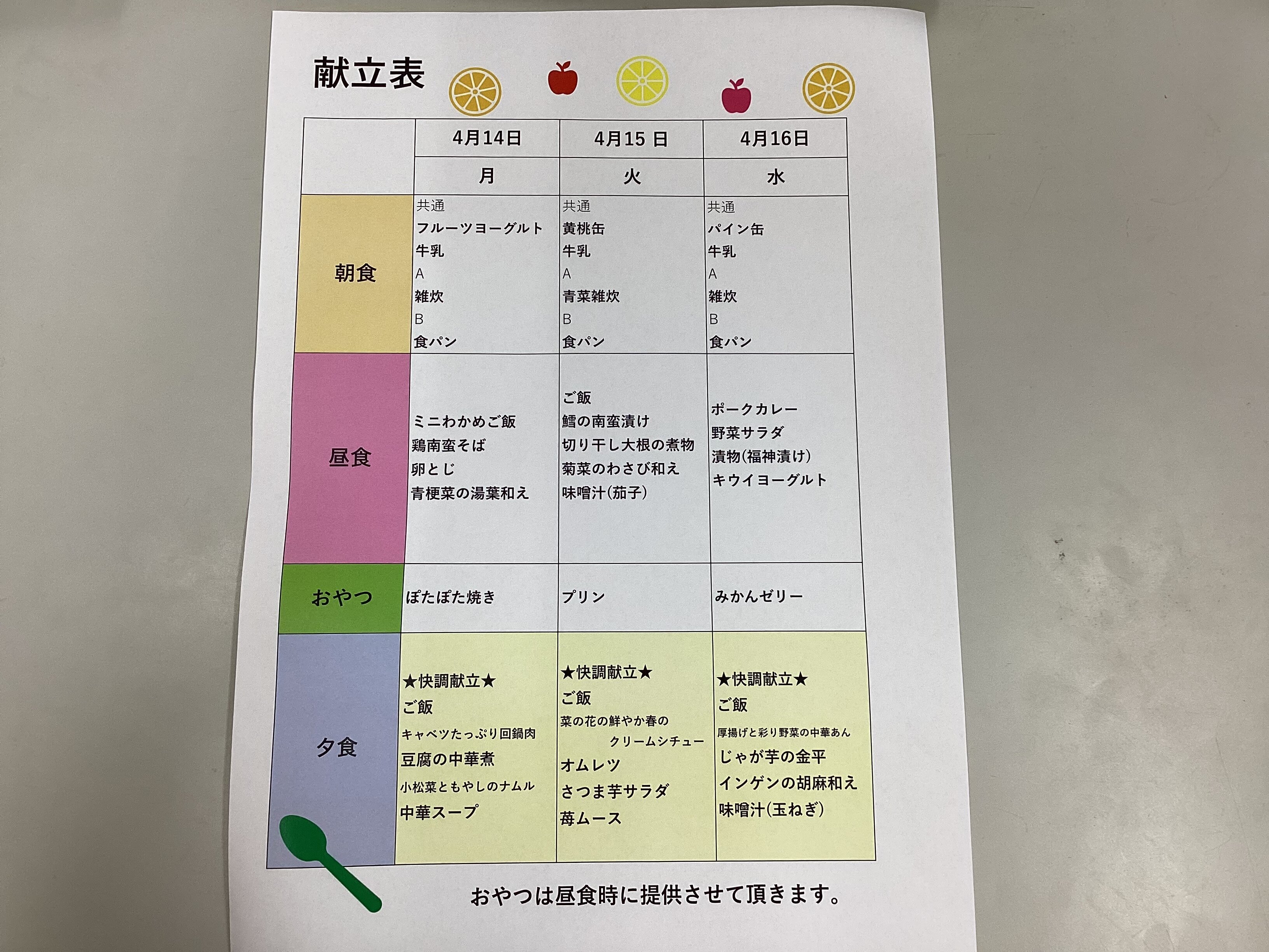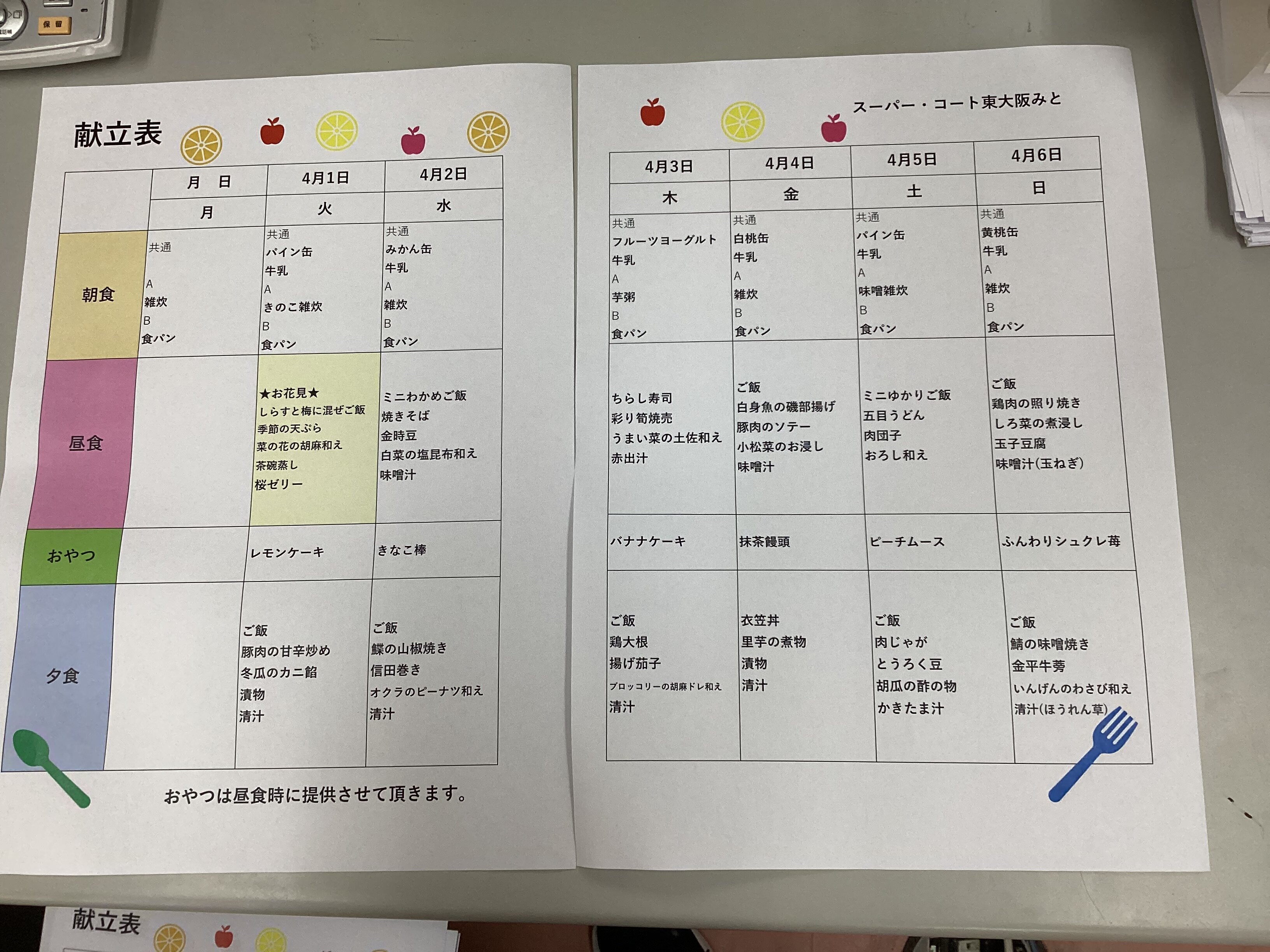 今回は4月前半のメニュー表のご案内です☆ミ