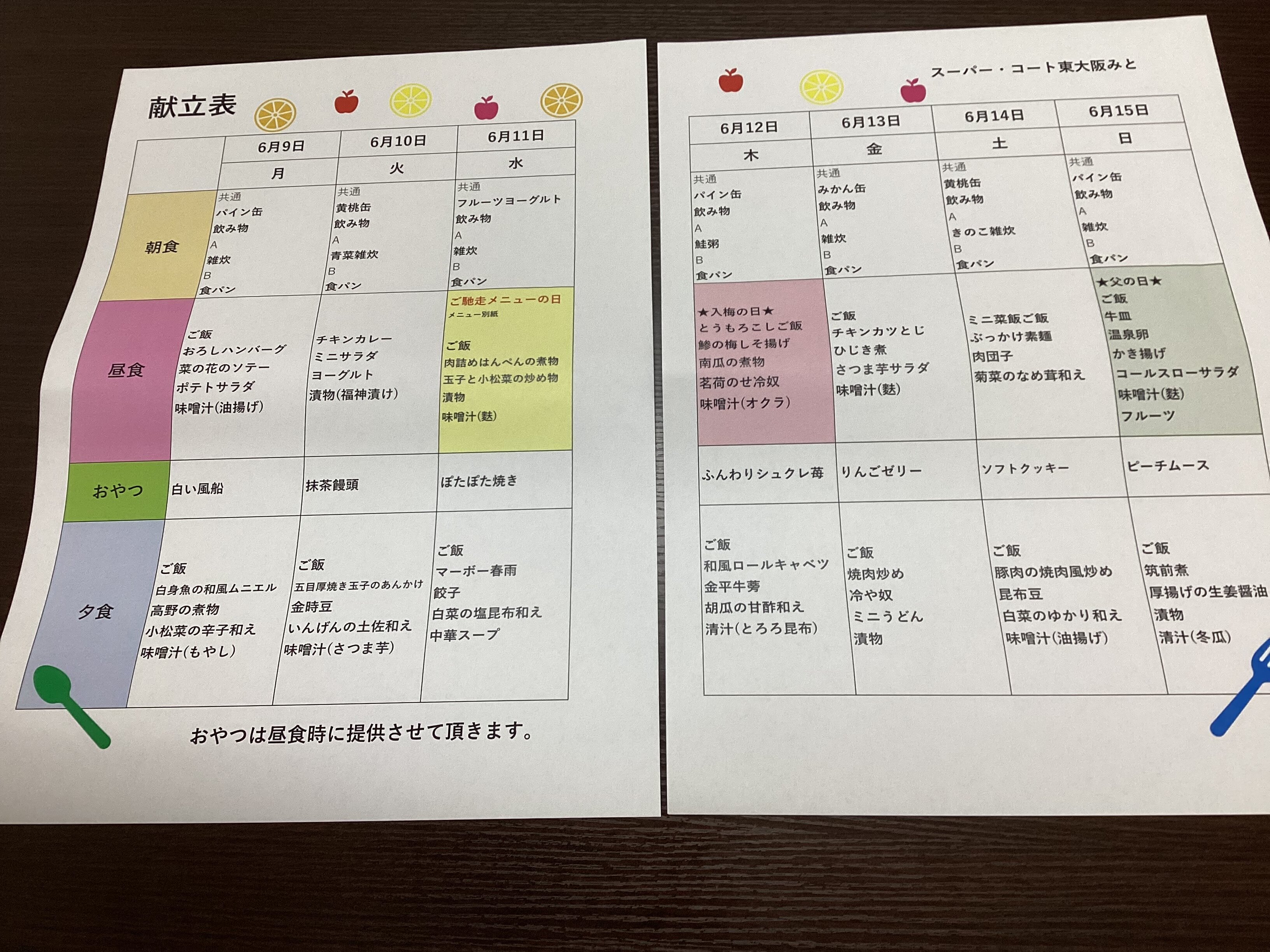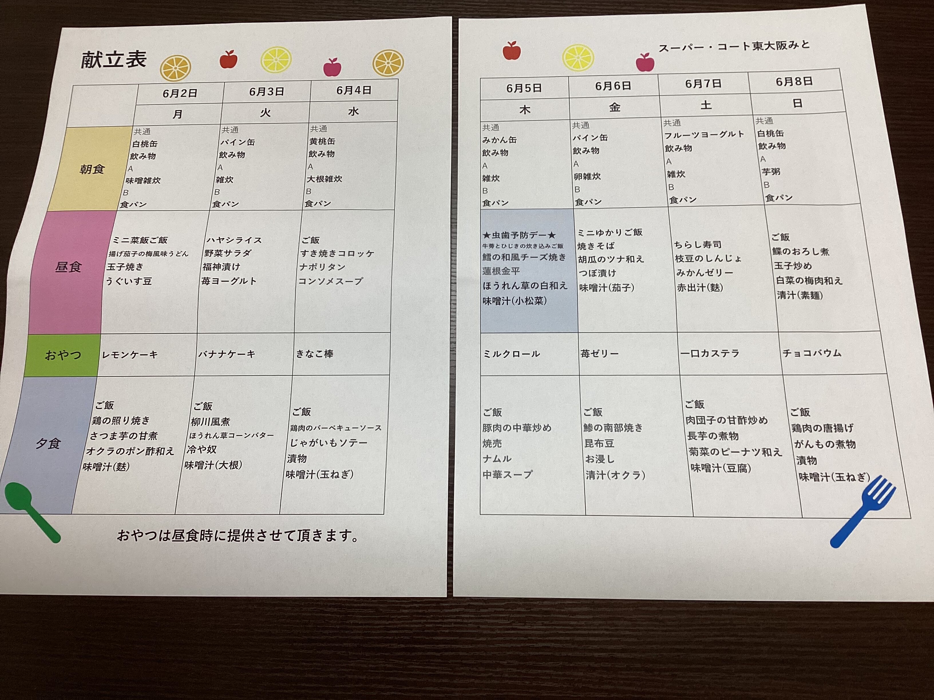 こんにちは\(^o^)/6月前半の献立表のご紹介です☆ミ6/5(木) ★虫歯予防デー★です6/11(水)★ご馳走メニューの日★です6/12(木) ☆入り梅の日☆メニューです6/15(日)★父の日メニュー★です6月後半の献立表もお楽しみにしてくださいね(*^^)v
