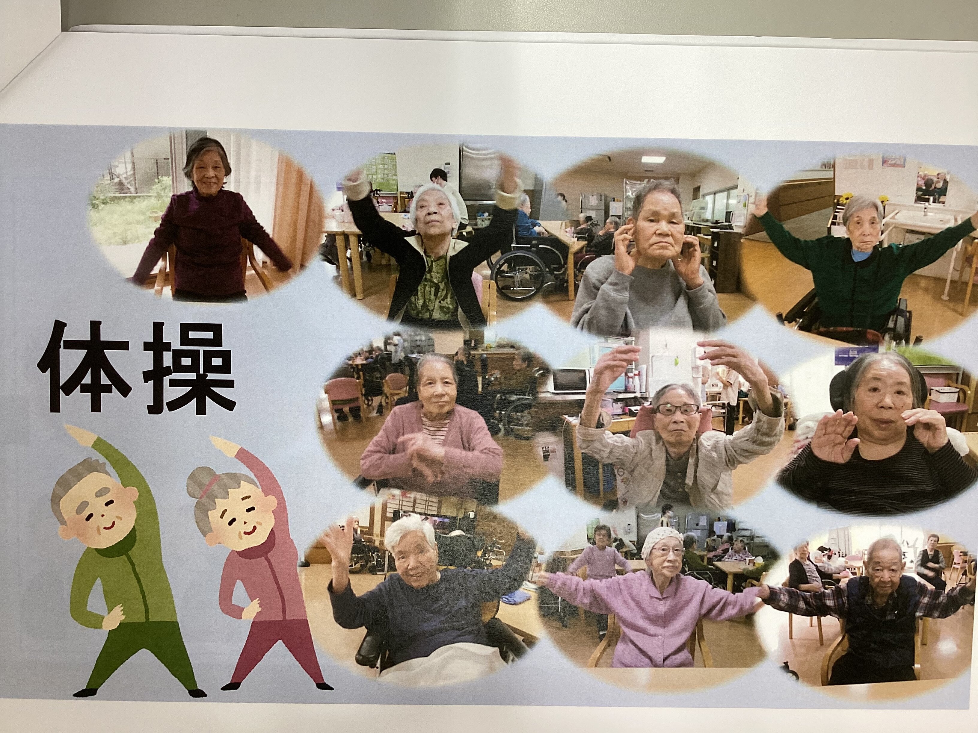 毎日昼食前に集団体操を行い、たくさんのいご入居者様に