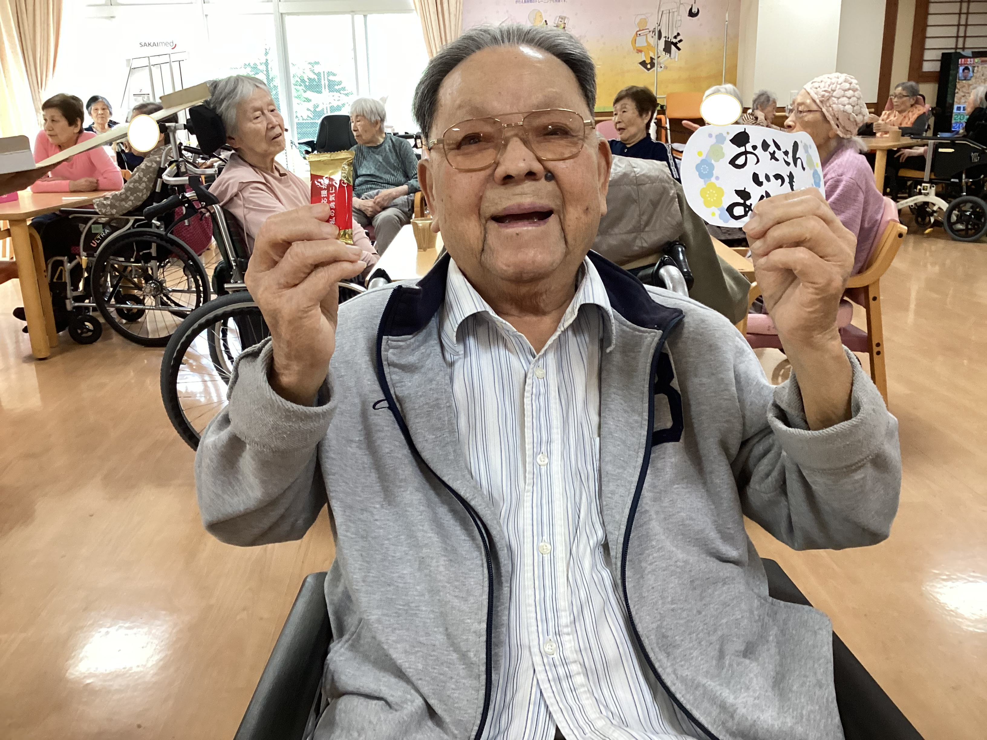 男性のご入居者の皆さまに日頃の感謝を込めてささやかながらお菓子のプレゼントをさせて頂きました\(^o^)/