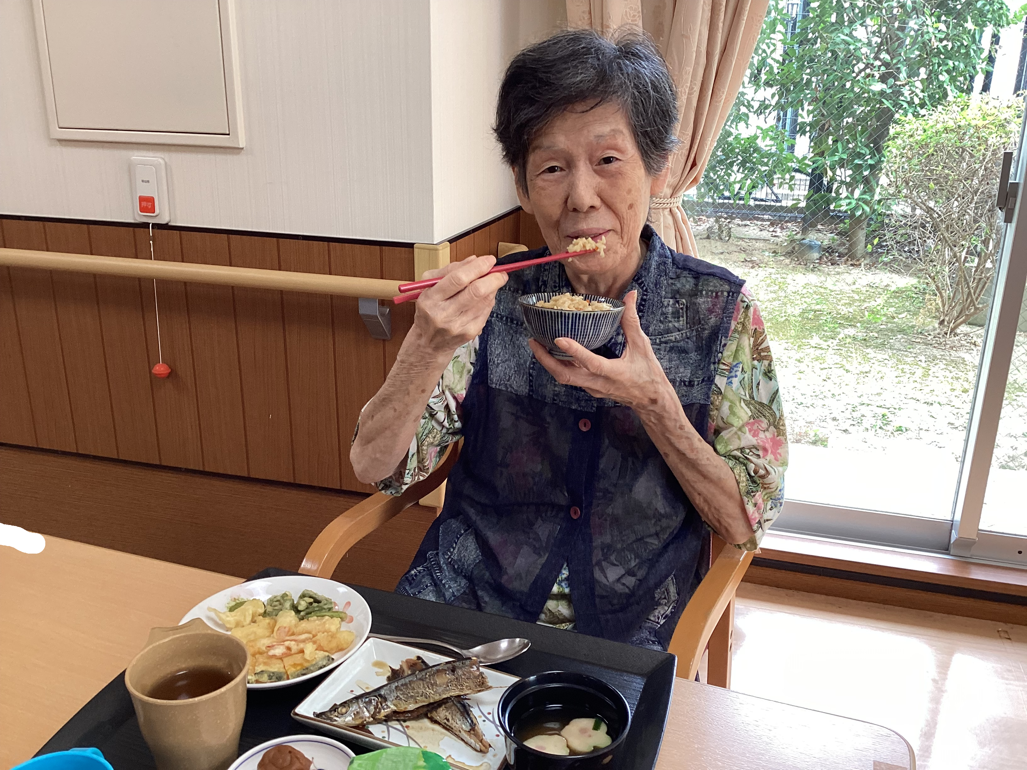 ご入居者の皆さまがお食事を食べられている様子です♪![]()