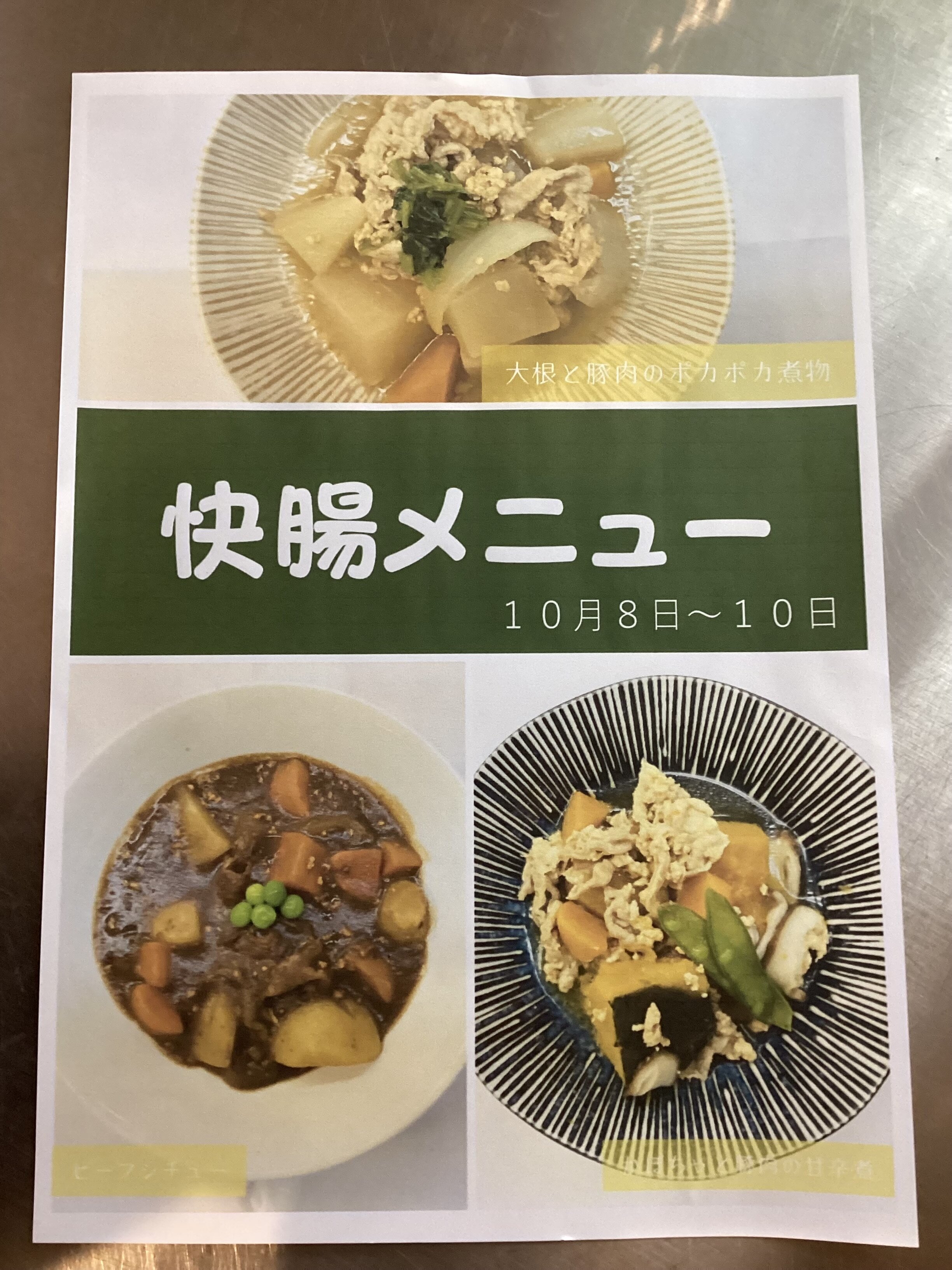 10/8~10の3日間、夕食に快腸メニューが提供されました!