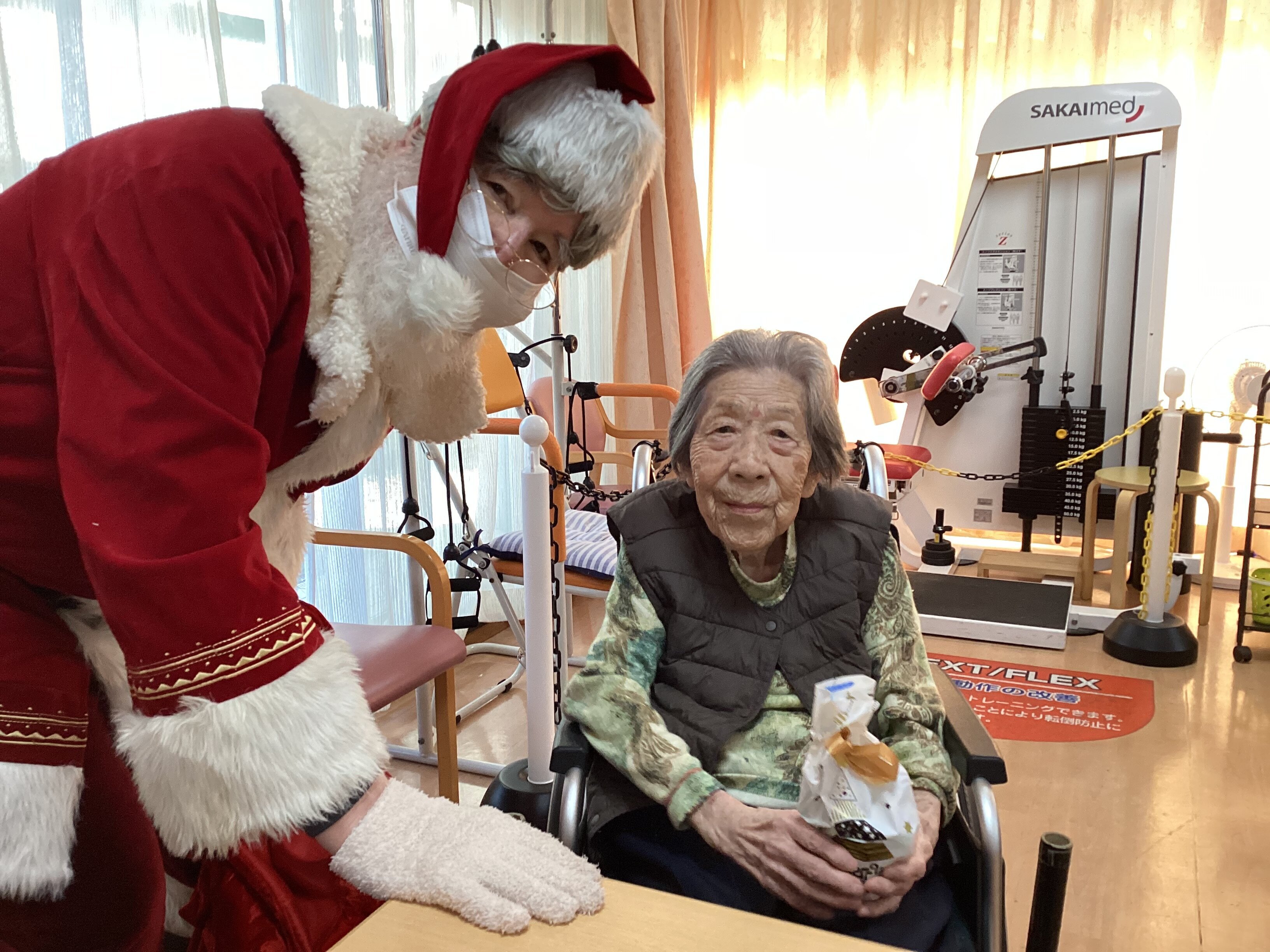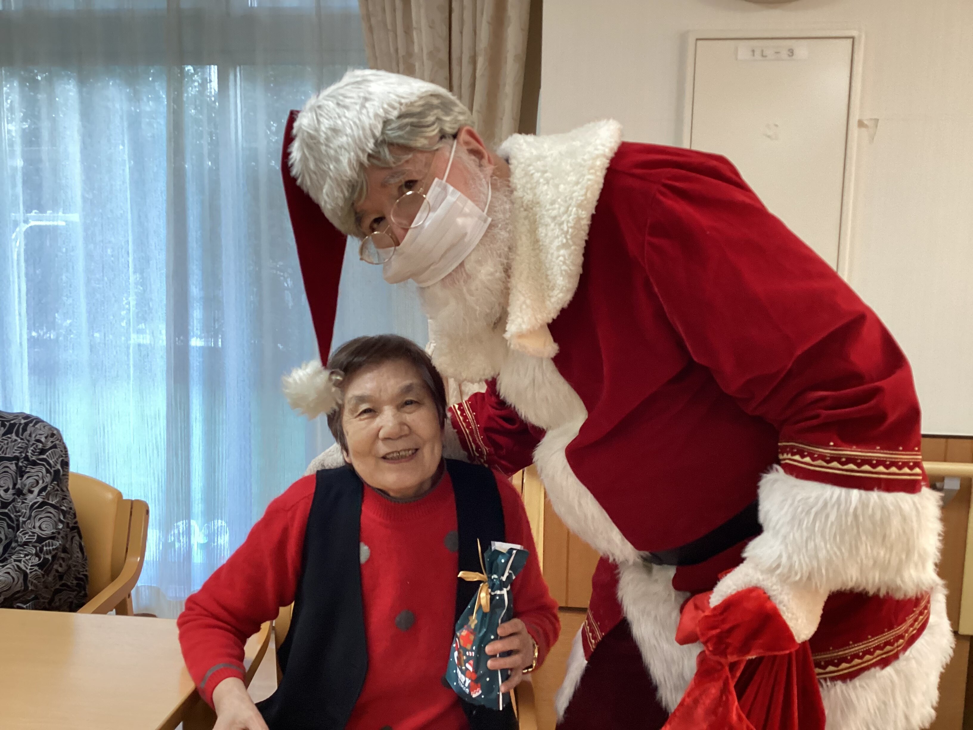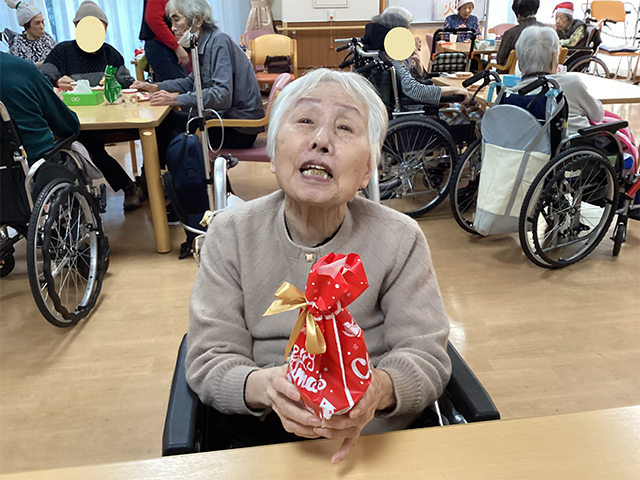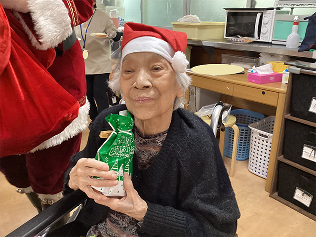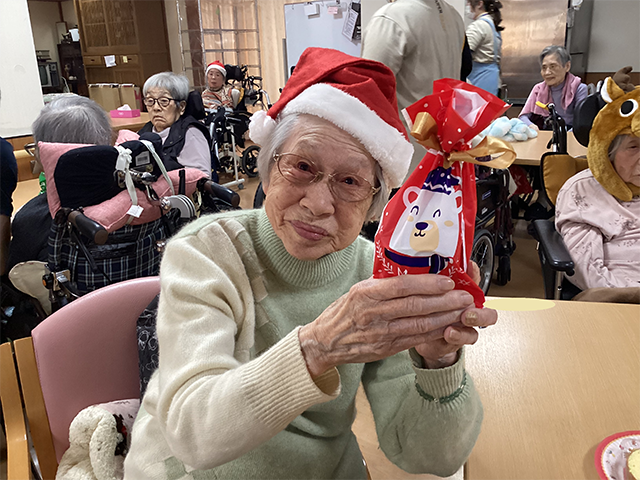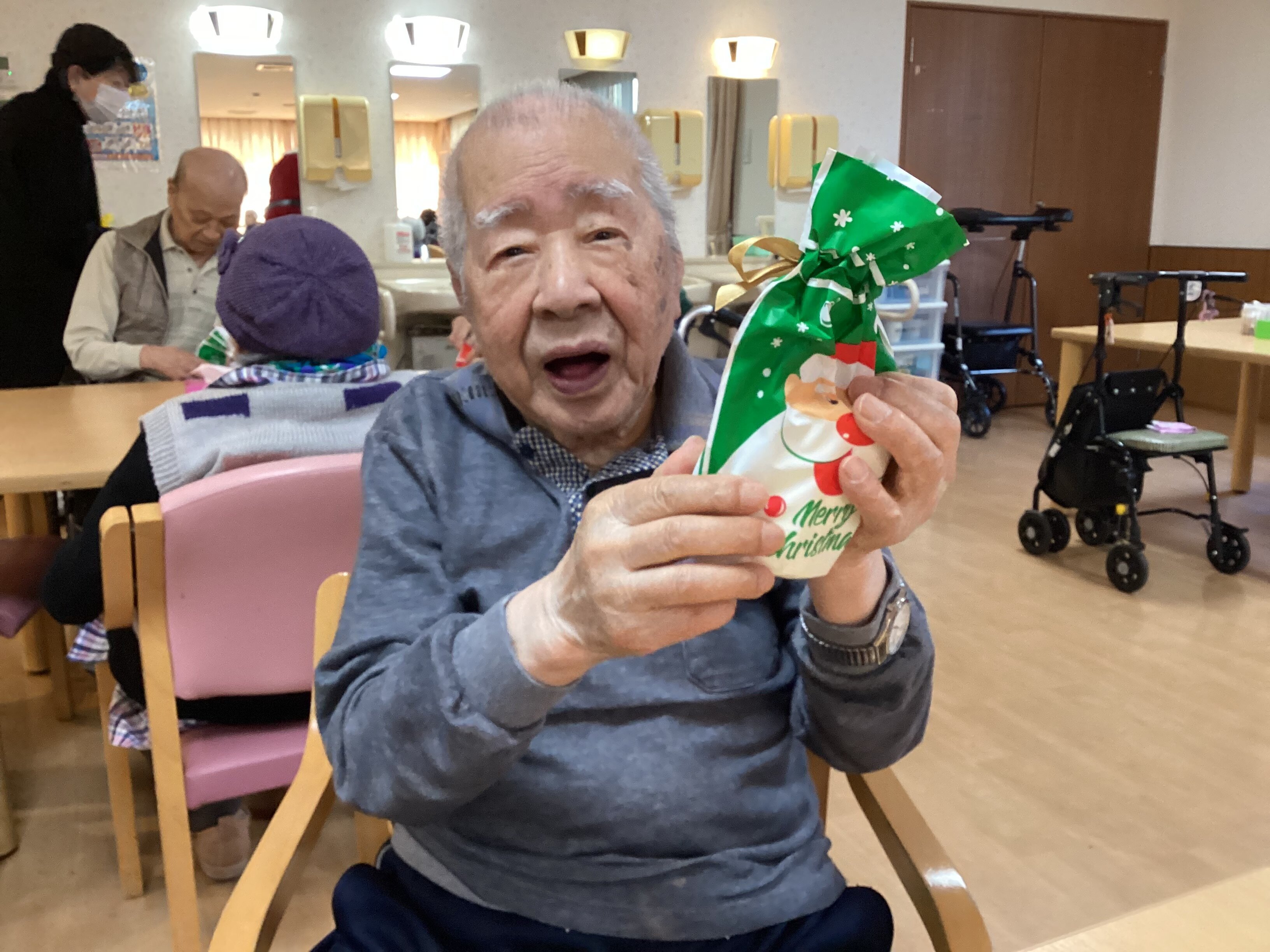 ジングルベルのBGMの中、サンタさんから一人一人にクリスマスプレゼントを頂きました。皆様とても良い表情をされています。華やぐ気持ちは大人も子供も同じですね。