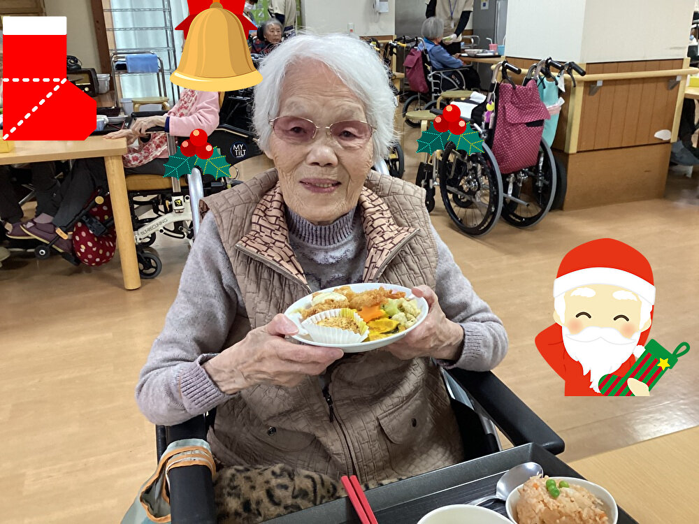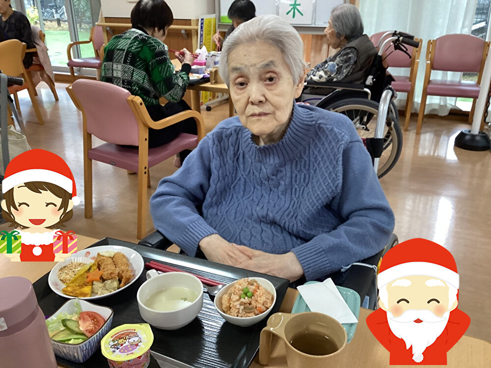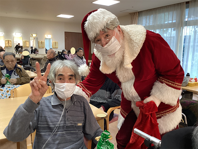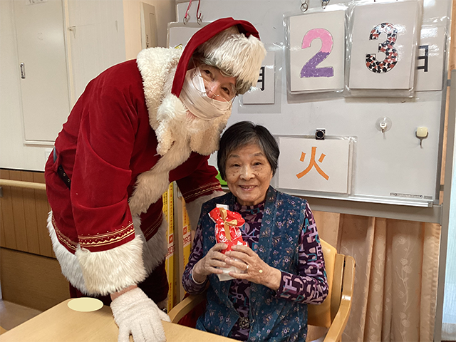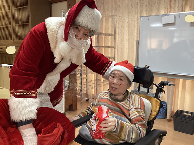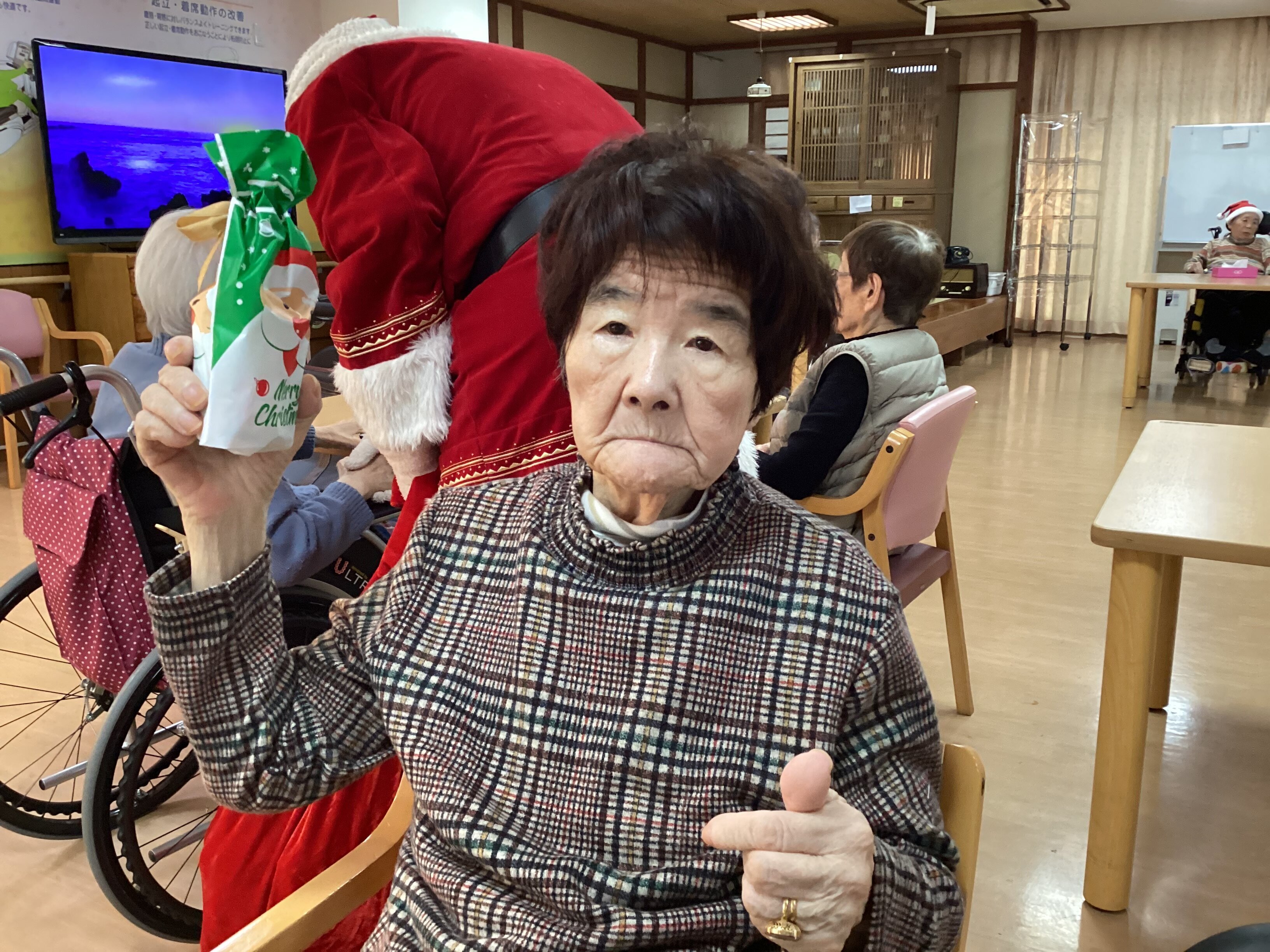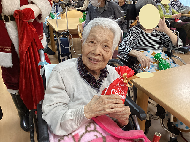 ジングルベルのBGMの中、サンタさんから一人一人にクリスマスプレゼントを頂きました。皆様とても良い表情をされています。華やぐ気持ちは大人も子供も同じですね。